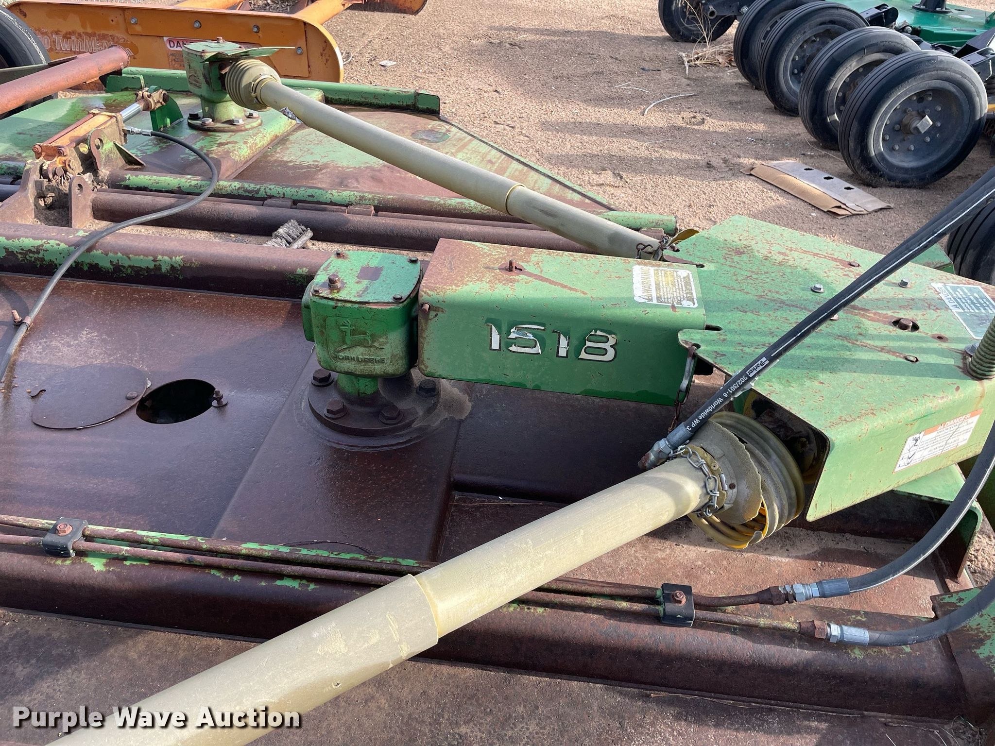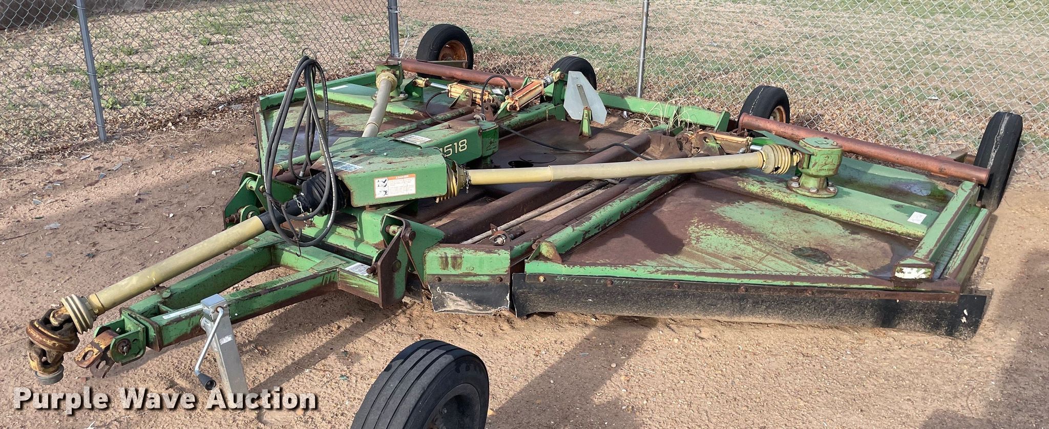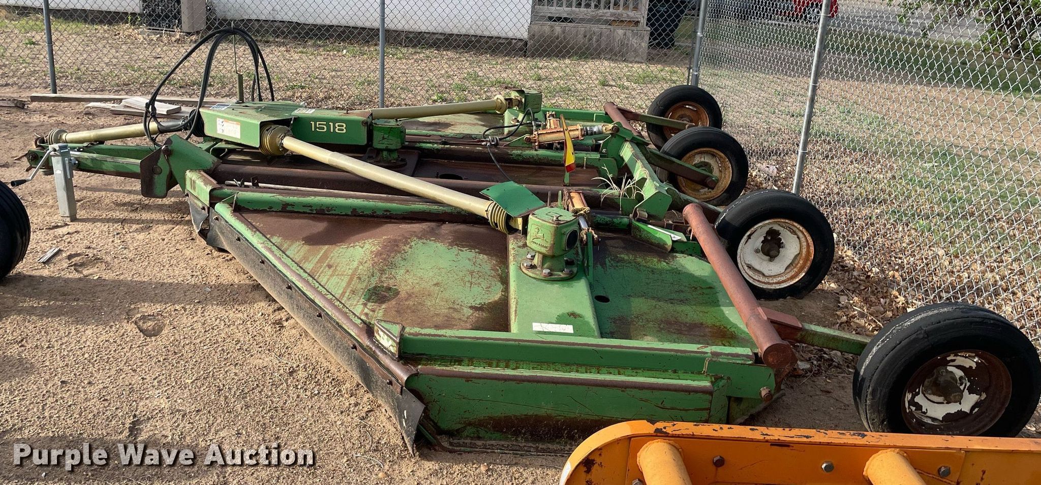 Purple Wave is selling a used Mower, Cutter, Shredder in Kansas. This item is a John Deere 1518 batwing rotary mower with the following: Width: 15', Hydraulic lift, Hydraulic fold, PTO: 1000