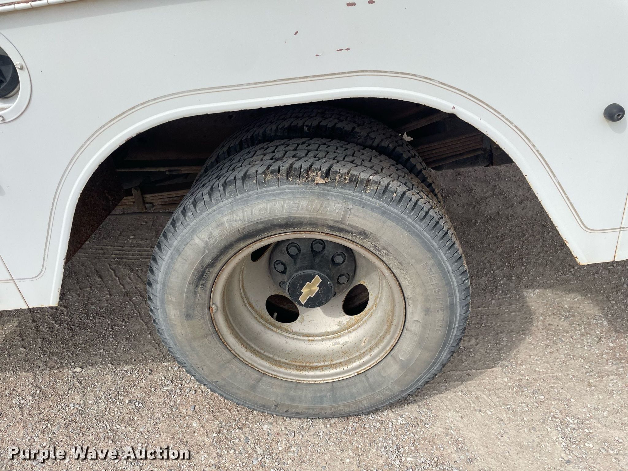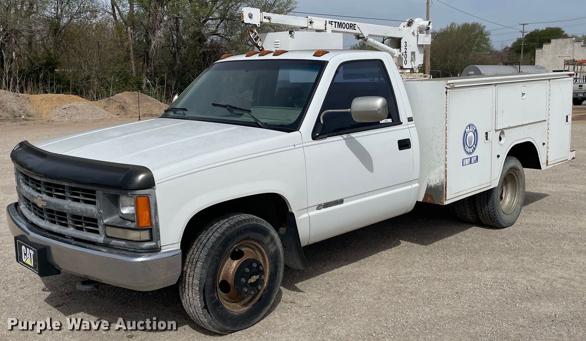 This 1994 Chevrolet C3500 utility bed pickup truck will sell to the highest bidder regardless of price.