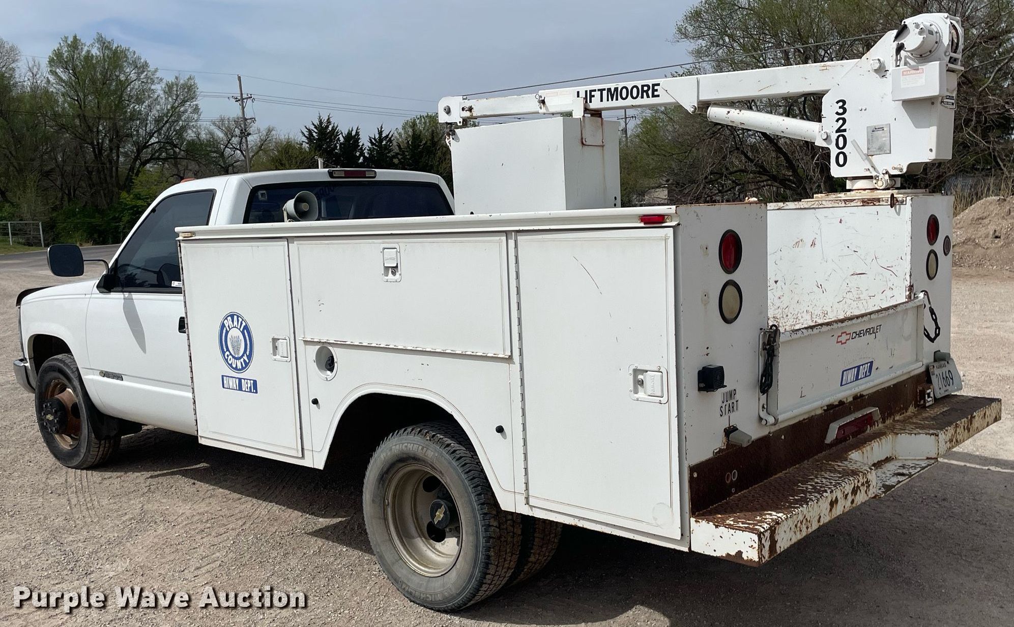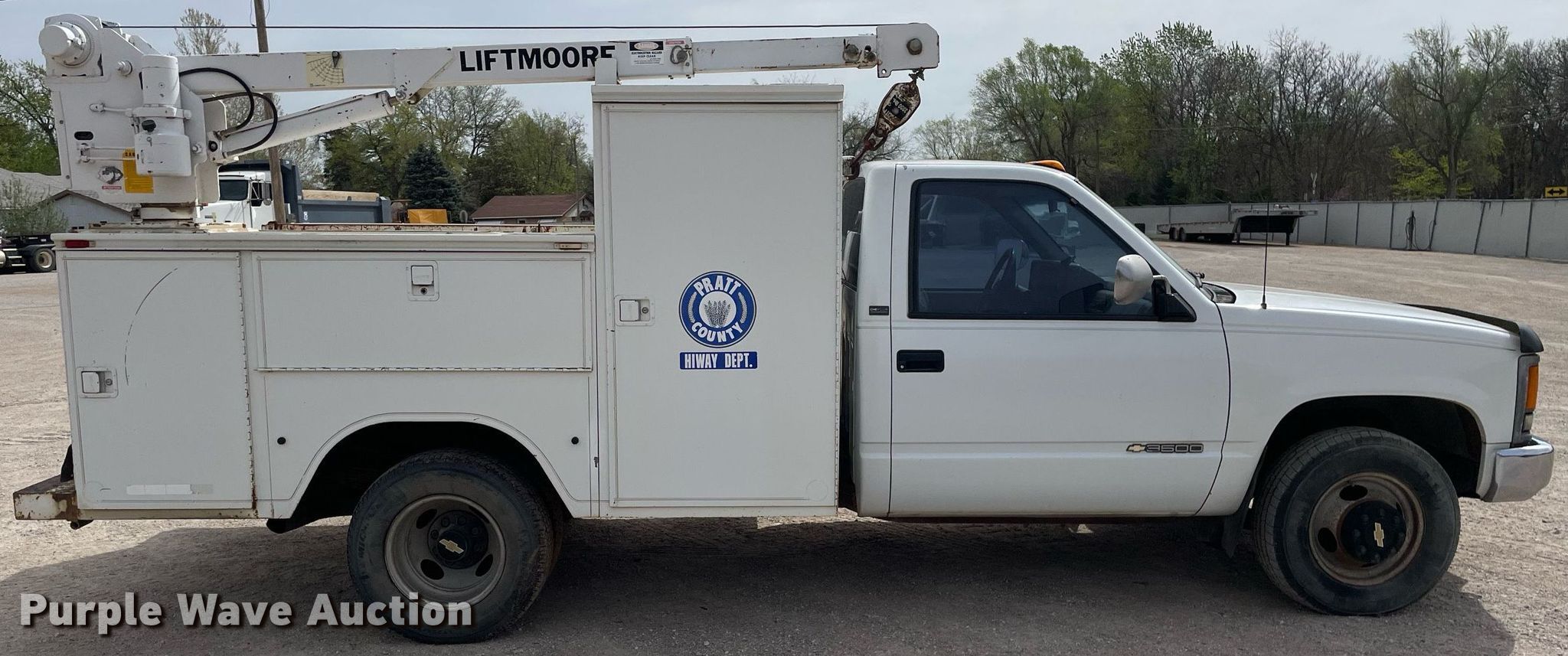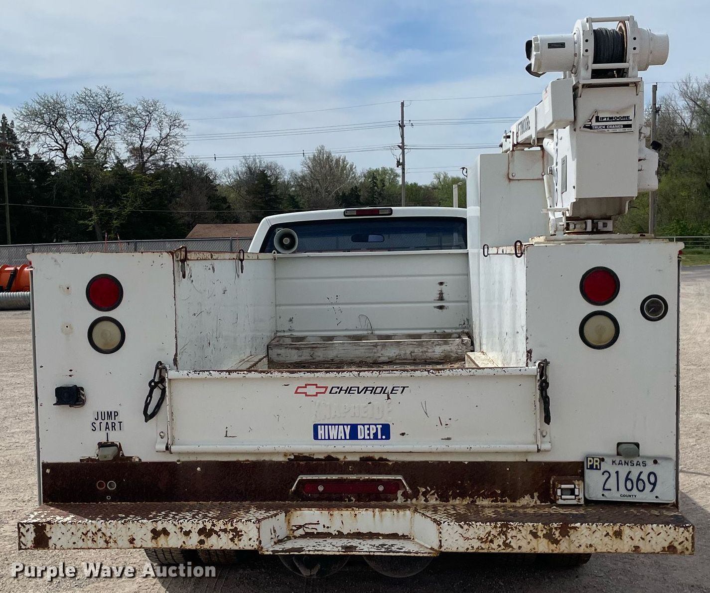 1994 Chevrolet C3500 utility bed pickup truck. Miles: 230,686 on odometer, VIN: 1GBJC34NXRE125045. Engine Displacement: 7.4L V8 OHV, Cylinders: 8, Fuel type: Gas. Transmission Manual, Speed: 5. Interior AC, Heat. Features Utility bed Knapheide, 9' 8" L x 89" W, Crane Liftmore 3200, Air compressor Iowa Mold Tooling HD300. Tires Size: 225/75R16. Notes Dead battery, Clutch issues. Kansas title. Title distribution may be delayed up to 14 days from verification of funds. Pratt County Road Department. Pratt, KS 67124
