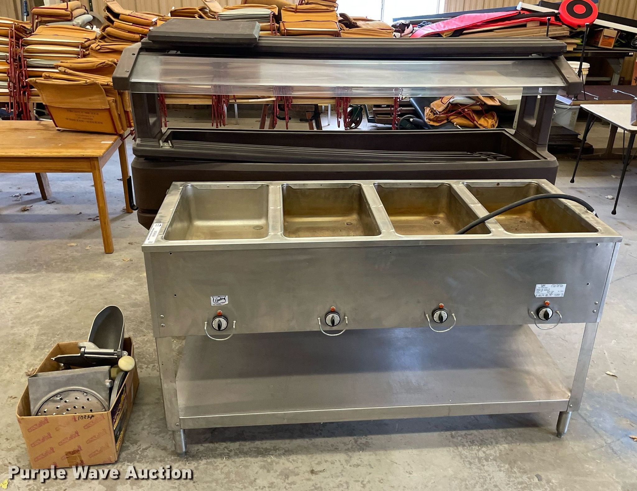 Purple Wave is selling a used Restaurant Equip. in Kansas. This item is a Restaurant equipment with the following: Steam table, Model: EP304M, Serial: 05020643, Phase: Single, Volts: 120, Watts: 3000, Unknown operating condition, Hobart grinder parts, Salad bar