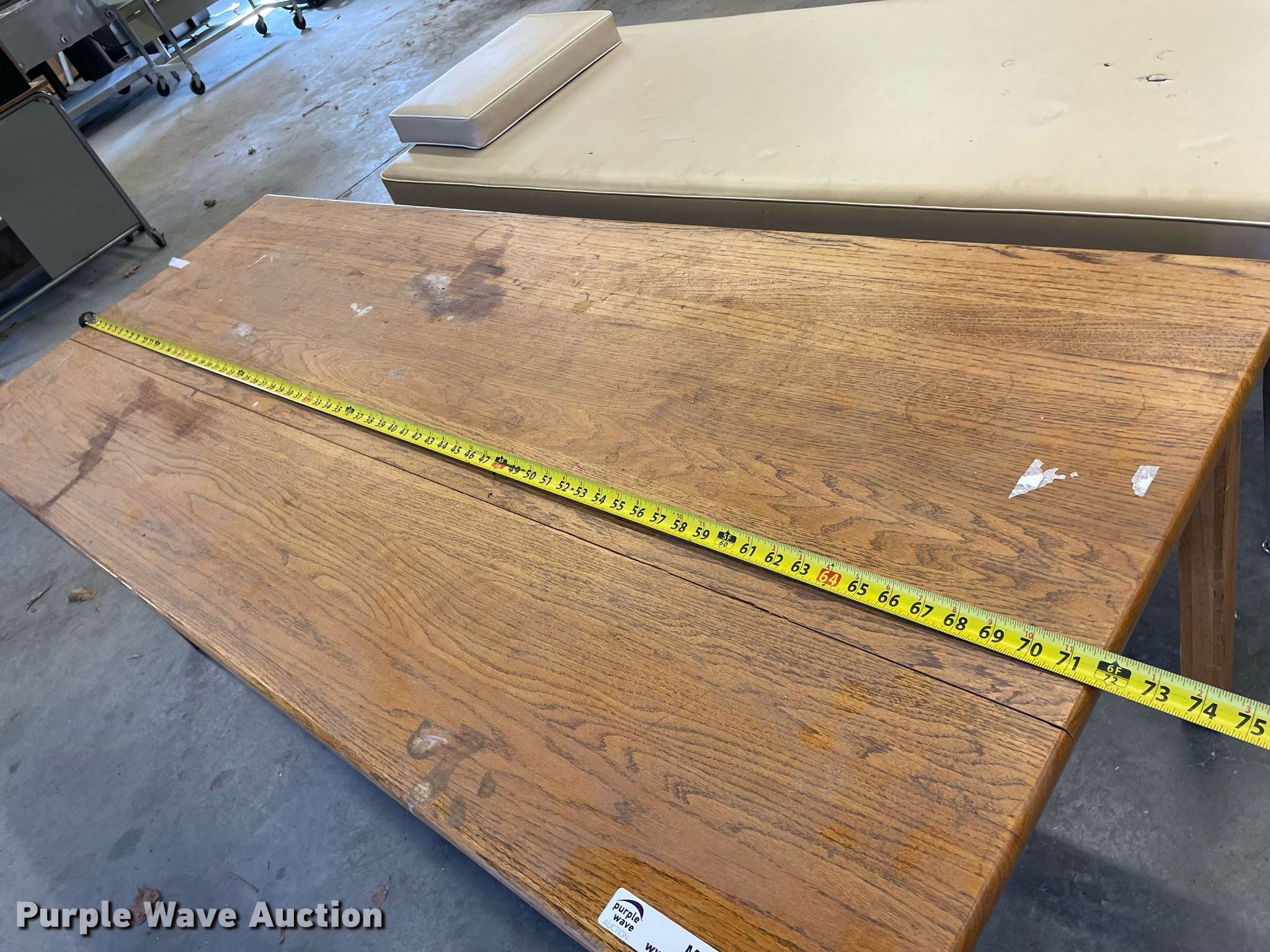 Purple Wave is selling a used Furniture in Kansas. This item is a Furniture with the following: Examination table, 72" L x 30" W x 25" H, Table, 71" L x 26" W x 23" H