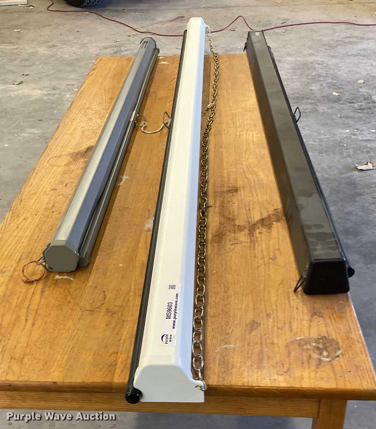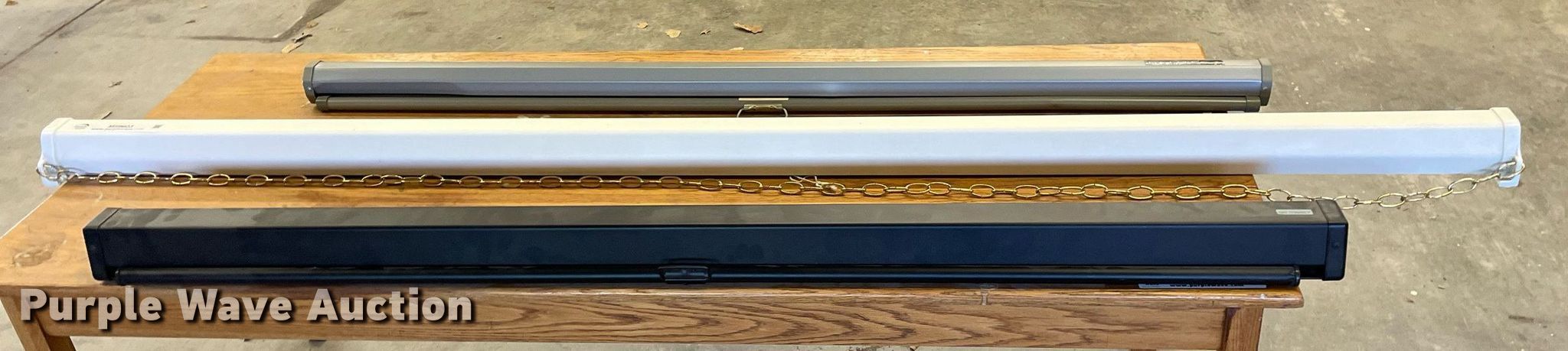 Purple Wave is selling a used Office Supplies and Equip. in Kansas. This item is a (3) projector screens with the following: (3) projector screens. USD 398 Peabody Schools. Peabody, KS 66866