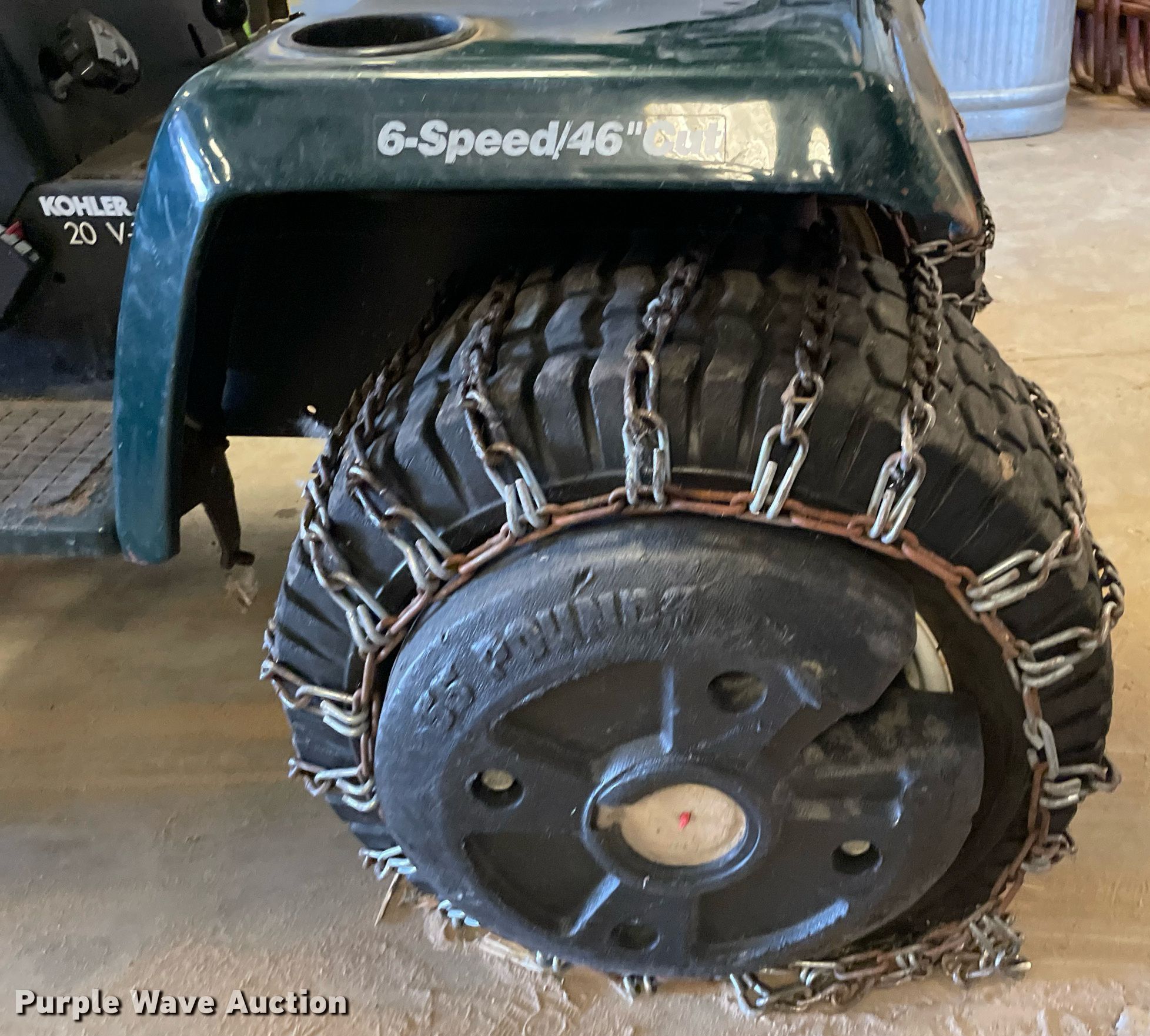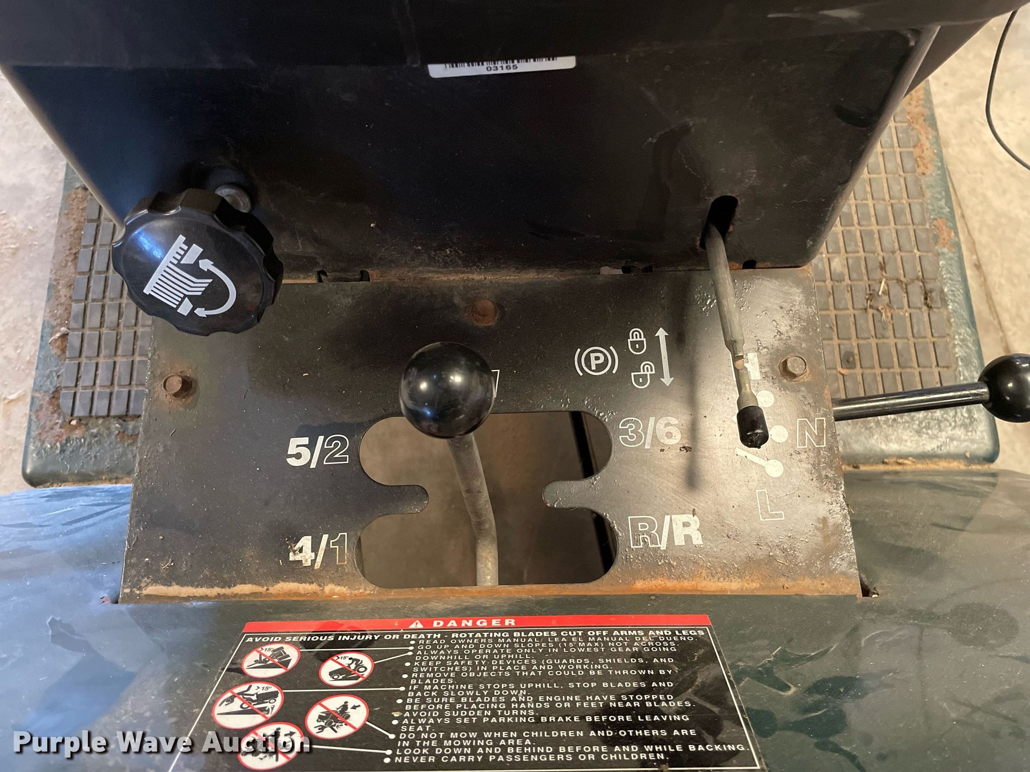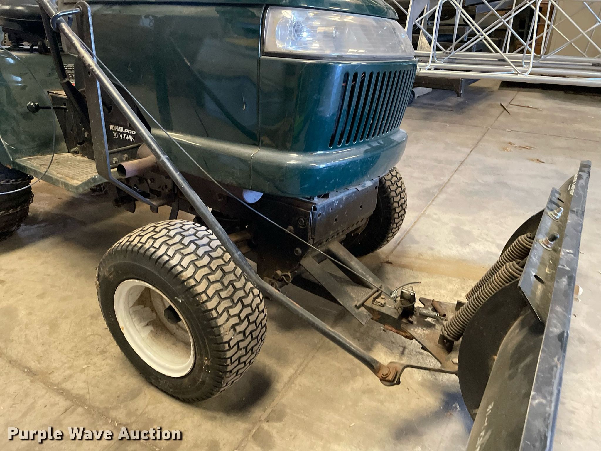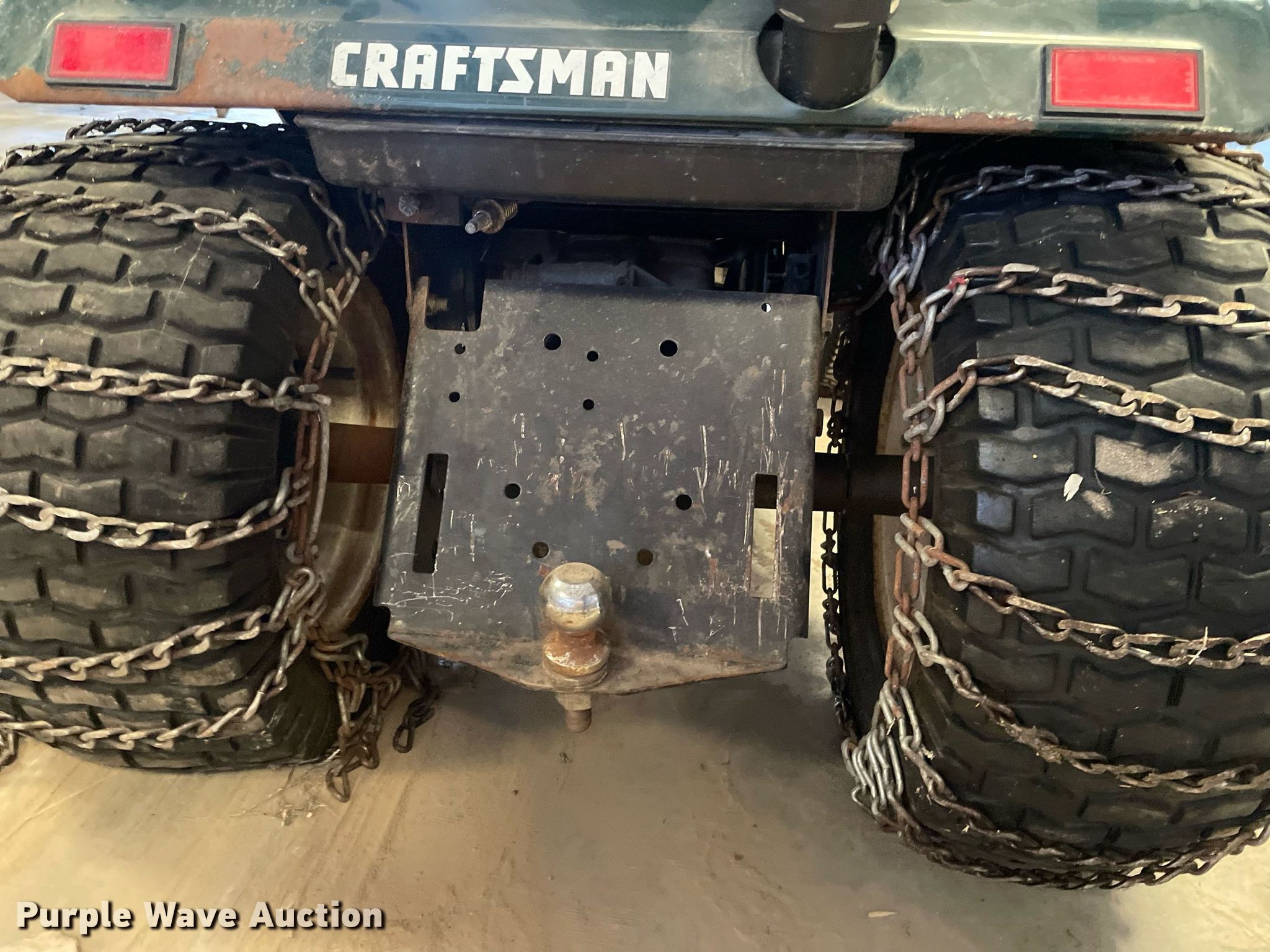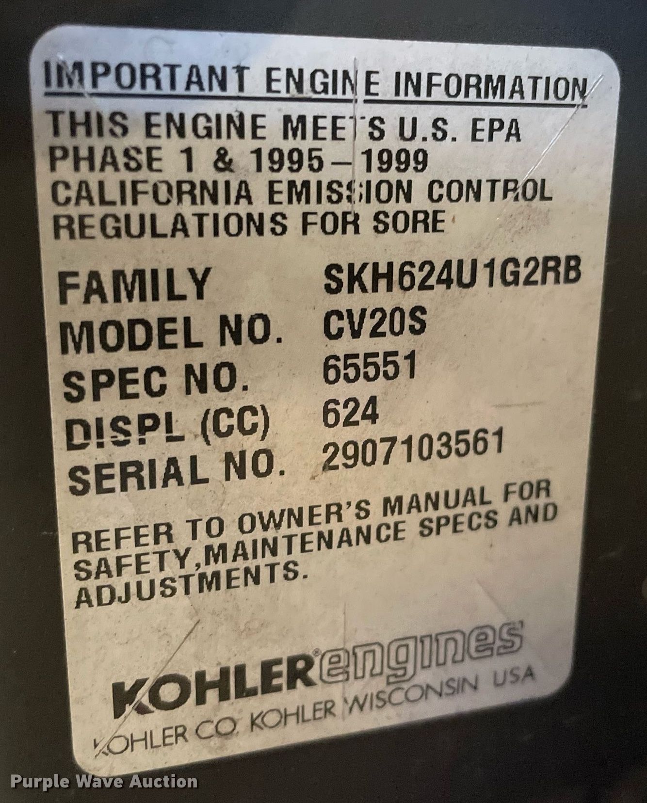 Craftsman 917273013 lawn mower. Serial: 070699A001779. Engine Kohler, Cylinders: 2, Fuel type: Gas, HP: 20. Transmission Manual, 6F - 2R. Features 48" W Craftsman snow plow. Tires Front: 16x8.50-8, Wheel weights. Notes Flat tire, Unknown operating condition. Salina, KS 67401