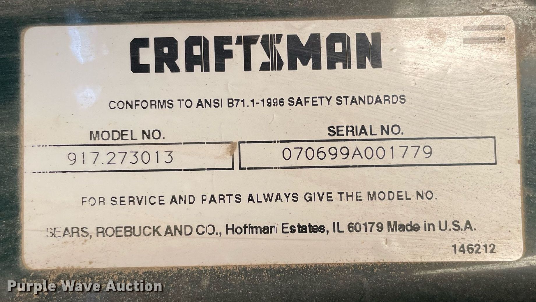 Purple Wave is selling a used Lawn and Garden in Kansas. This item is a Craftsman 917273013 lawn mower with the following: Serial: 070699A001779