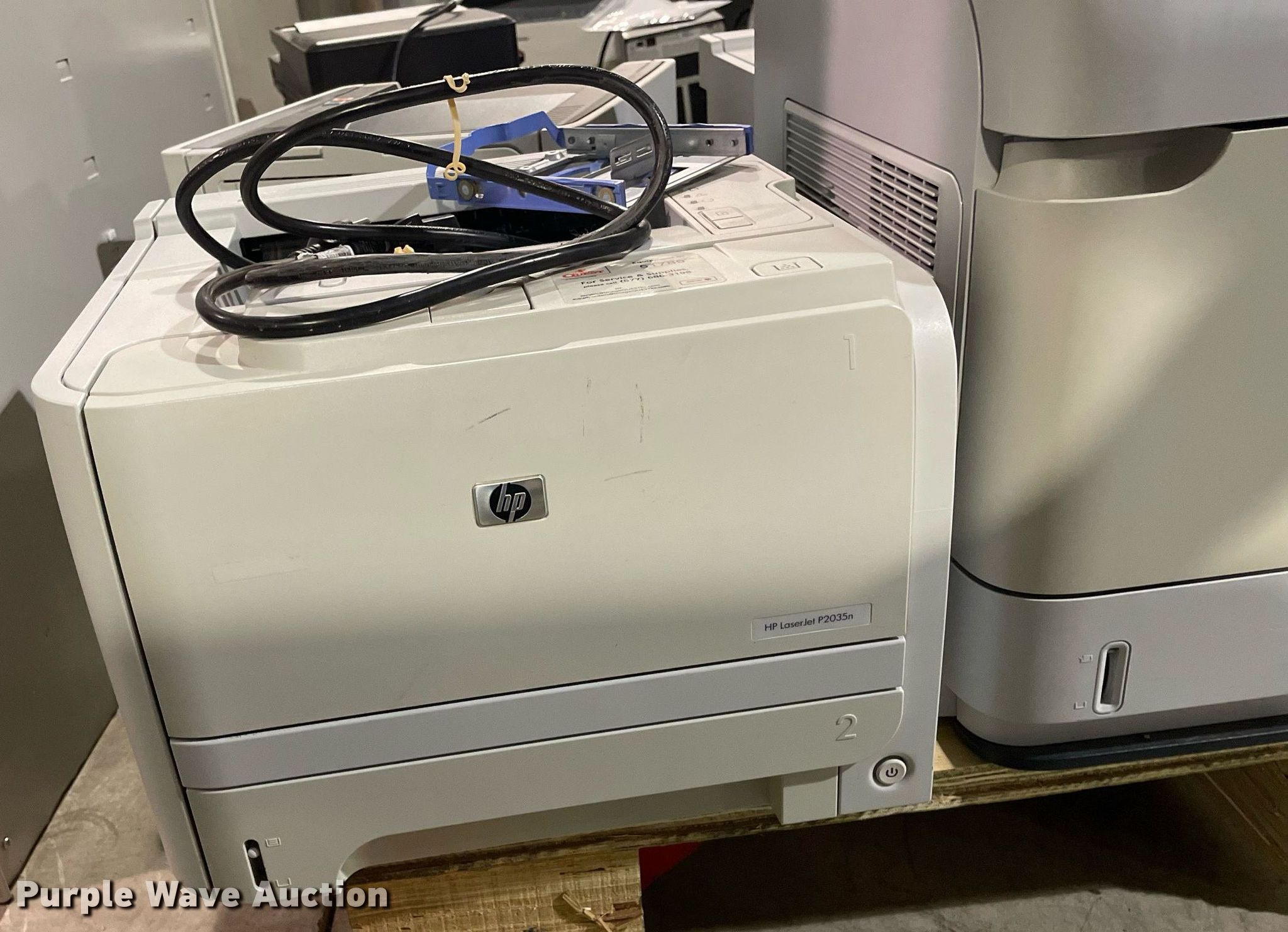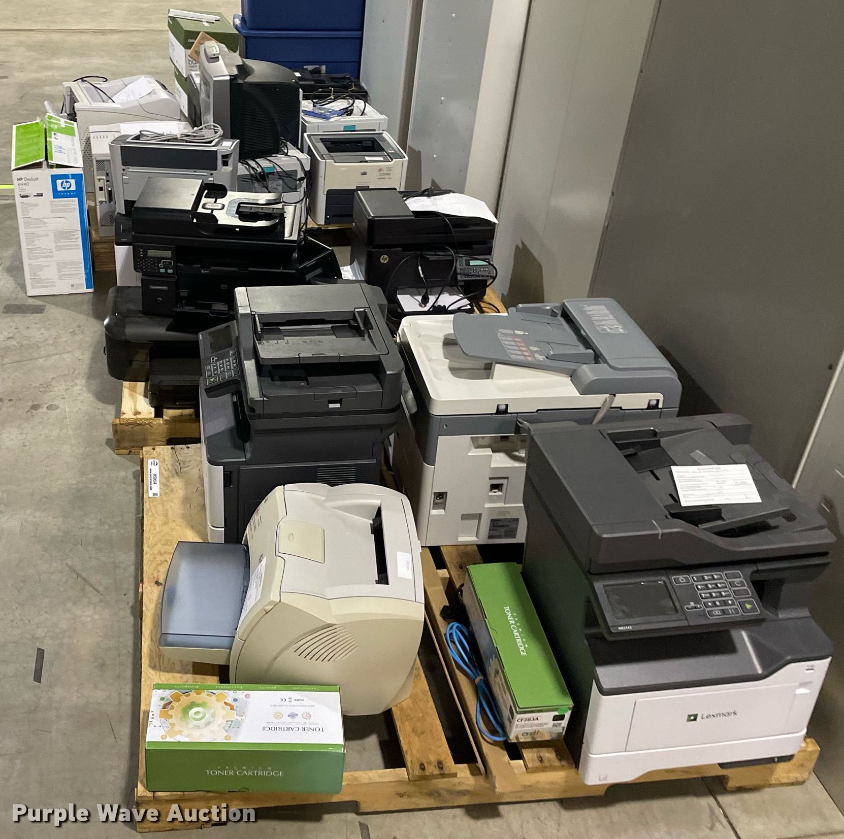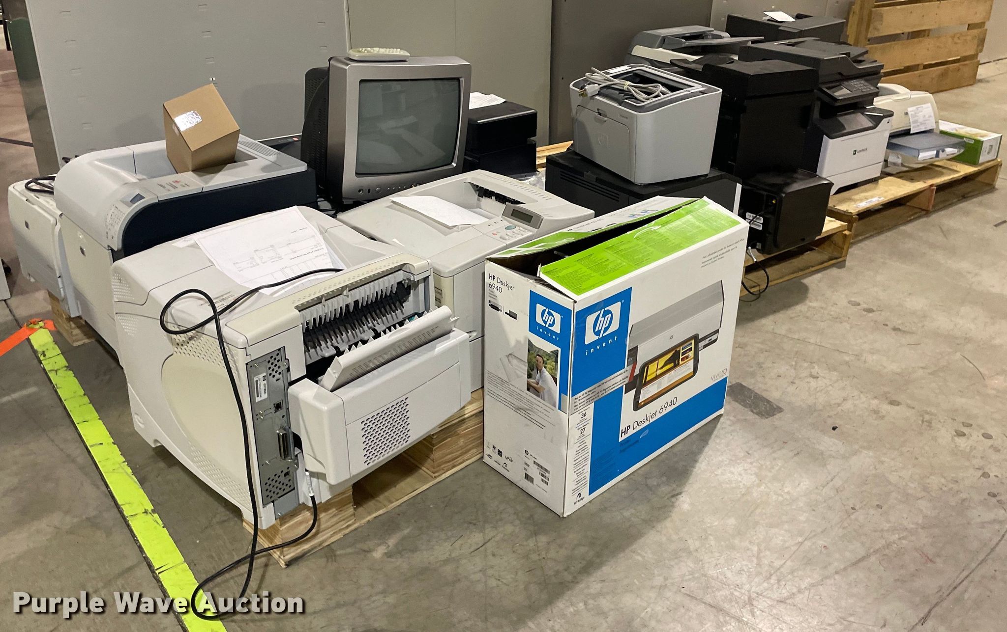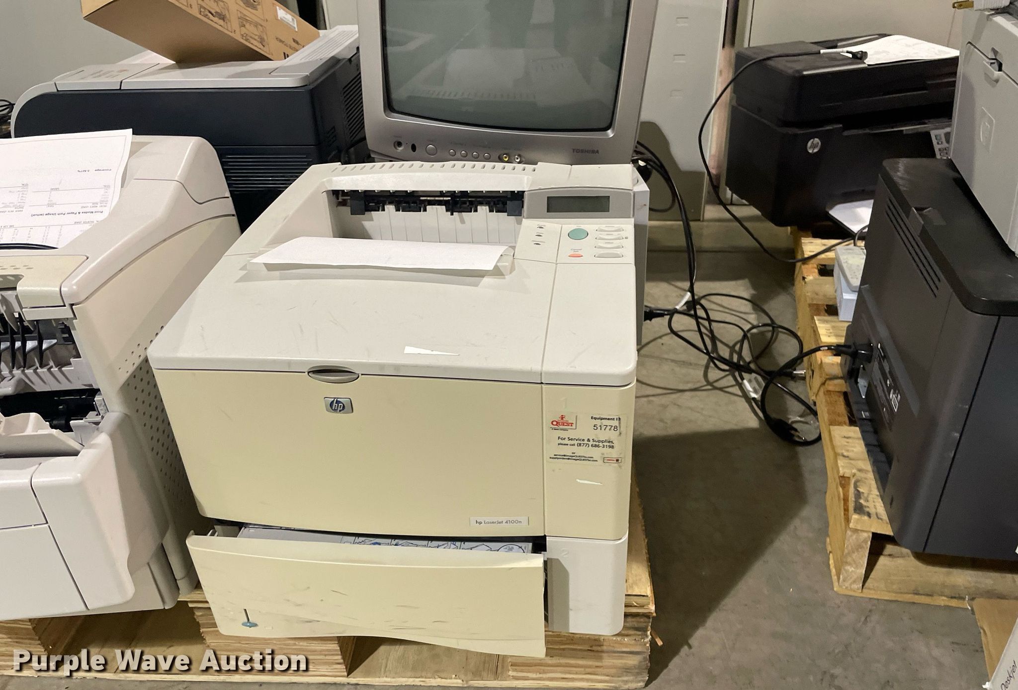 Purple Wave is selling a used Electronics in Kansas. This item is a Electronics with the following: HP LaserJet 1300n printer, Lexmark MB2442 printer, Canon ImageRunner 1025N printer, Lexmark MB2442 printer, HP LaserJet M1212nf MFP printer, HP Pro 8100 printer, APC Smart-Ups 1500 battery backup, Lexmark B2650 printer, HP Laserjet P1505 printer, Tripp-Lite APC battery backup, Linksys wireless-G internet home monitoring camera, 3Com switch, HP LaserJet Pro MFP M127fn printer, HP Deskjet 6940 printer, HP Laserjet 4100n printer, Toshiba 13A25 television, HP Laserjet P2035n printer, HP Laserjet 1320n printer, HP Laserjet P2035n printer, HP Laserjet P4015n printer, HP Laserjet 4240n printer, Canon waste toner bottle, (2) boxes of monitor arms