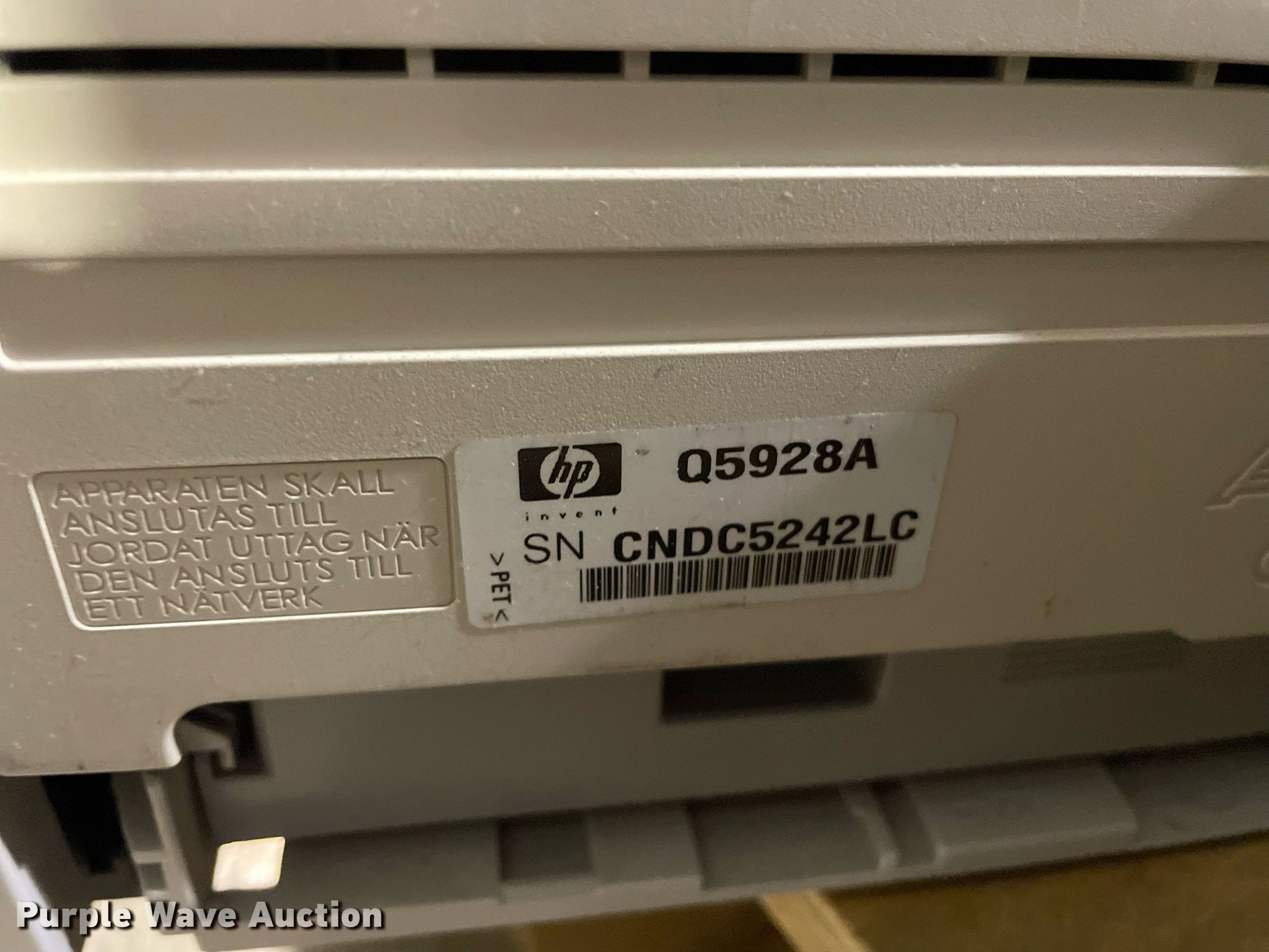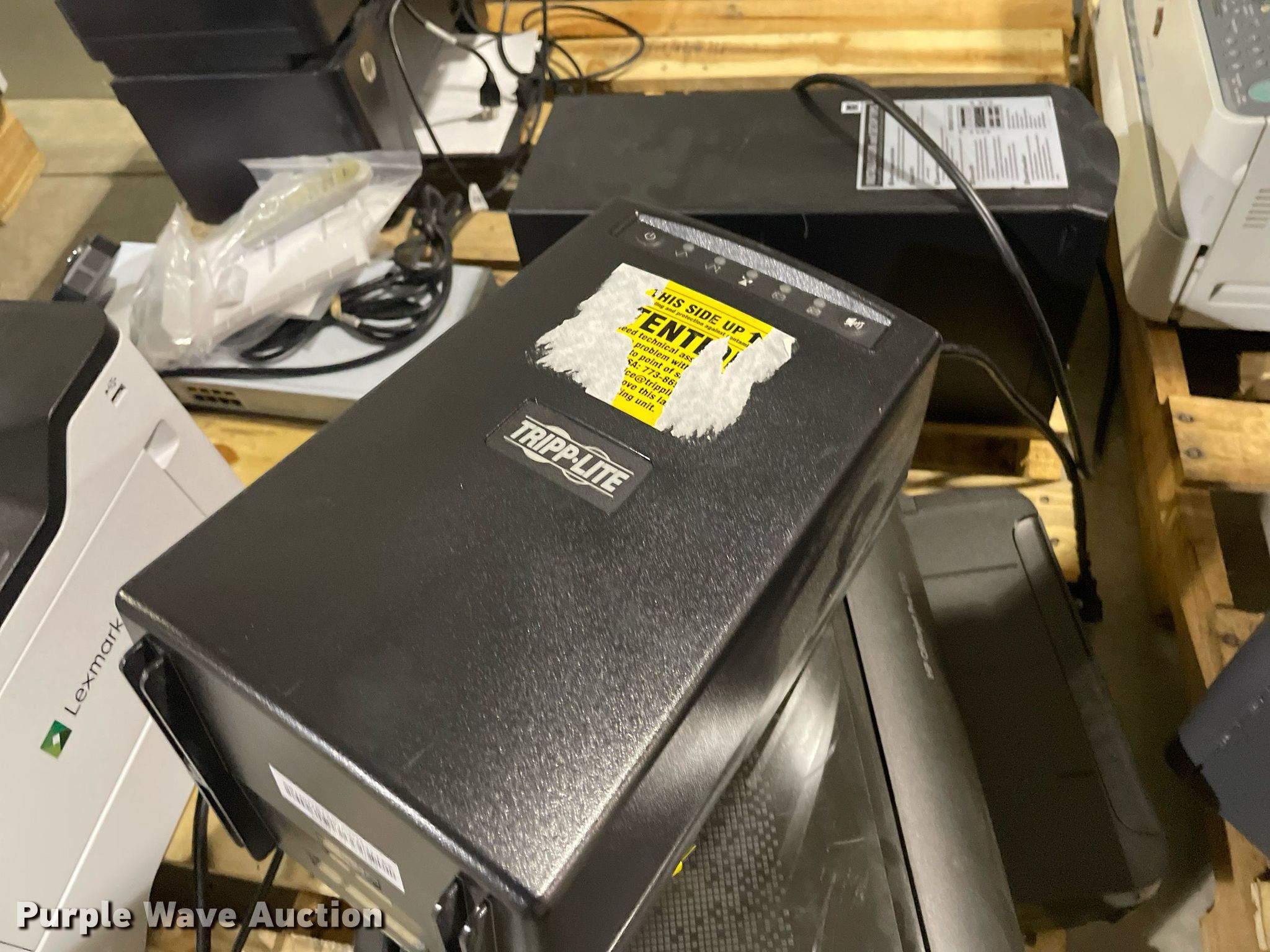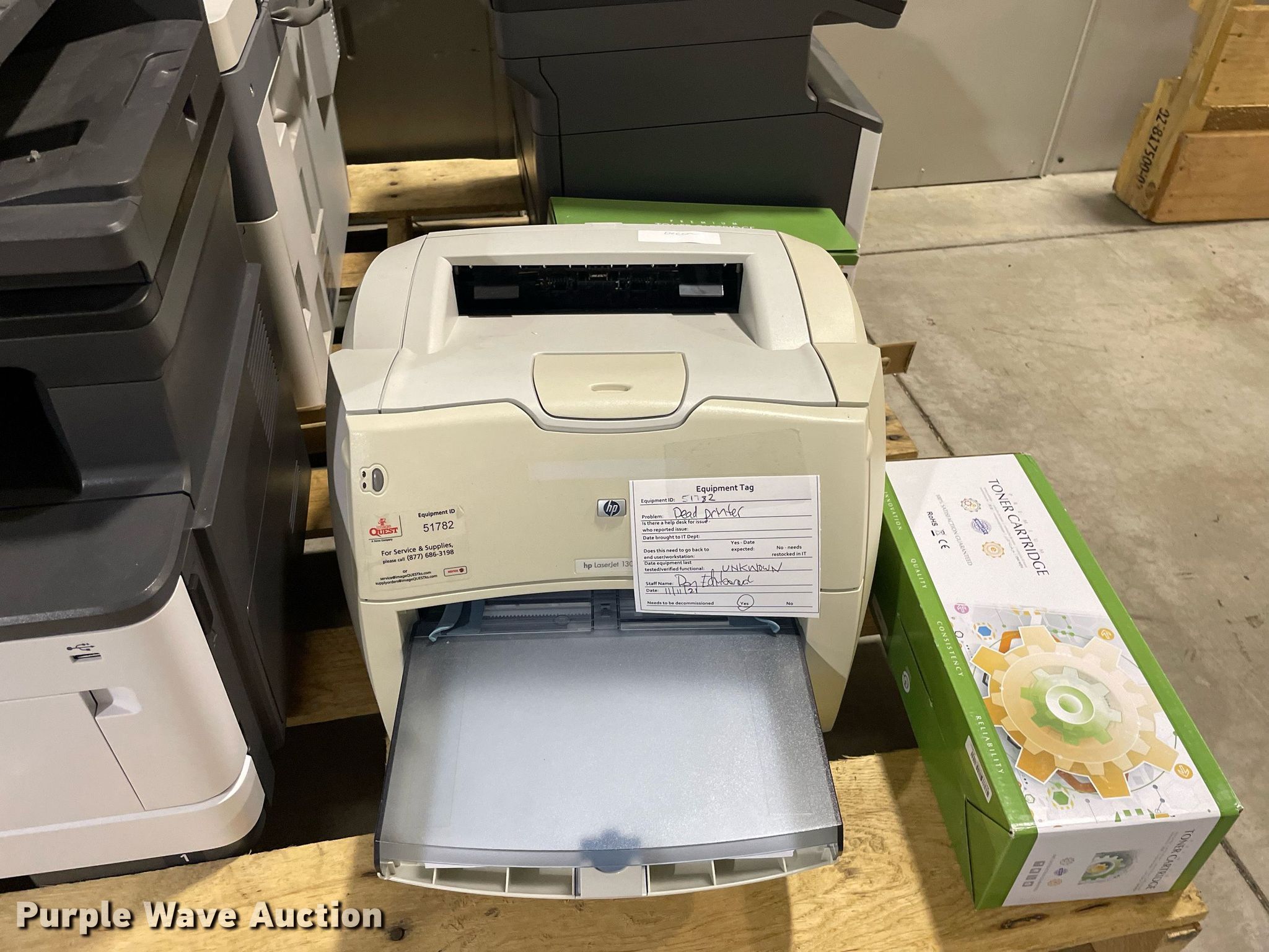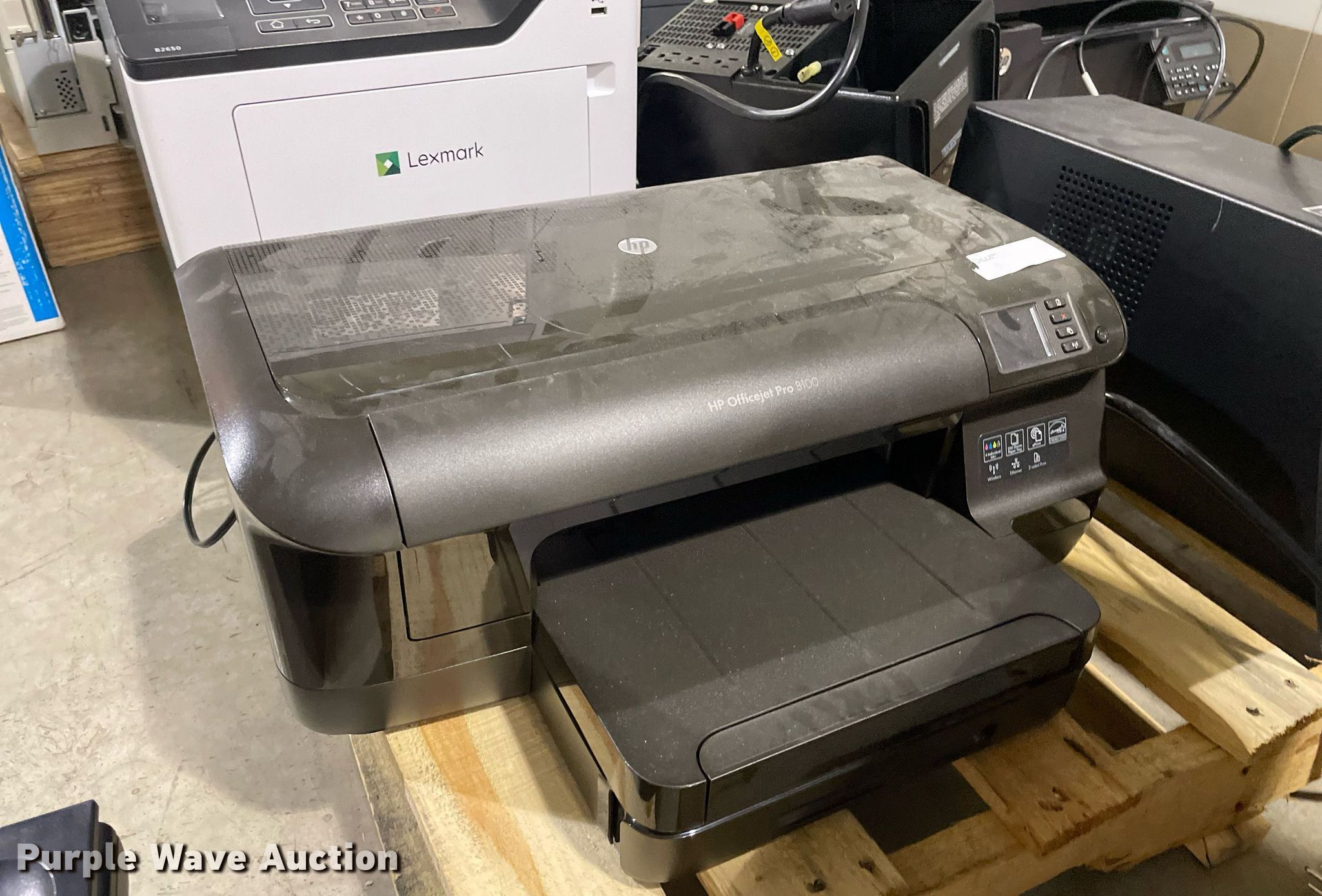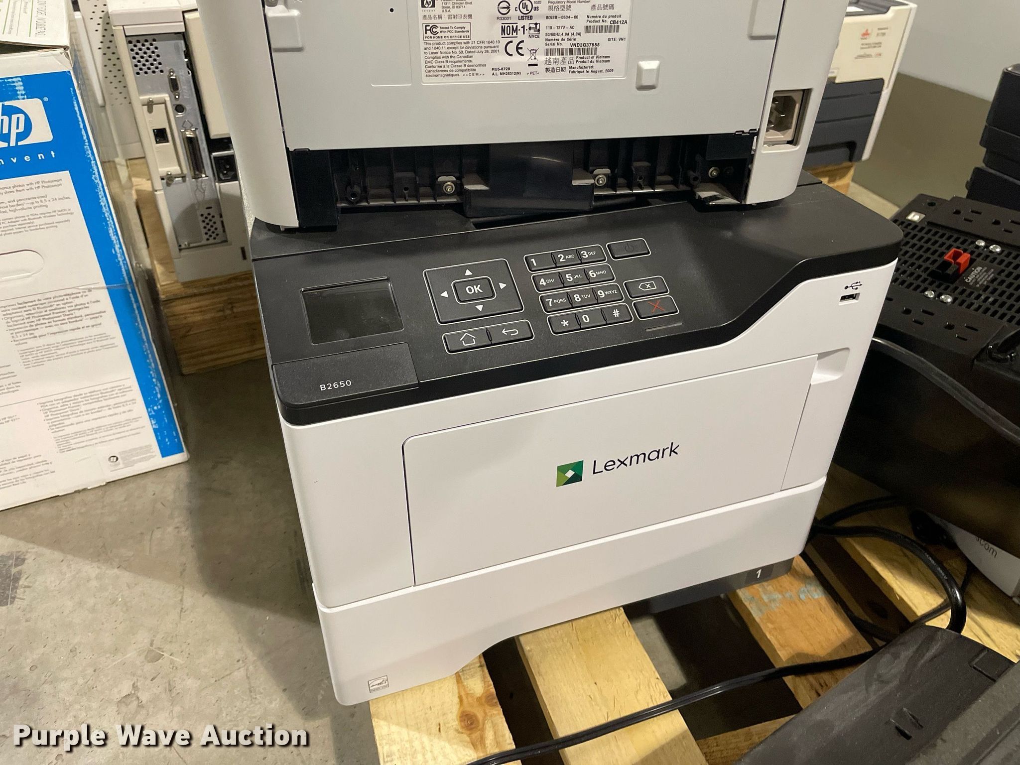 Purple Wave is selling a used Electronics in Kansas. This item is a Electronics with the following: HP LaserJet 1300n printer, Lexmark MB2442 printer, Canon ImageRunner 1025N printer, Lexmark MB2442 printer, HP LaserJet M1212nf MFP printer, HP Pro 8100 printer, APC Smart-Ups 1500 battery backup, Lexmark B2650 printer, HP Laserjet P1505 printer, Tripp-Lite APC battery backup, Linksys wireless-G internet home monitoring camera, 3Com switch, HP LaserJet Pro MFP M127fn printer, HP Deskjet 6940 printer, HP Laserjet 4100n printer, Toshiba 13A25 television, HP Laserjet P2035n printer, HP Laserjet 1320n printer, HP Laserjet P2035n printer, HP Laserjet P4015n printer, HP Laserjet 4240n printer, Canon waste toner bottle, (2) boxes of monitor arms