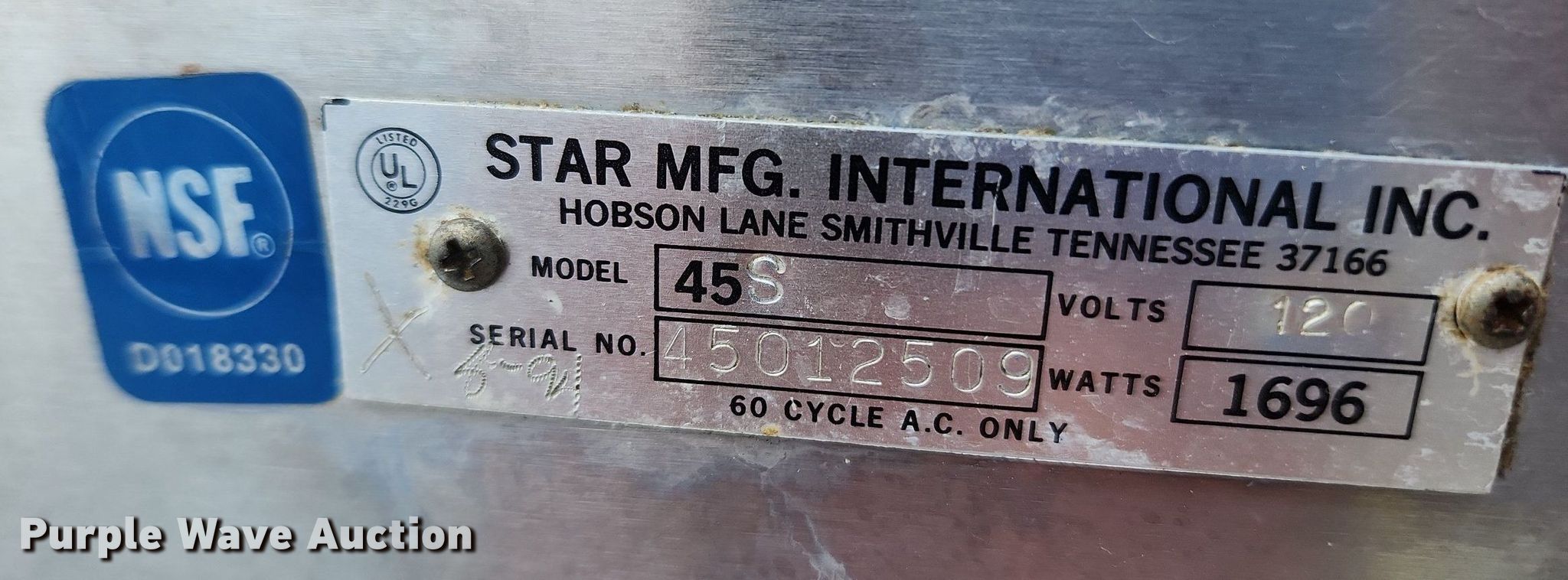 Restaurant equipment has sold in Perryville, Missouri for $165. Item MW9676 sold on May 16th, 2023.
