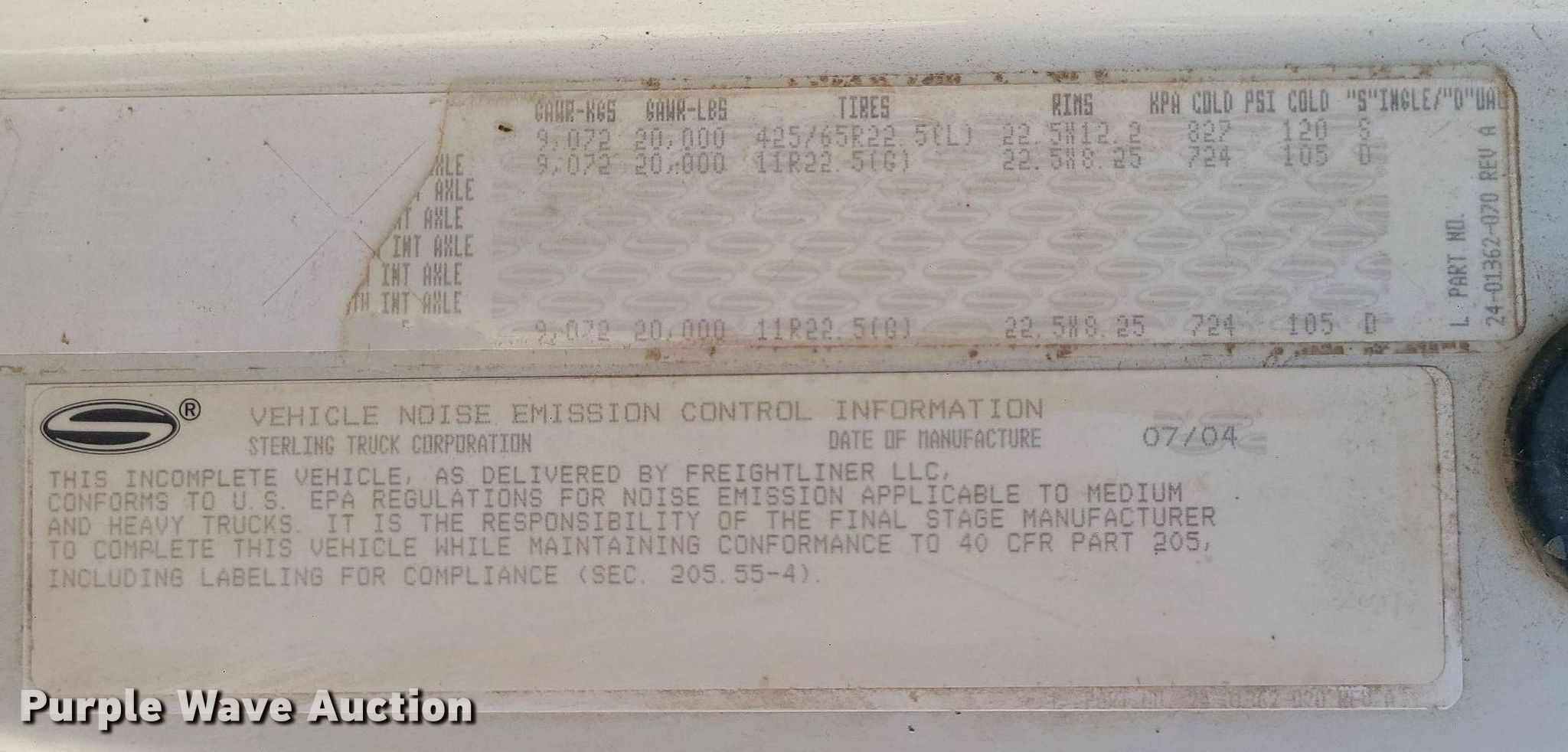Purple Wave is selling a used Construction Dump Truck in Missouri. This item is a 2005 Sterling L7500 dump truck with the following: Miles: 124,851 on odometer, VIN: 2FZHATDC25AN48652