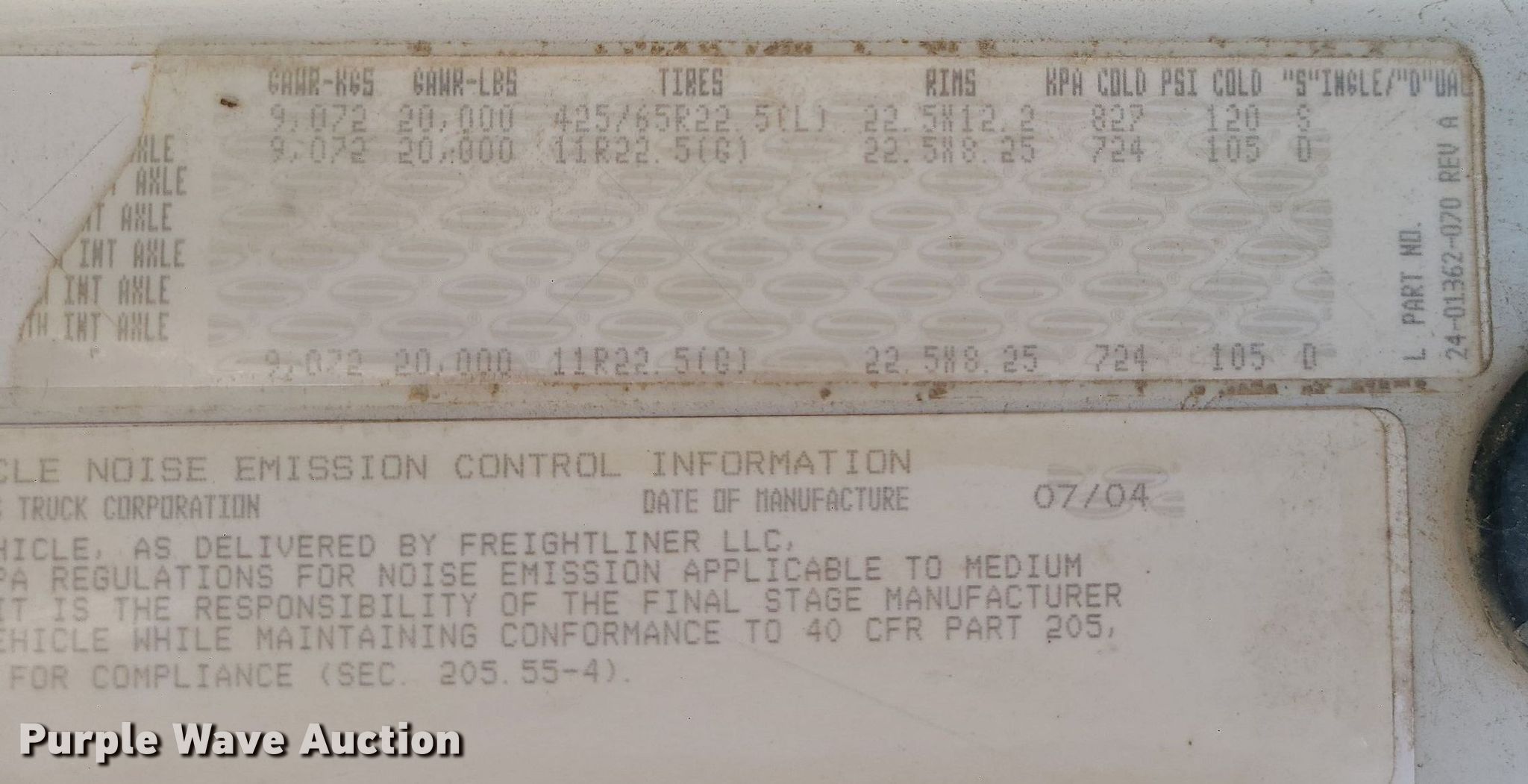 - Front: 425/65R22.5