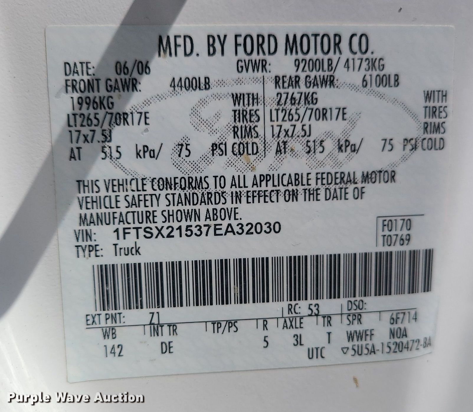 - VIN: 1FTSX21537EA32030