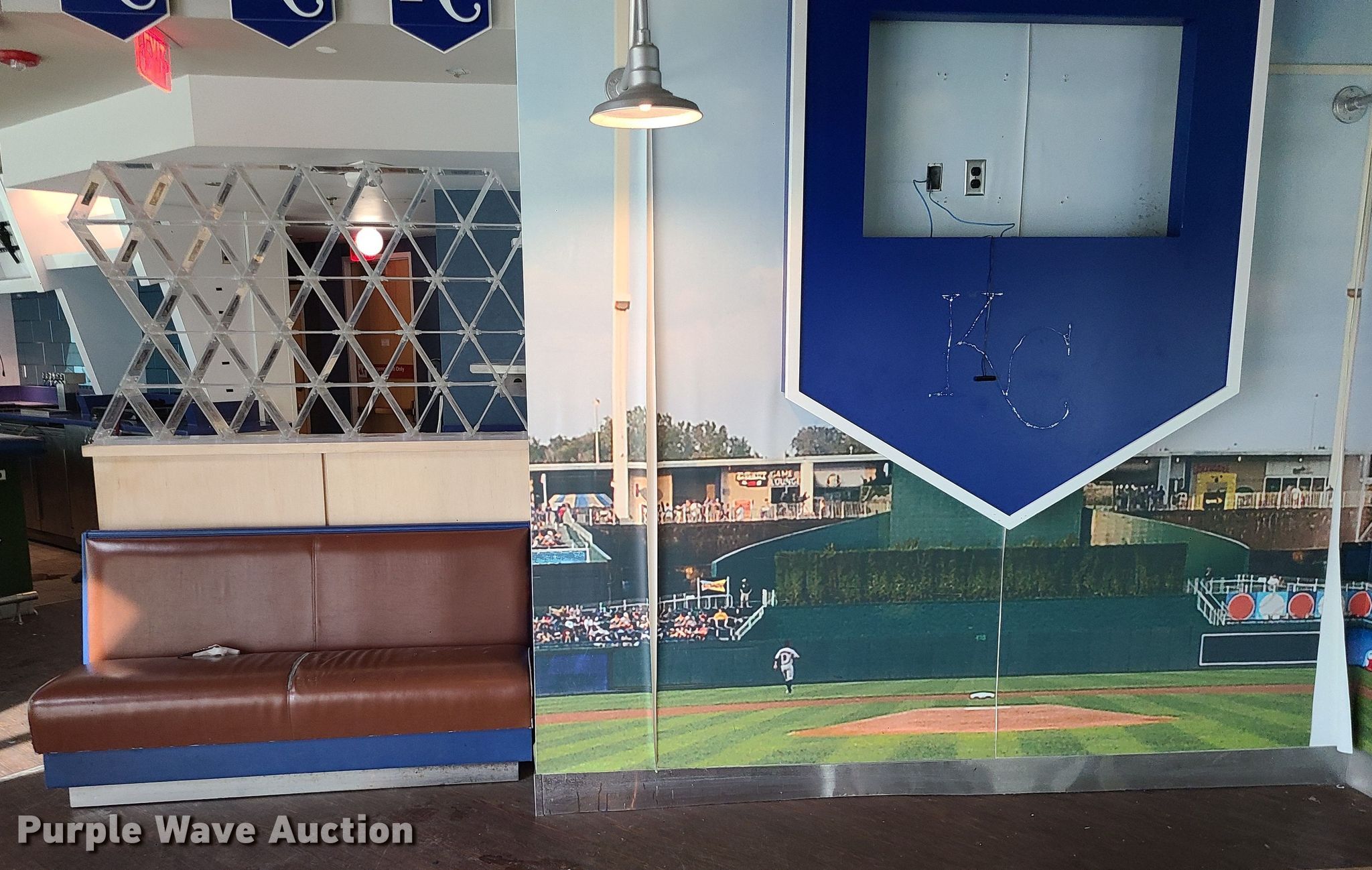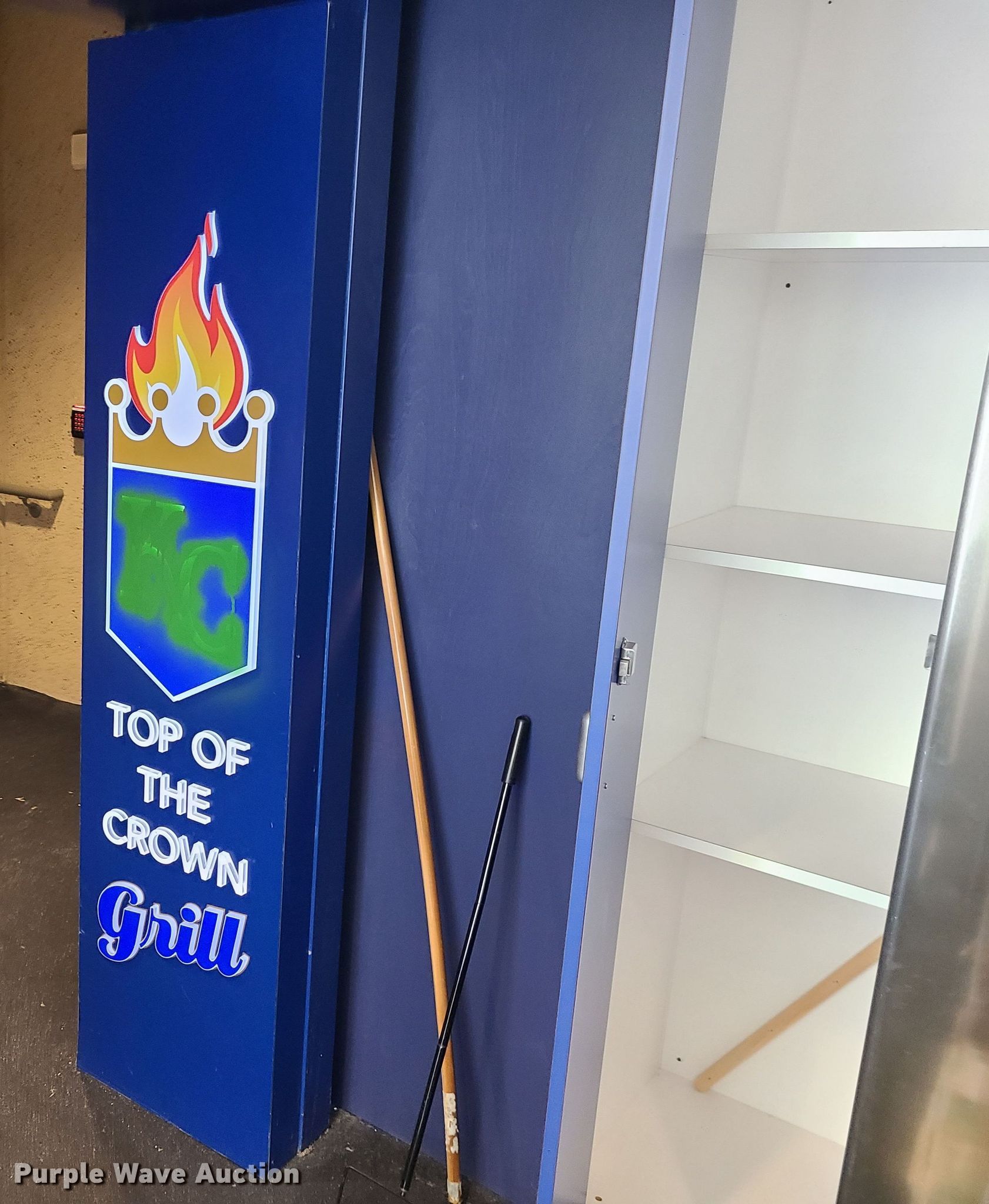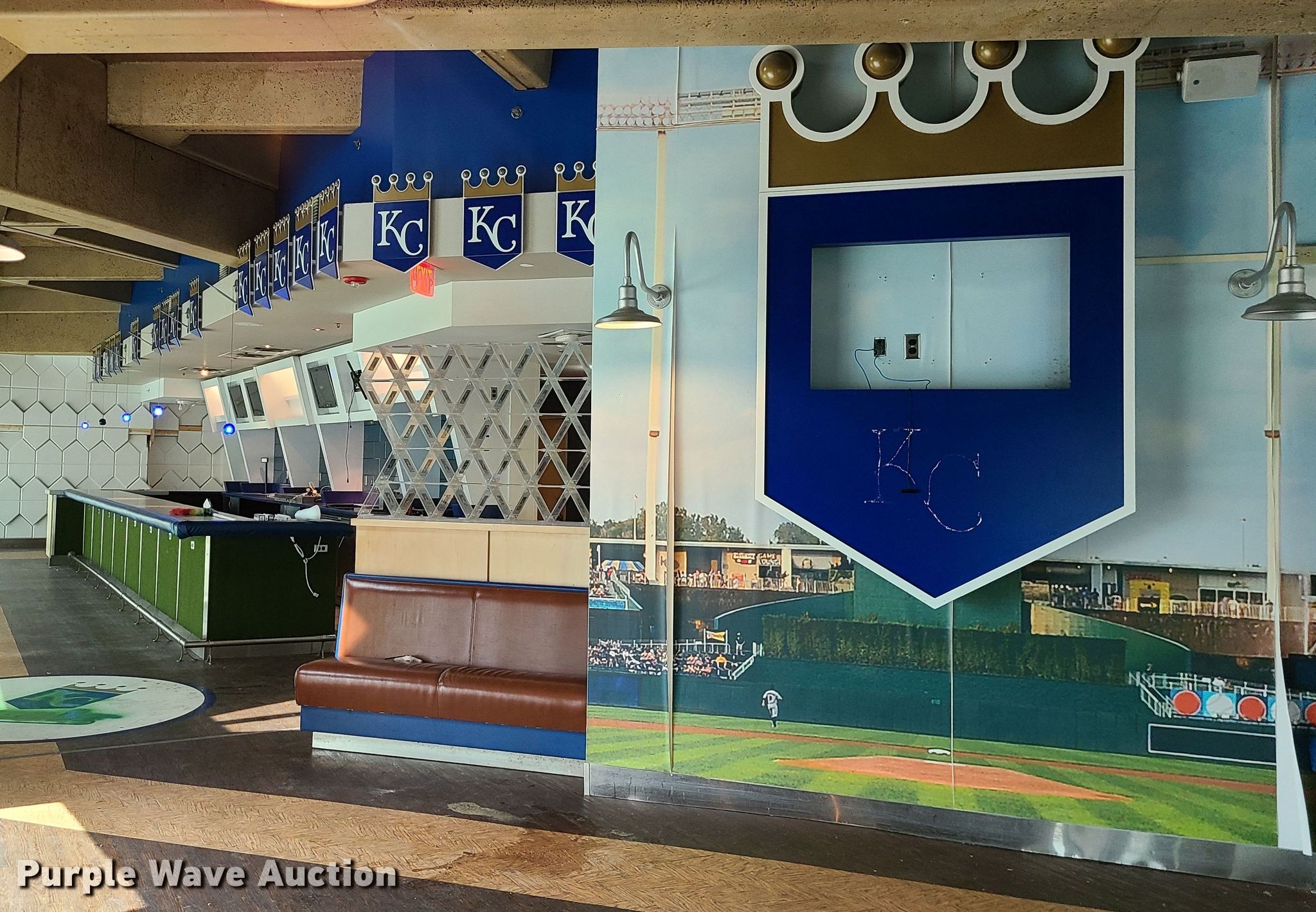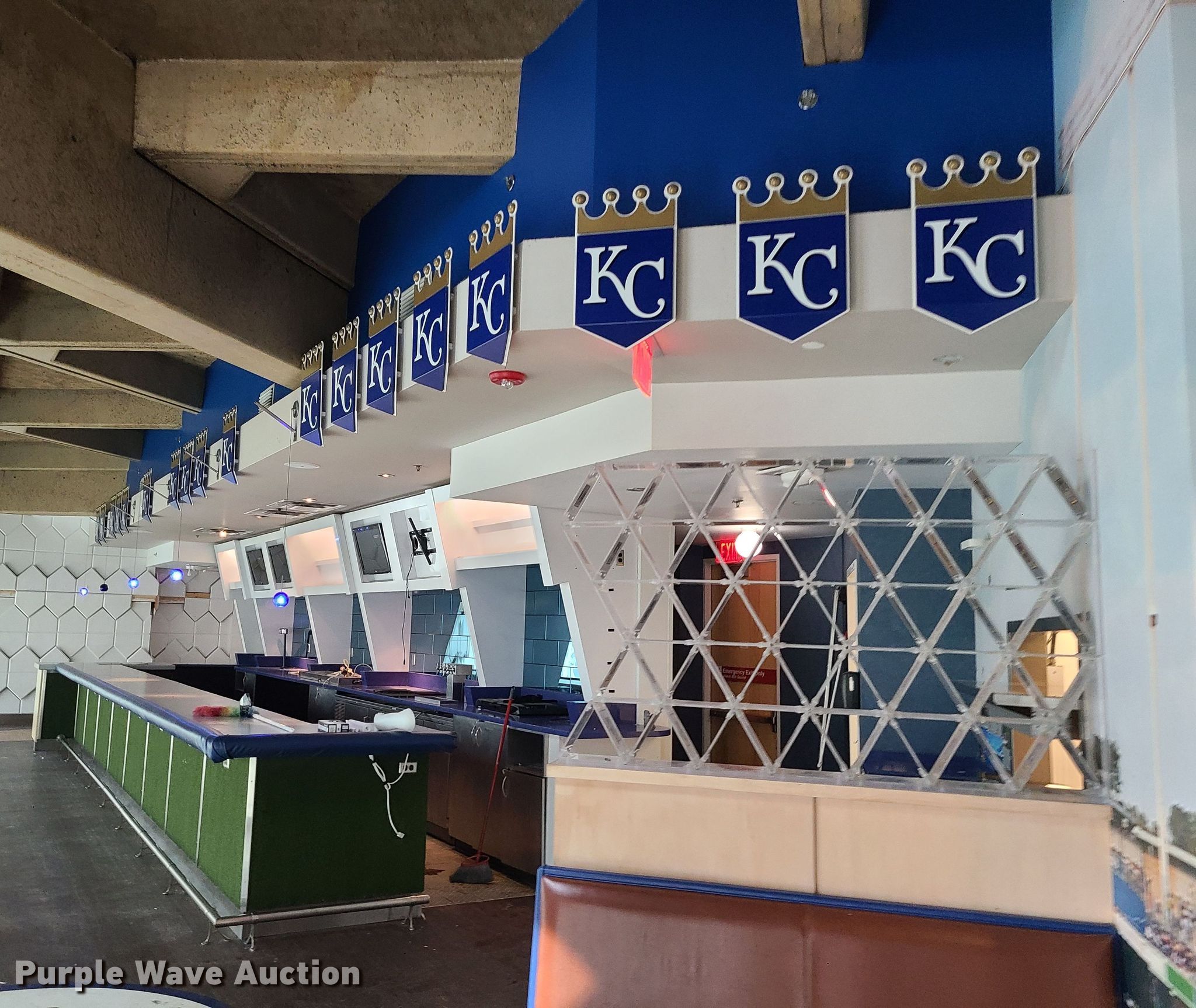 Purple Wave is selling a used Restaurant Equip. in Missouri. This item is a Restaurant equipment with the following: Kansas City Royals signs, Monitors, Shelving and more