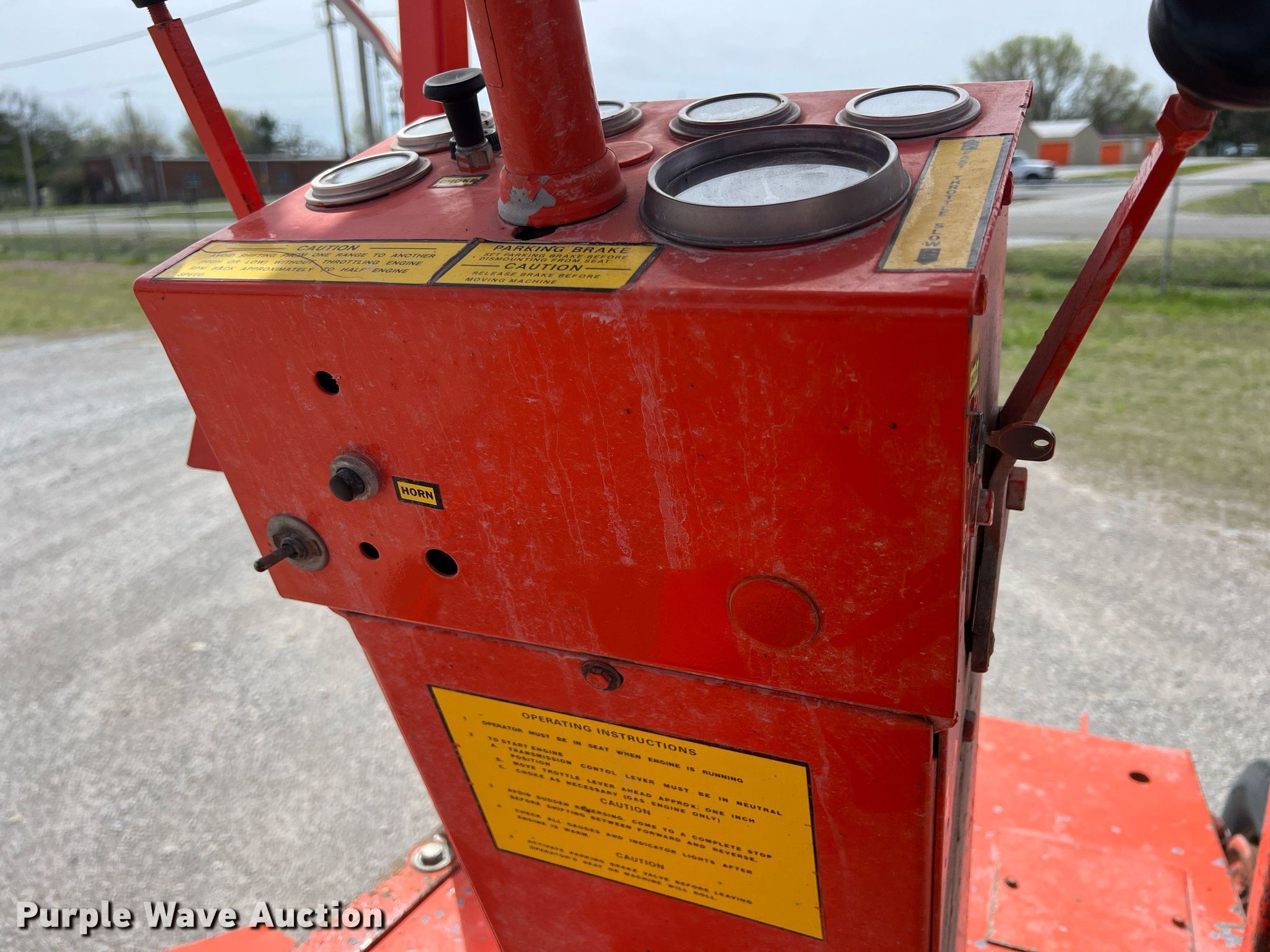 Waldon Sweepmaster broom. Hours: 1,277 on meter, Serial: 18765. Engine Cylinders: 4, Fuel type: Gas. Transmission Hydrostatic. Chassis Suspension: Spring, Brakes: Hydraulic. Features Broom Width: 90". Tires Front: P225/75R15, Rear: ST225/75R15. Neosho Special Road District. 500 Nelson Ave. Neosho, MO 64850