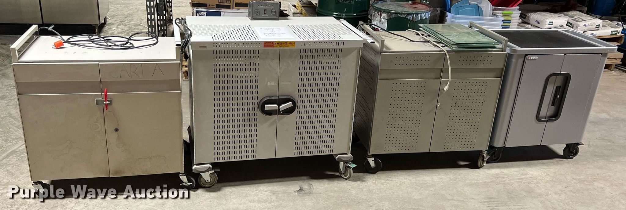 Purple Wave is selling a used Office Supplies and Equip. in Kansas. This item is a (4) charging carts with the following: Single phase
