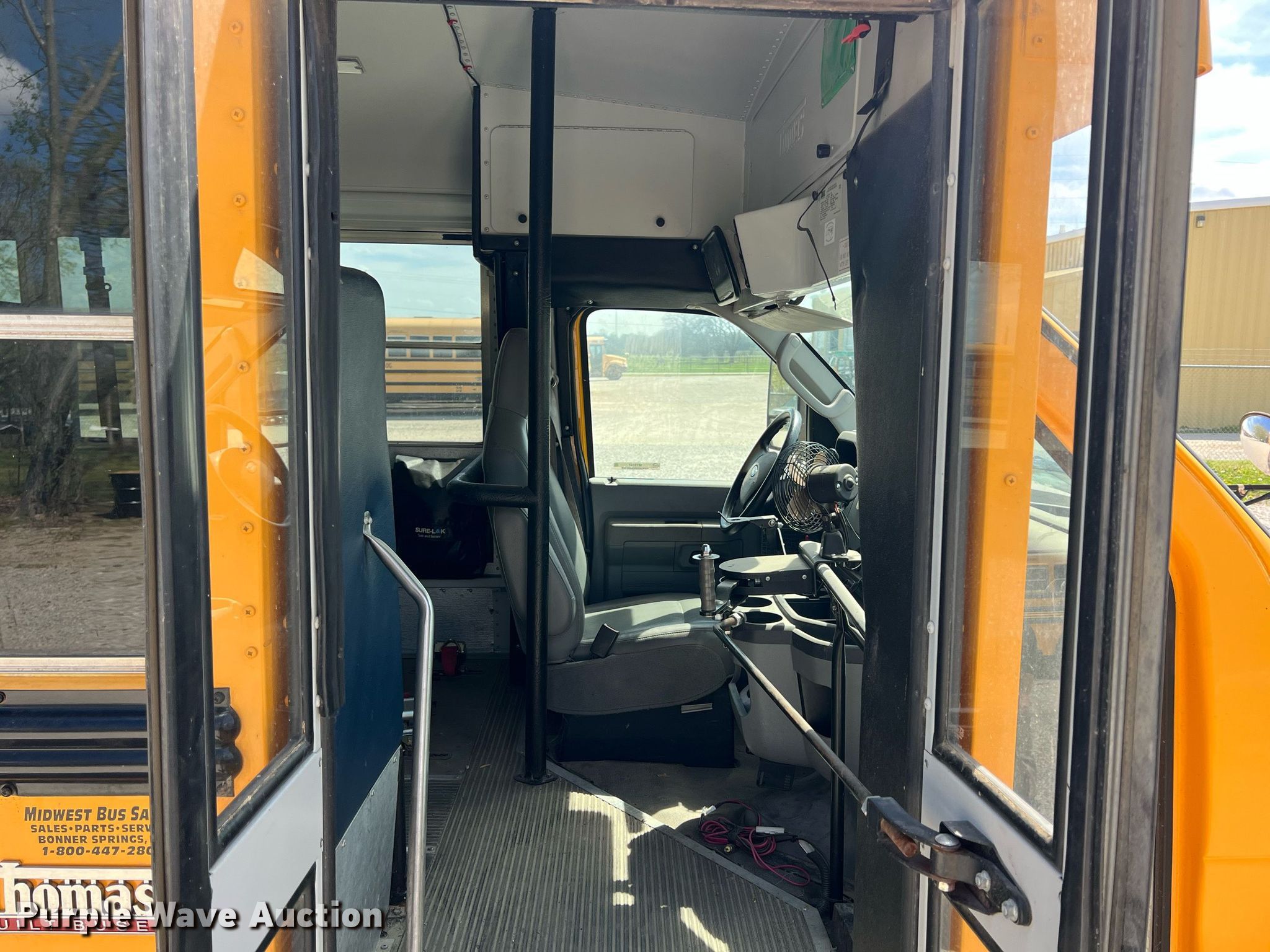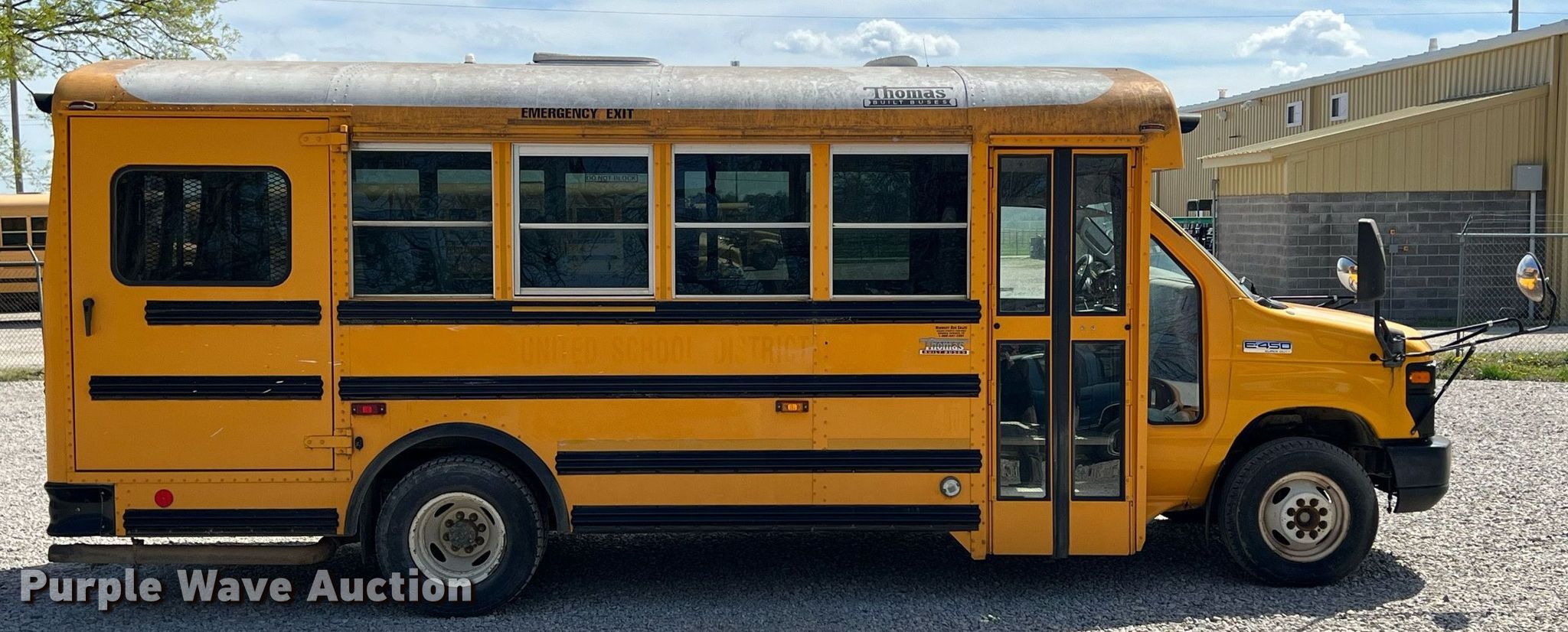 2010 Ford E450 Super Duty school bus. Miles: 137,357 on odometer, VIN: 1FDFE45P79DA67768. Engine Displacement: 6.0L, Cylinders: 8, Fuel type: Diesel. Transmission Automatic. Chassis Axles: Single, Suspension: Spring, Brakes: Hydraulic, GVWR: 14,500 lbs, Wheelbase: 158". Interior AC, Heat, Cruise control, Passengers: 9, Adult seats: 7, Wheelchair lift. Tires Size: LT225/75R16. Kansas title. Title distribution may be delayed up to 14 days from verification of funds. USD 506 Labette County Schools. 401 S High School St. Altamont, KS 67330