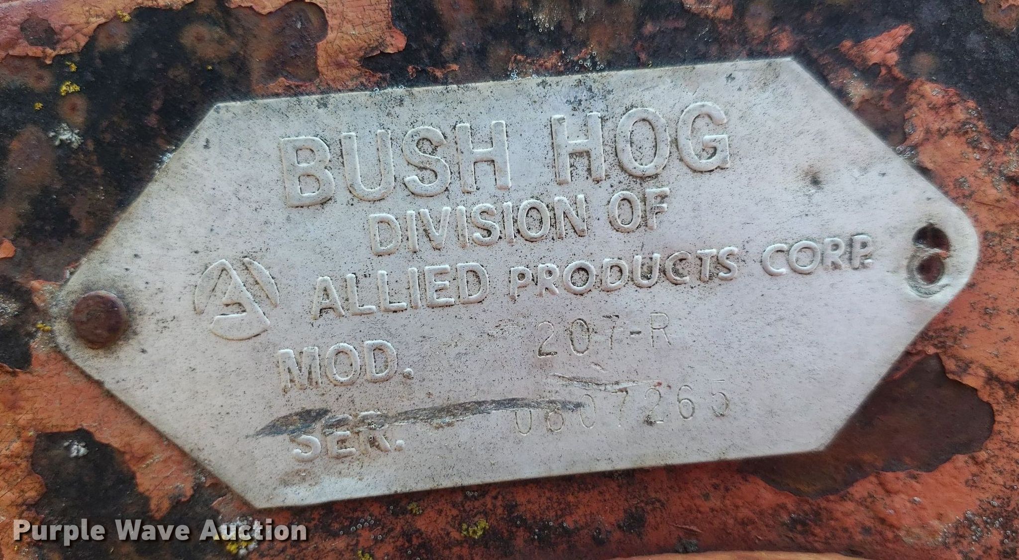 Purple Wave is selling a used Mower, Cutter, Shredder in Kansas. This item is a Brush Hog 207-R rotary mower with the following: Serial: 0807265