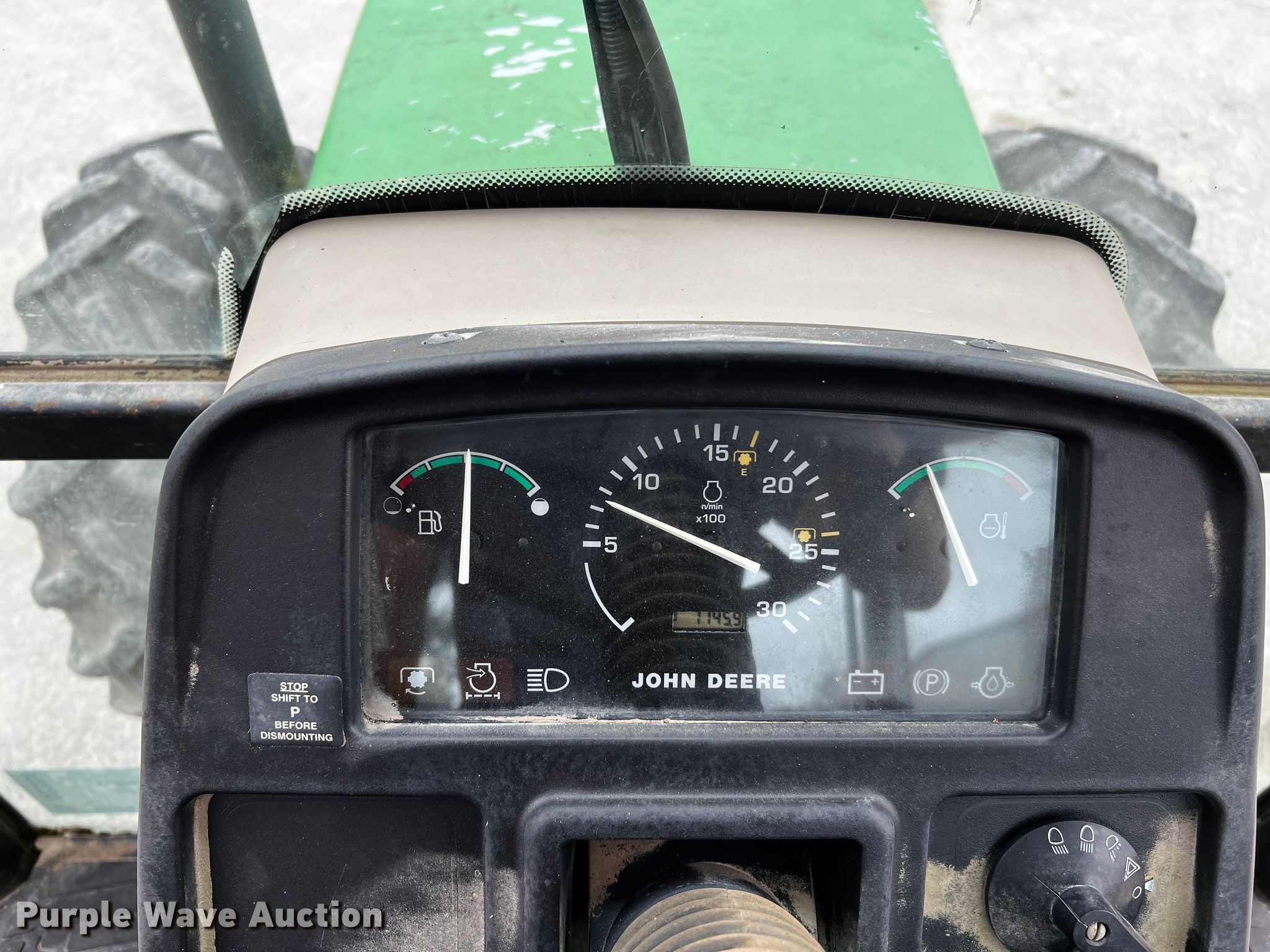2002 John Deere 5520 MFWD tractor. Hours: 1,146 on meter, Serial: LV5520S253008. Engine John Deere, Cylinders: 4, Fuel type: Diesel. Transmission Synchro, 9F - 3R, Differential lock. Features PTO: 540, Three point Top link, Seven pin outlet, Hydraulic remote sets Front: 2, Rear: 3, Loader Controls: Joystick. Tires Front: 12.4-24, Rear: 18.4-30, Wheel weights: 1. Notes Glass missing, Doors missing, Batwing rotary mower not included. Paradise Lawn. 23355 Bat Cave Road. San Antonio, TX 78266