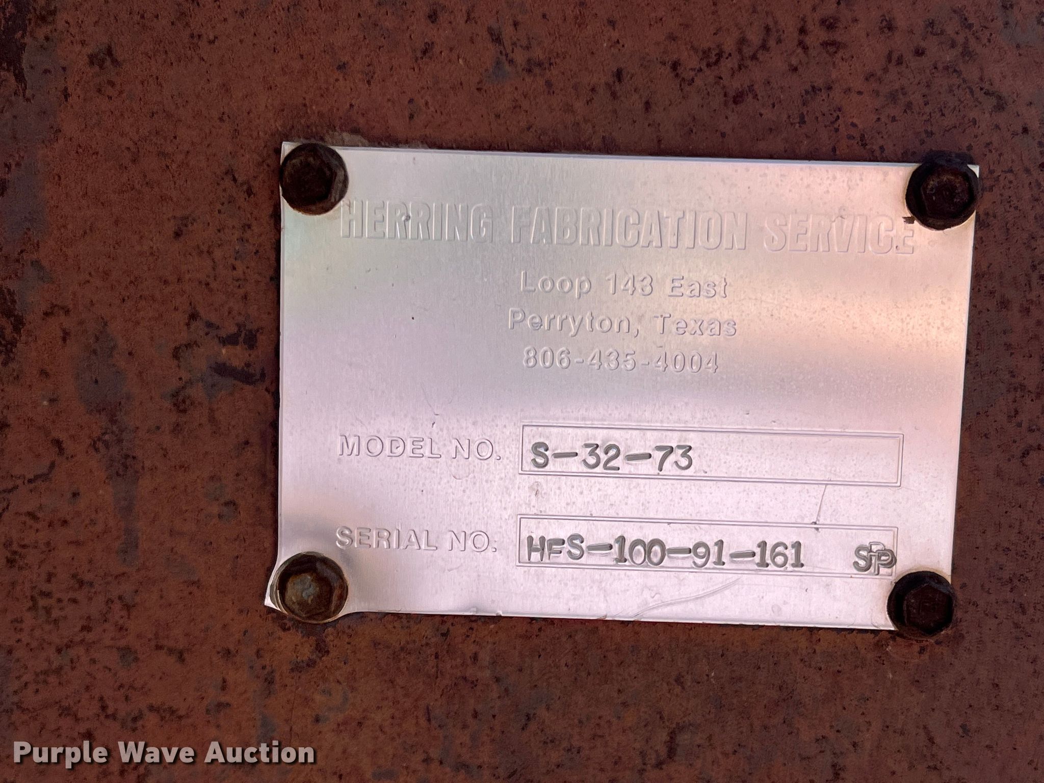 Purple Wave is selling a used Cotton Harvester Equip. in Oklahoma. This item is a Herring S-32-73 module builder with the following: Serial: HFS-100-91-161 SP