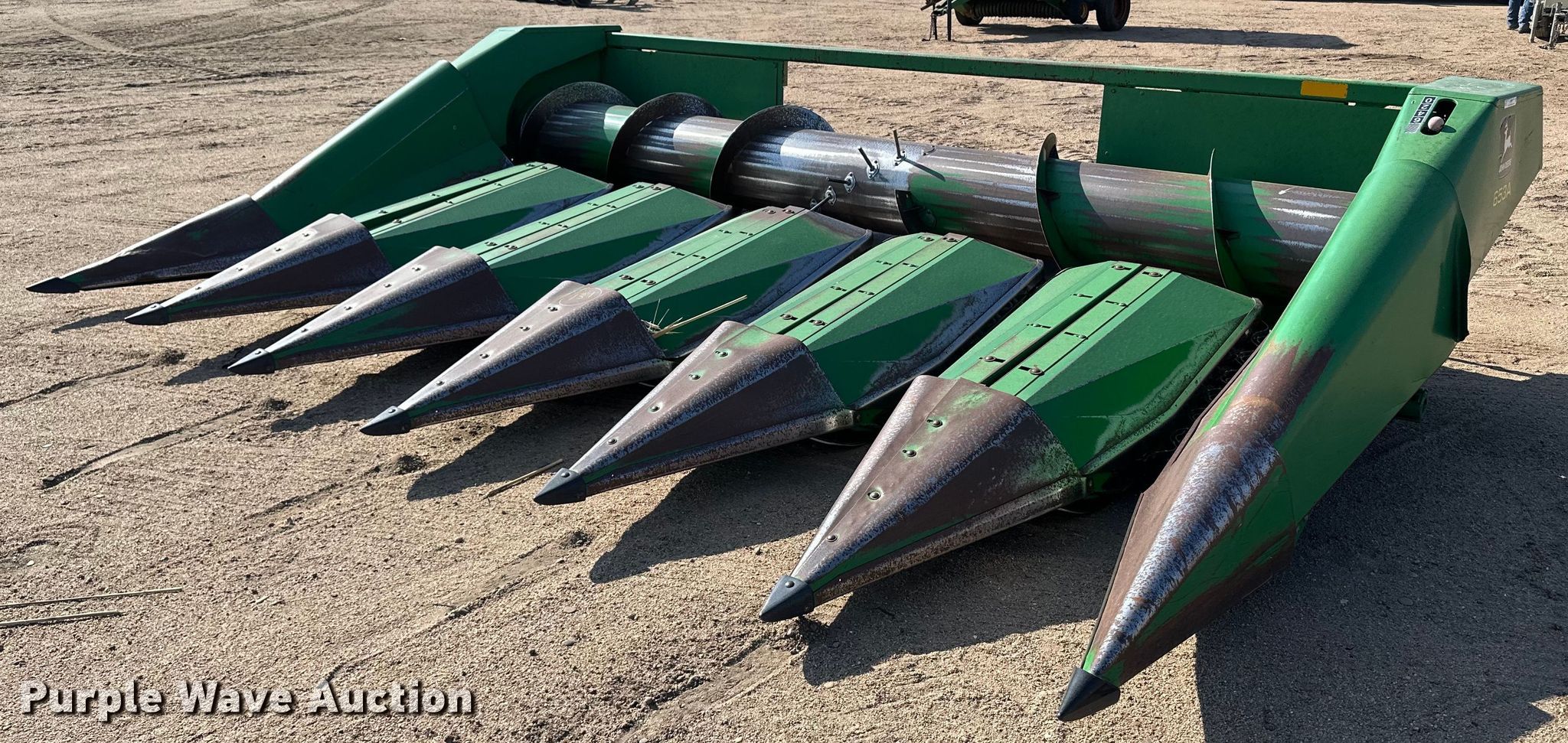 John Deere 653A all-crop head. Serial: HO653AX625420. Features Rows: 6, Row spacing: 30", Drivelines: Dual. 1137 90th Ave. Kinsley, KS 67547