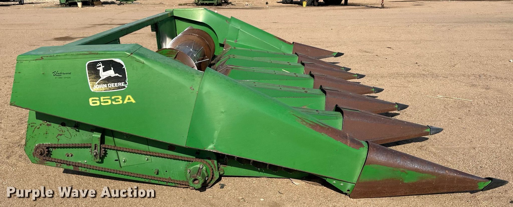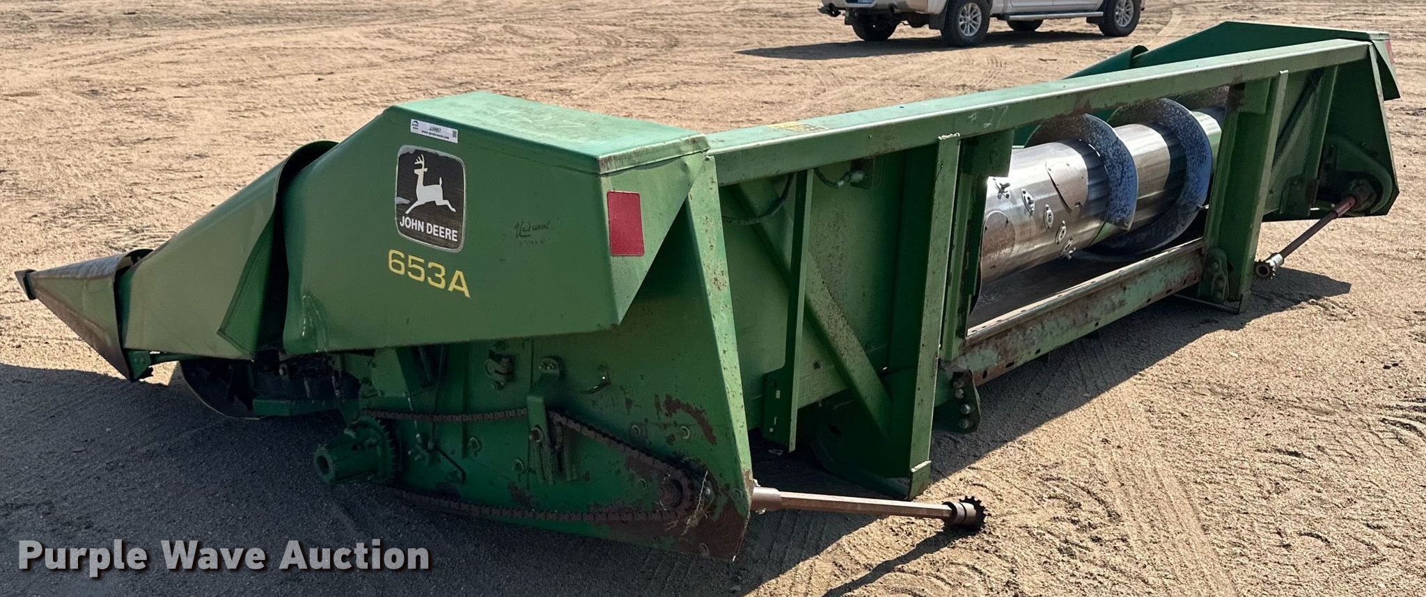Purple Wave is selling a used Corn or Row Head in Kansas. This item is a John Deere 653A all-crop head with the following: Serial: HO653AX625420