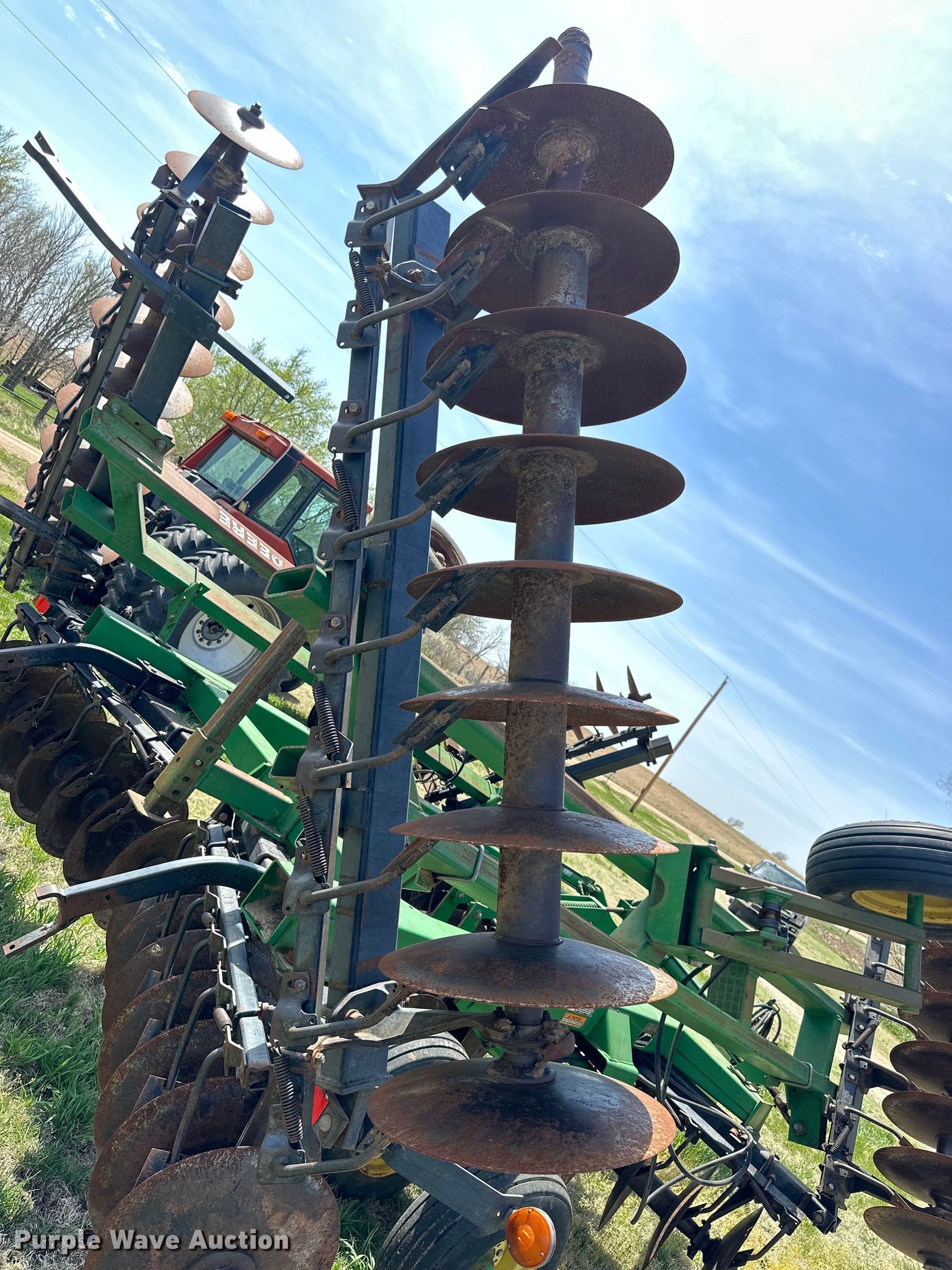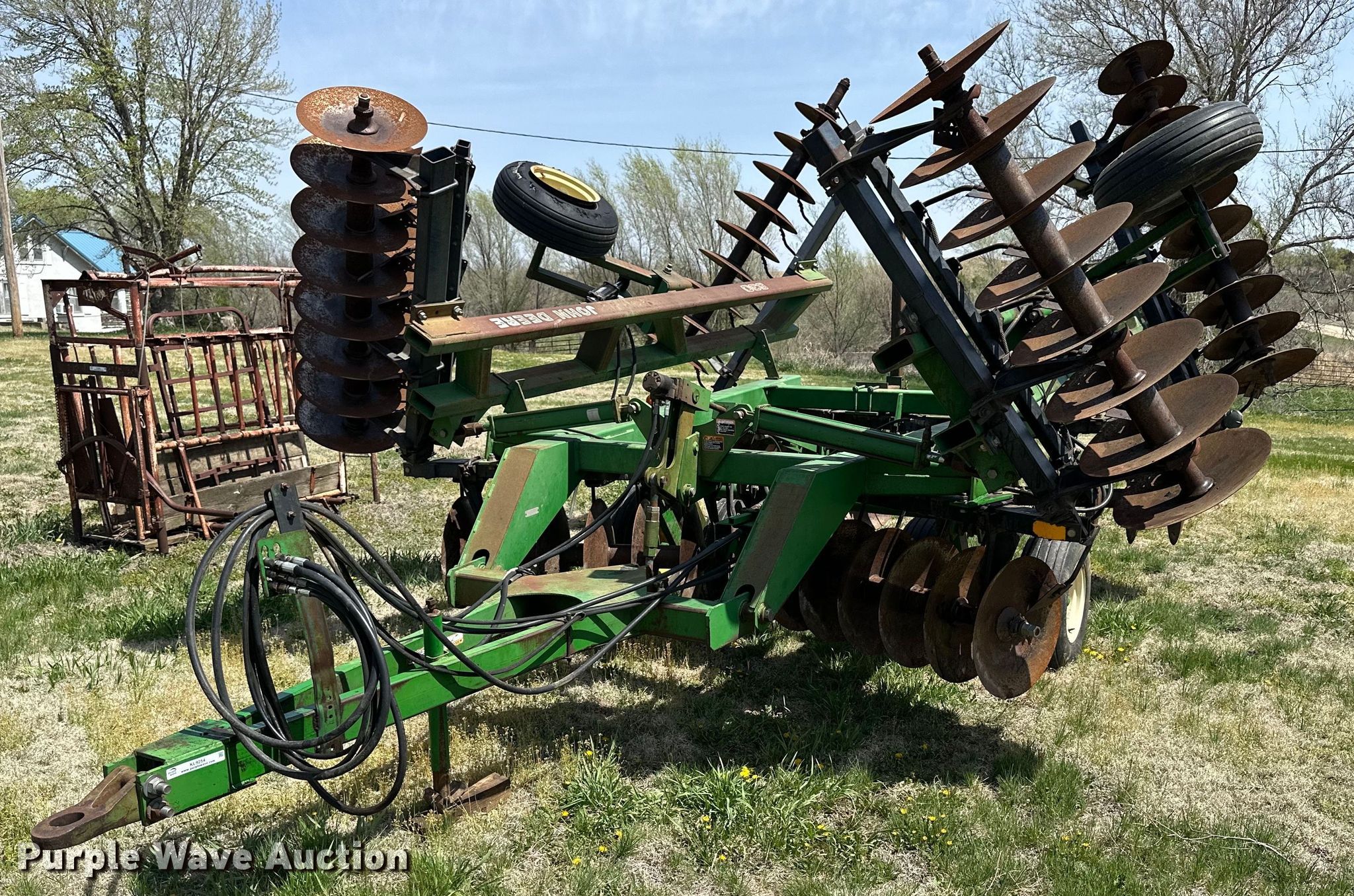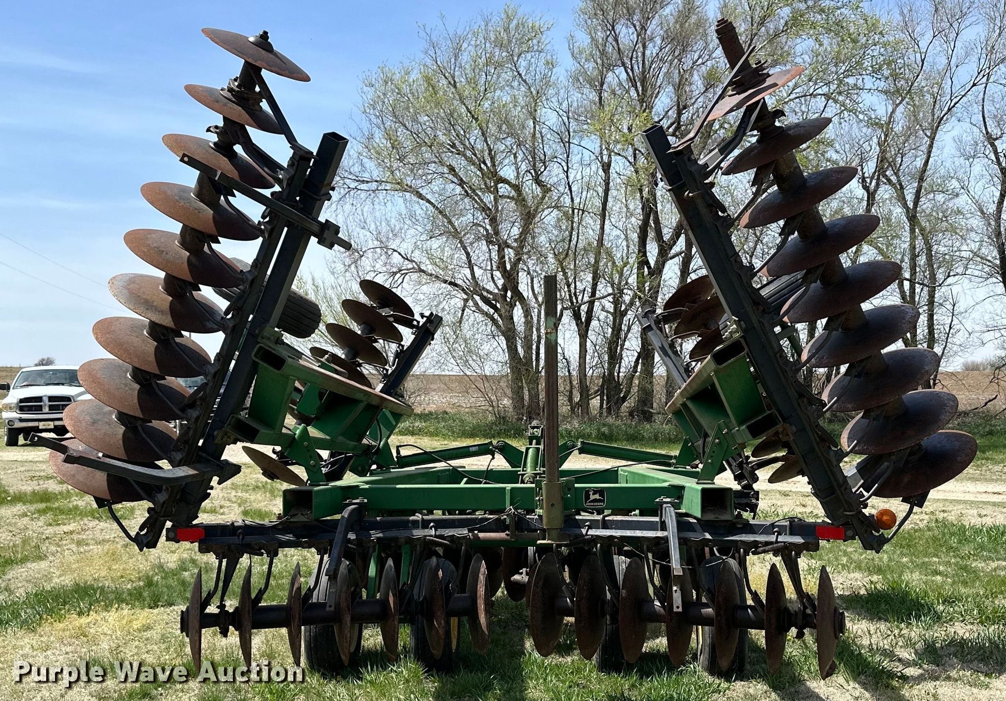 Purple Wave is selling a used Disk in Kansas. This item is a John Deere 630 tandem disk with the following: Overall width: 21', Serial: N00630X010293