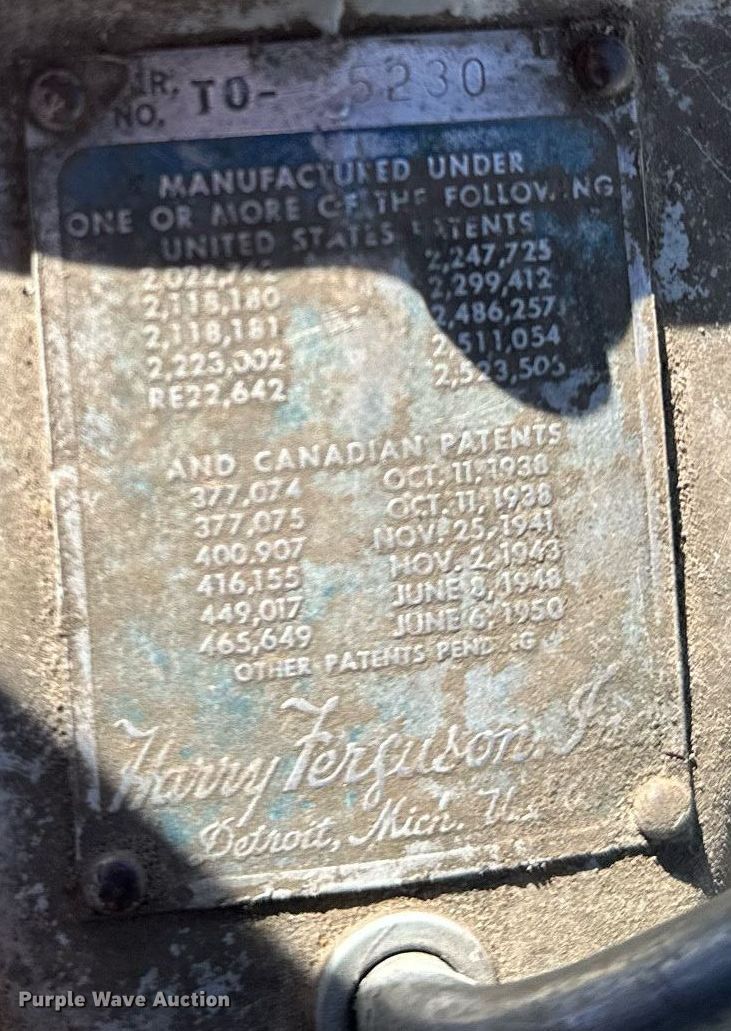 Purple Wave is selling a used Tractor in Minnesota. This item is a 1951 Ferguson TO-20 tractor with the following: Serial: 45230