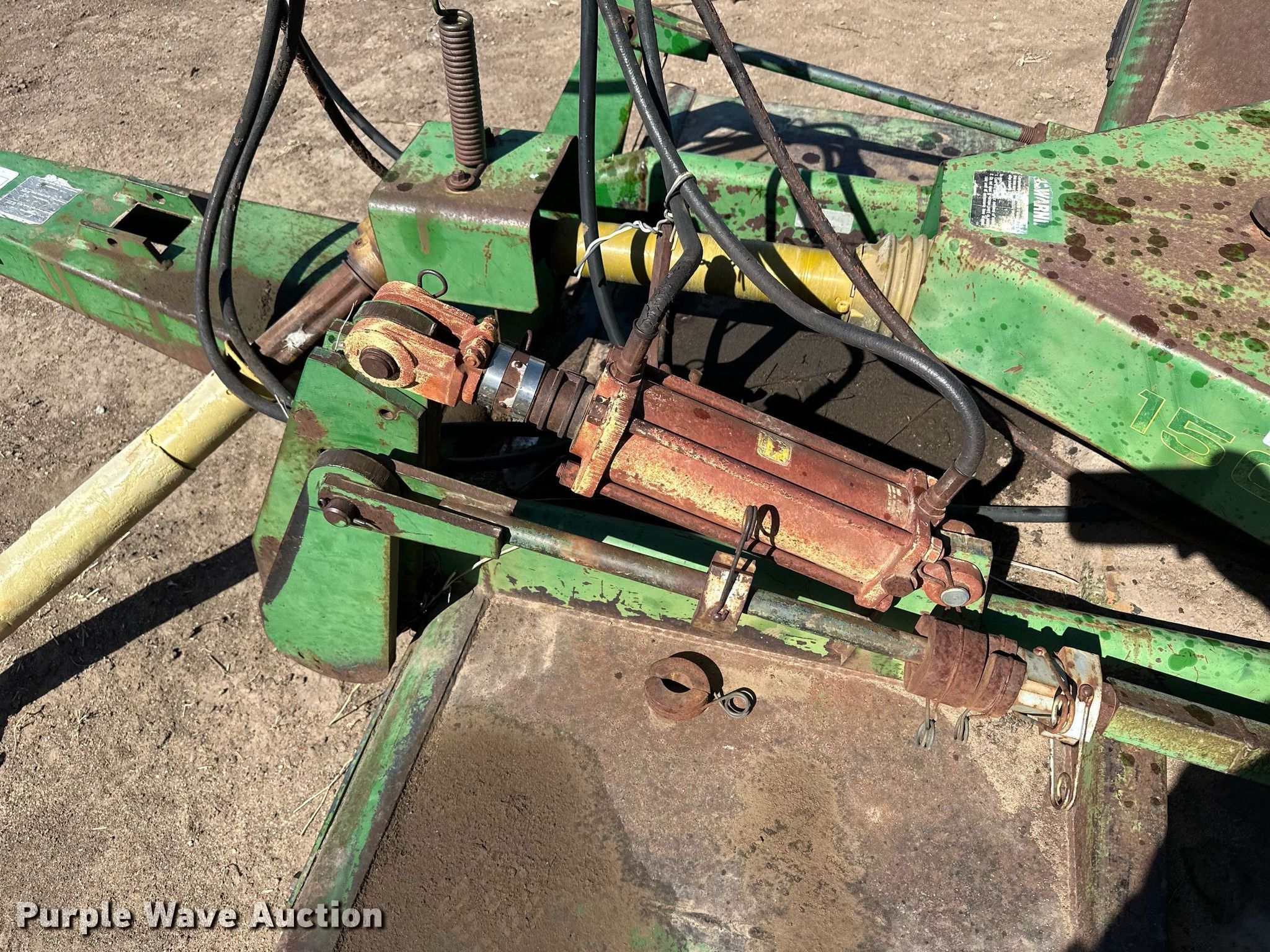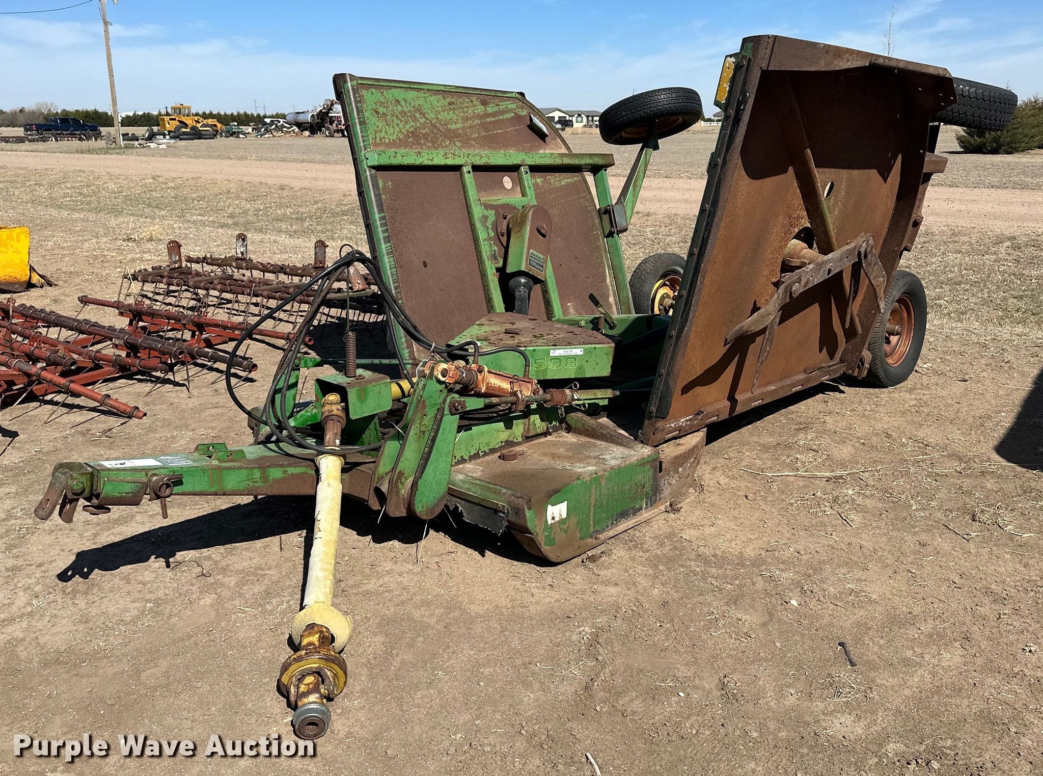 John Deere 1508 batwing rotary mower. Features. Width: 15', Hydraulic lift, Hydraulic fold, PTO: 1000. Tires Size: 235/75R15. 1587 Cottonwood. Sublette, KS 67877