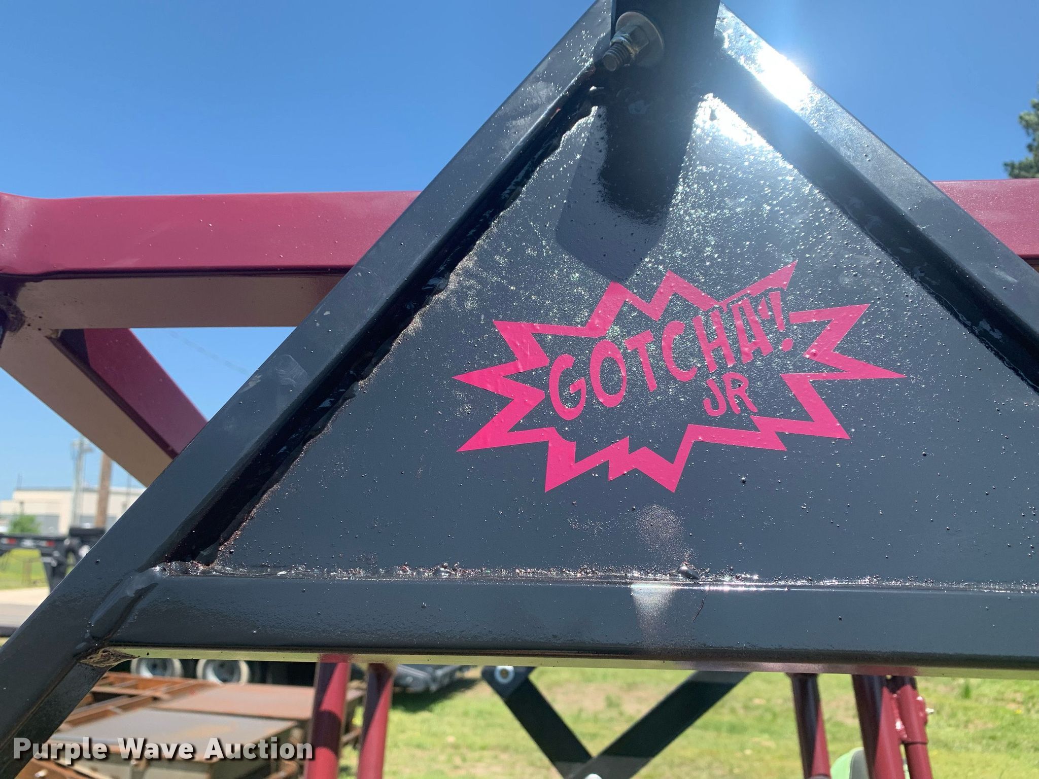 2023 WM Welding catch chute. Swing release gate: 28", Overall depth: 44", (4) stake anchor pins, Unused. WM Welding & Manufacturing, LLC. 205 Industrial Avenue. Idabel, OK 74745