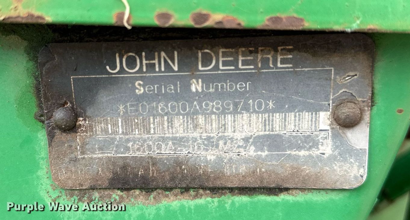 Purple Wave is selling a used Windrower Pull Type in Oklahoma. This item is a 1997 John Deere 1600A swather / windrower with the following: Hours: Unknown, Serial: E01600A989710