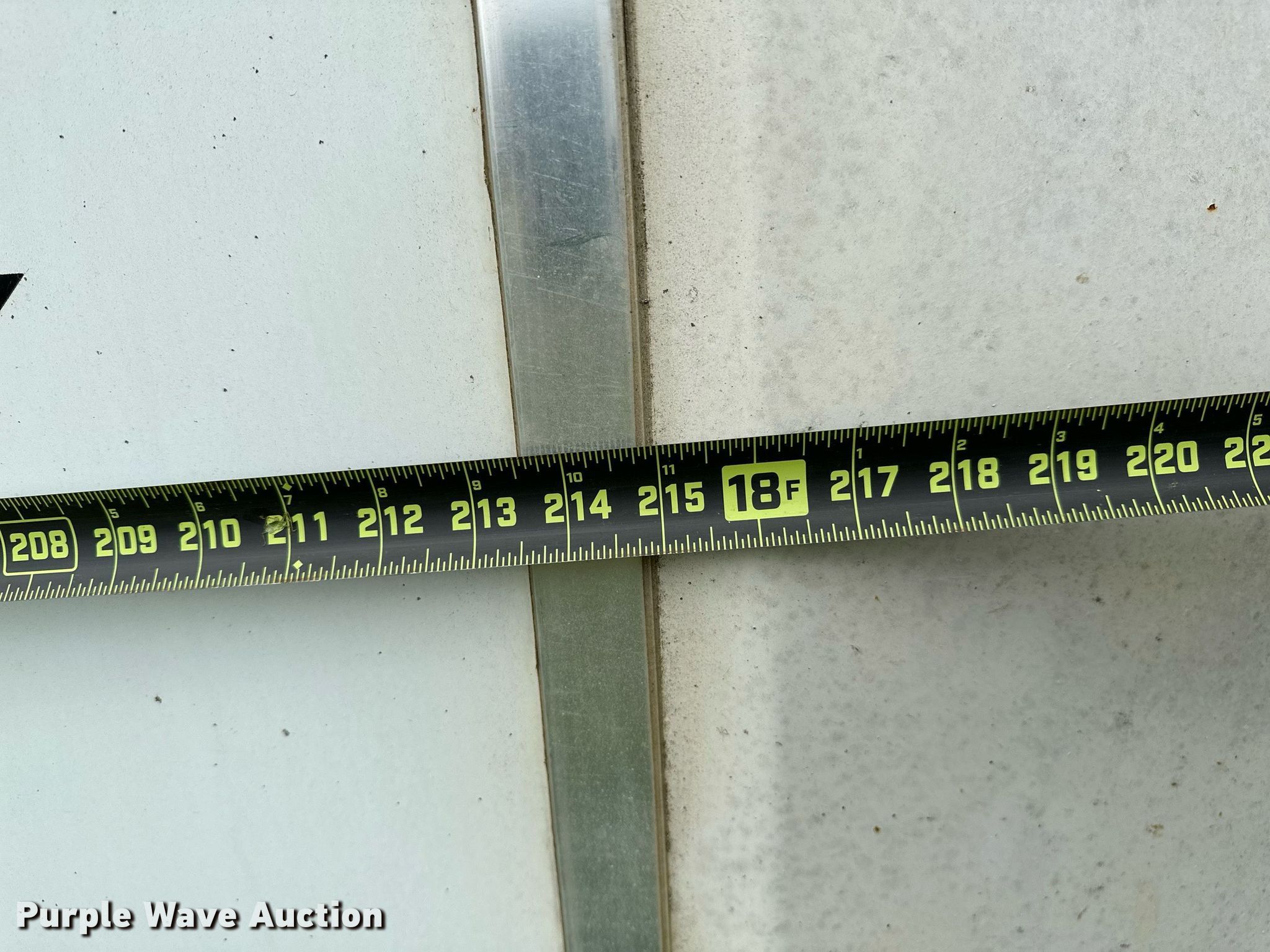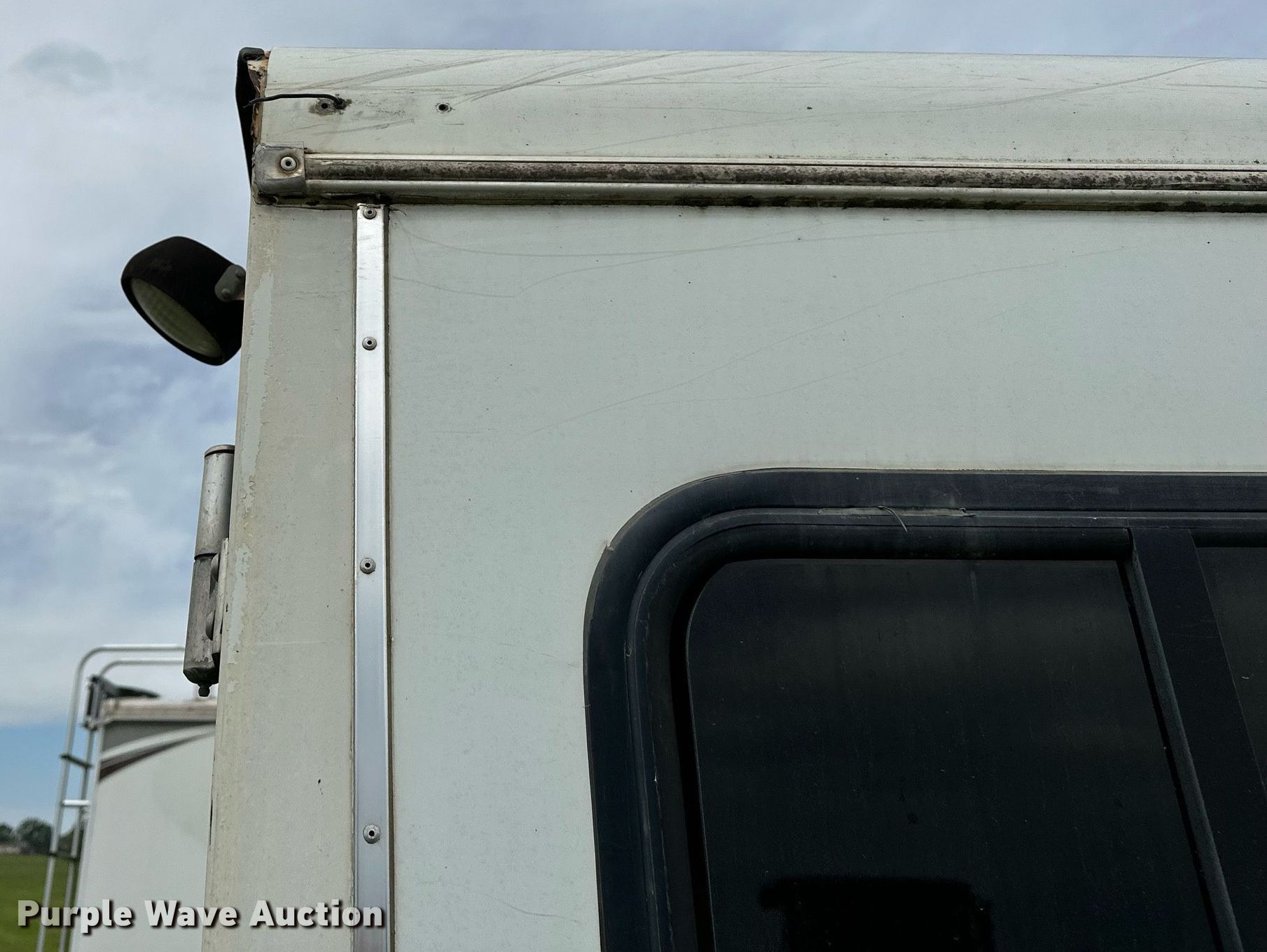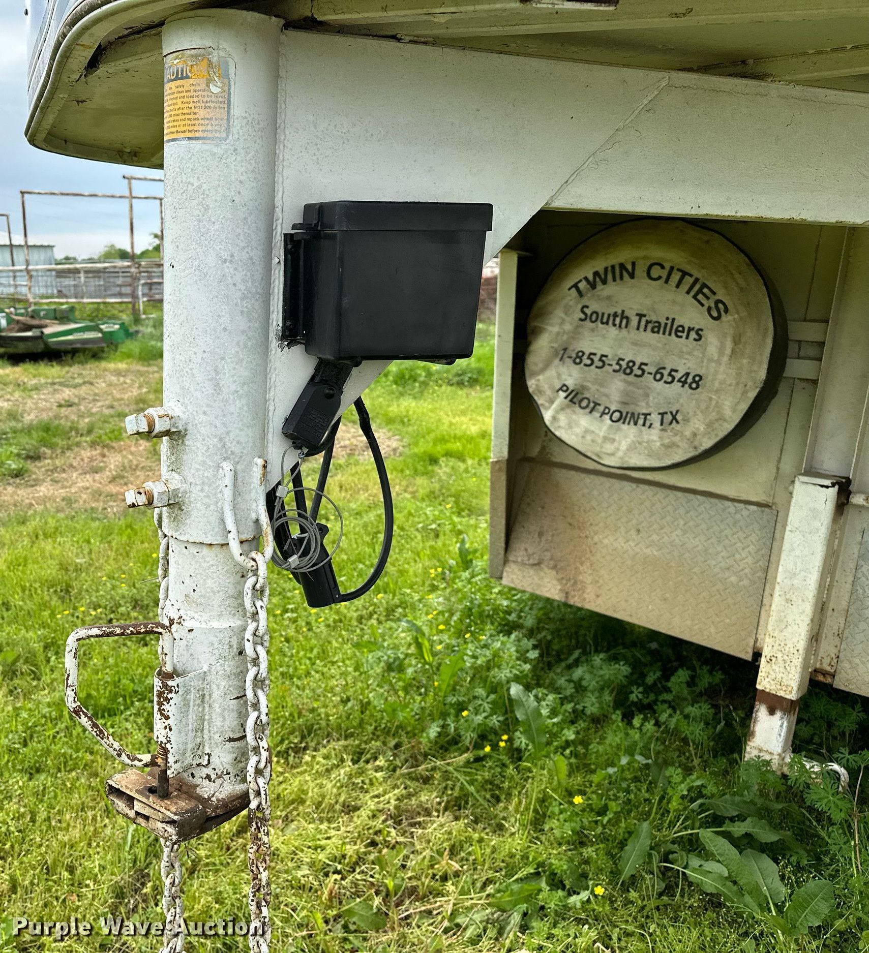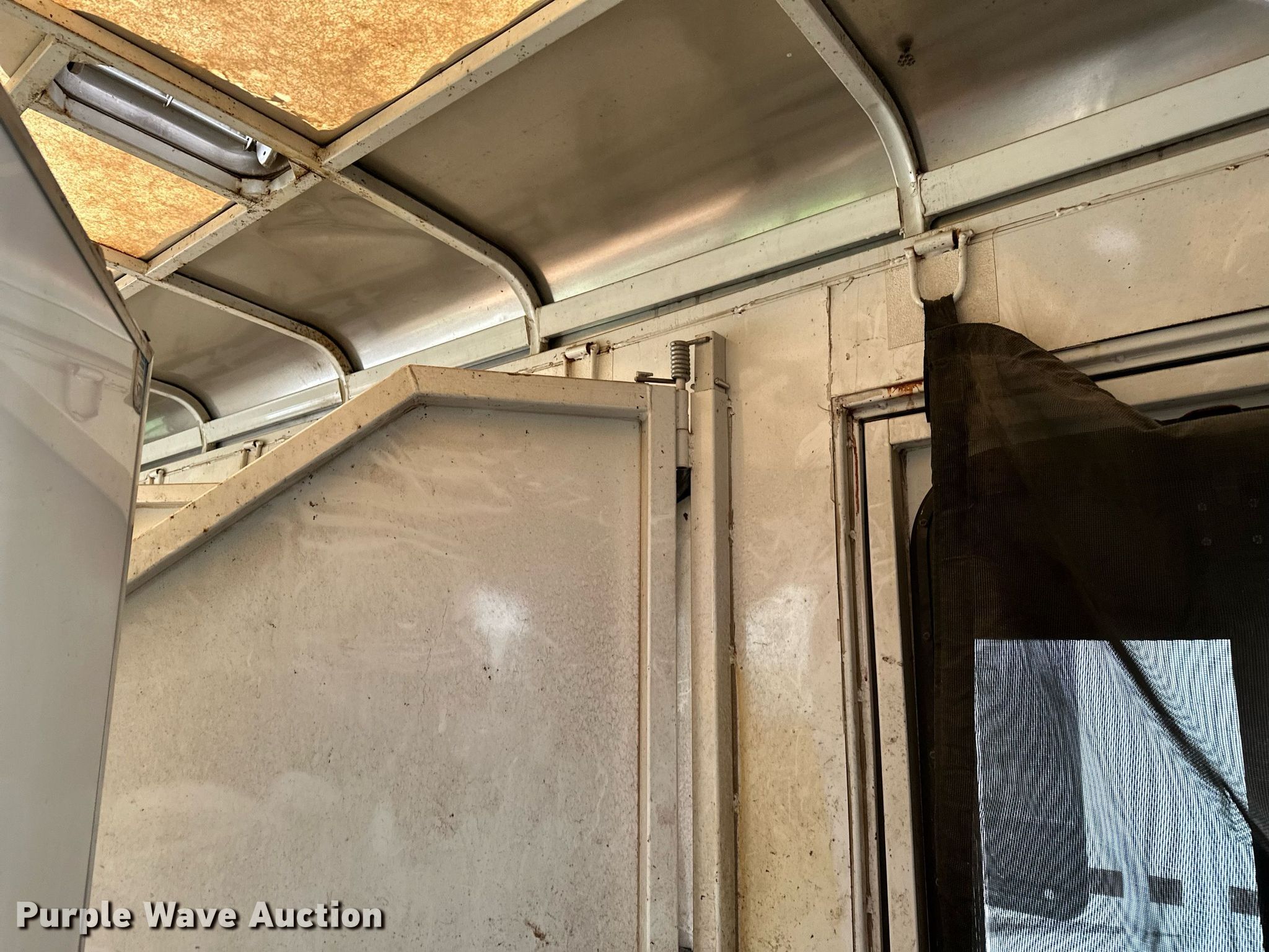 2003 Bison AlumaSport livestock trailer. VIN: 43B68182231005498. Dimensions Overall: 25' 6" L x 102" W, Body: 18' L x 80" W, Side height: 7' 6". Features Horse capacity: 3, Center gates: 2, Rubber floor mat. Chassis Hitch: Gooseneck, Landing gear: Single, Suspension: Spring, Brakes: Electric, Axles: Tandem. Tires Steel wheels, Size: 225/75R15. Notes Contents included. Transfer of ownership documentation will be a bill of sale. Firstar Bank. 458129 East 1080 Road. Sallisaw, OK 74955