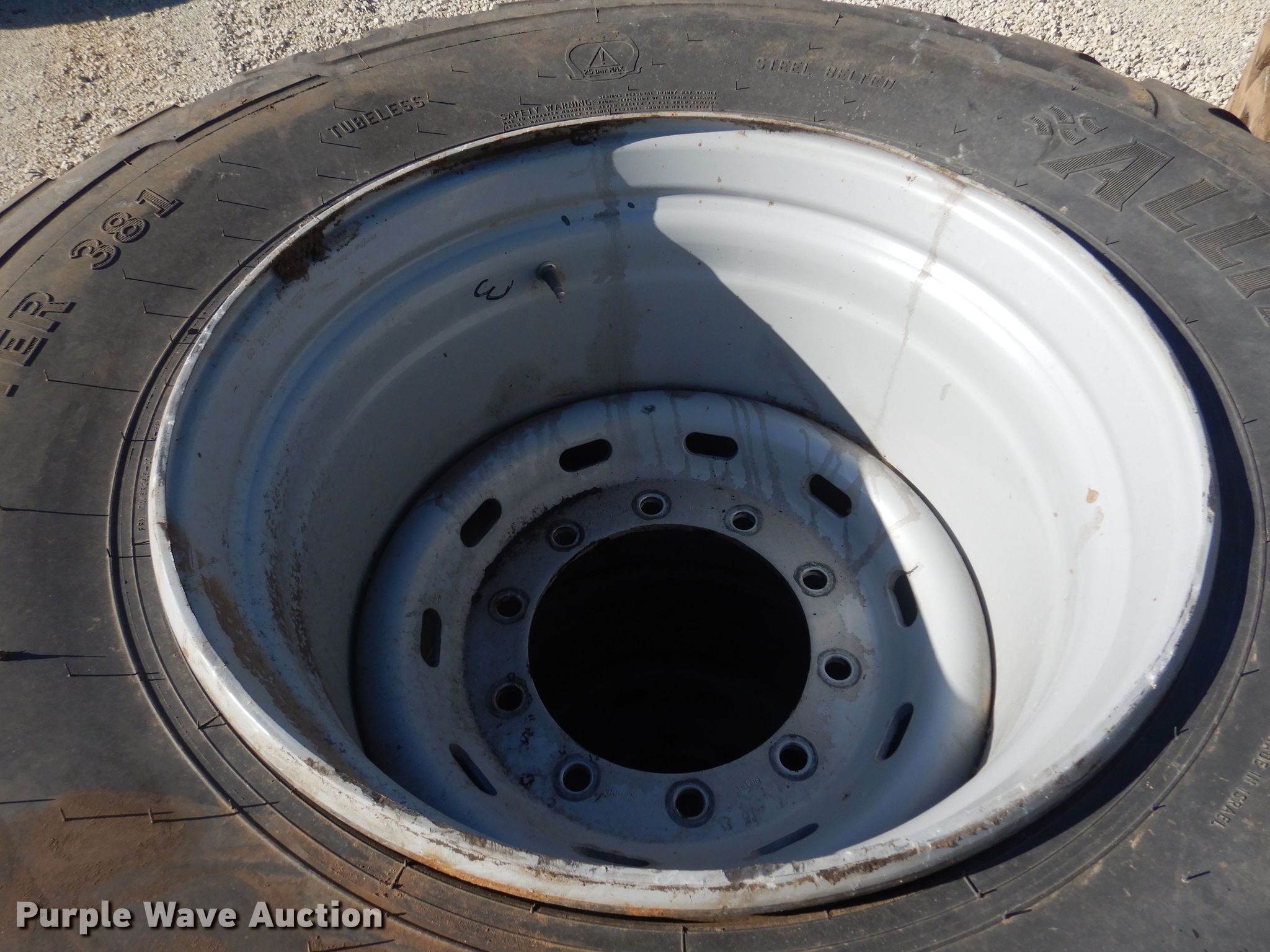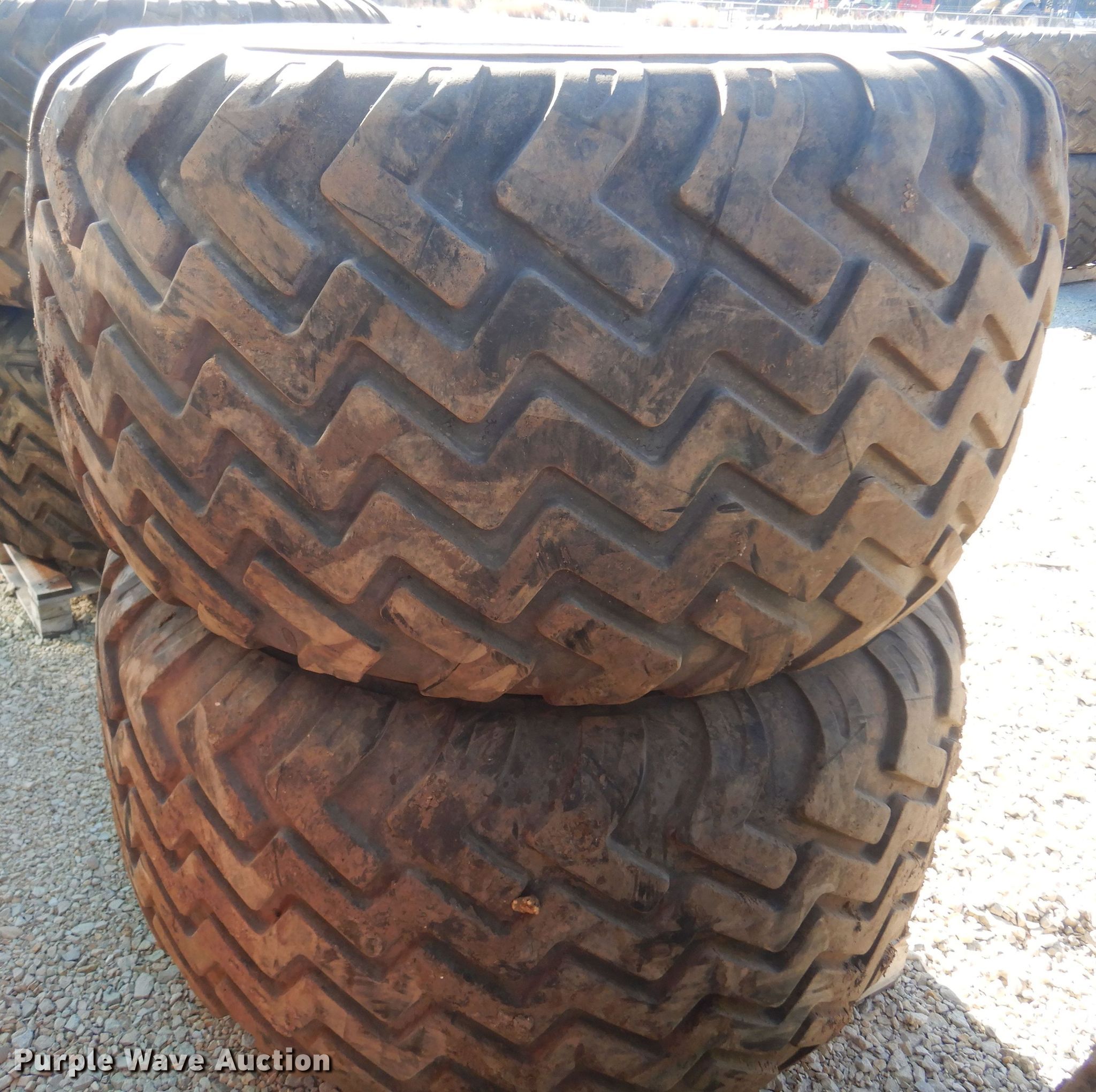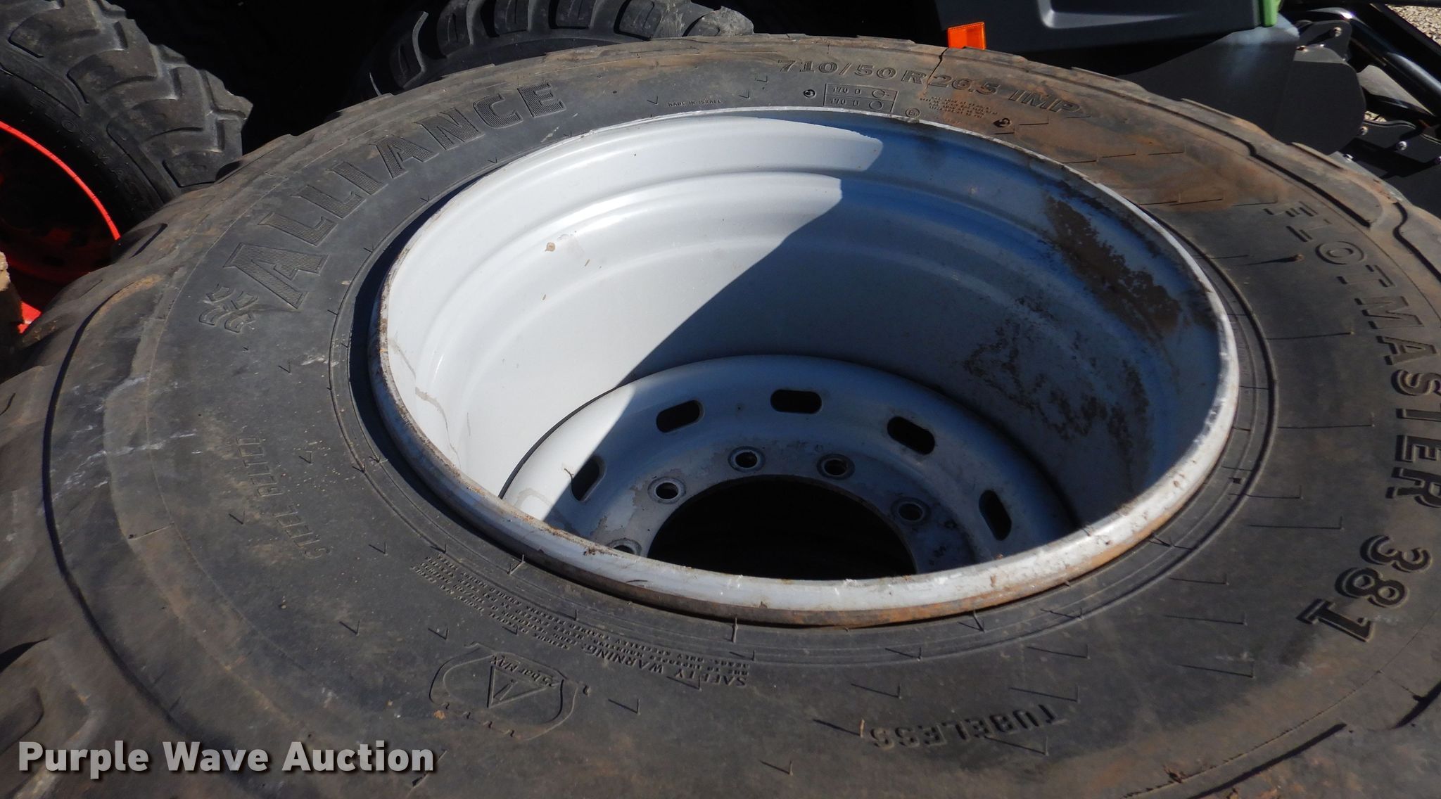 Purple Wave is selling a used Industrial Tires or Tracks in Kansas. This item is a (2) Alliance 710/50R26.5 tires and wheels with the following: 11" pilot hole, 10 bolt wheels