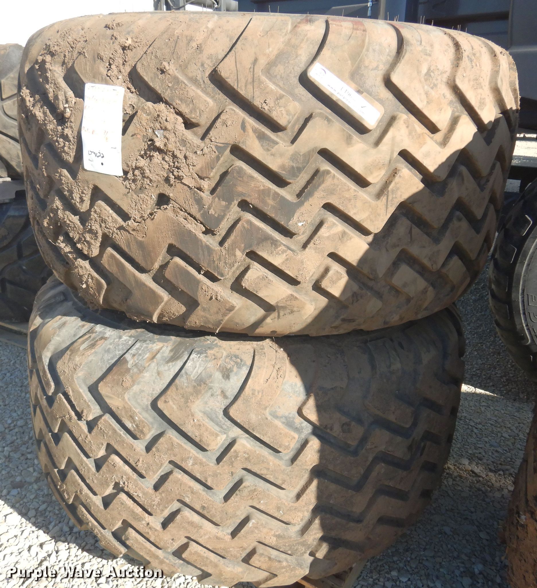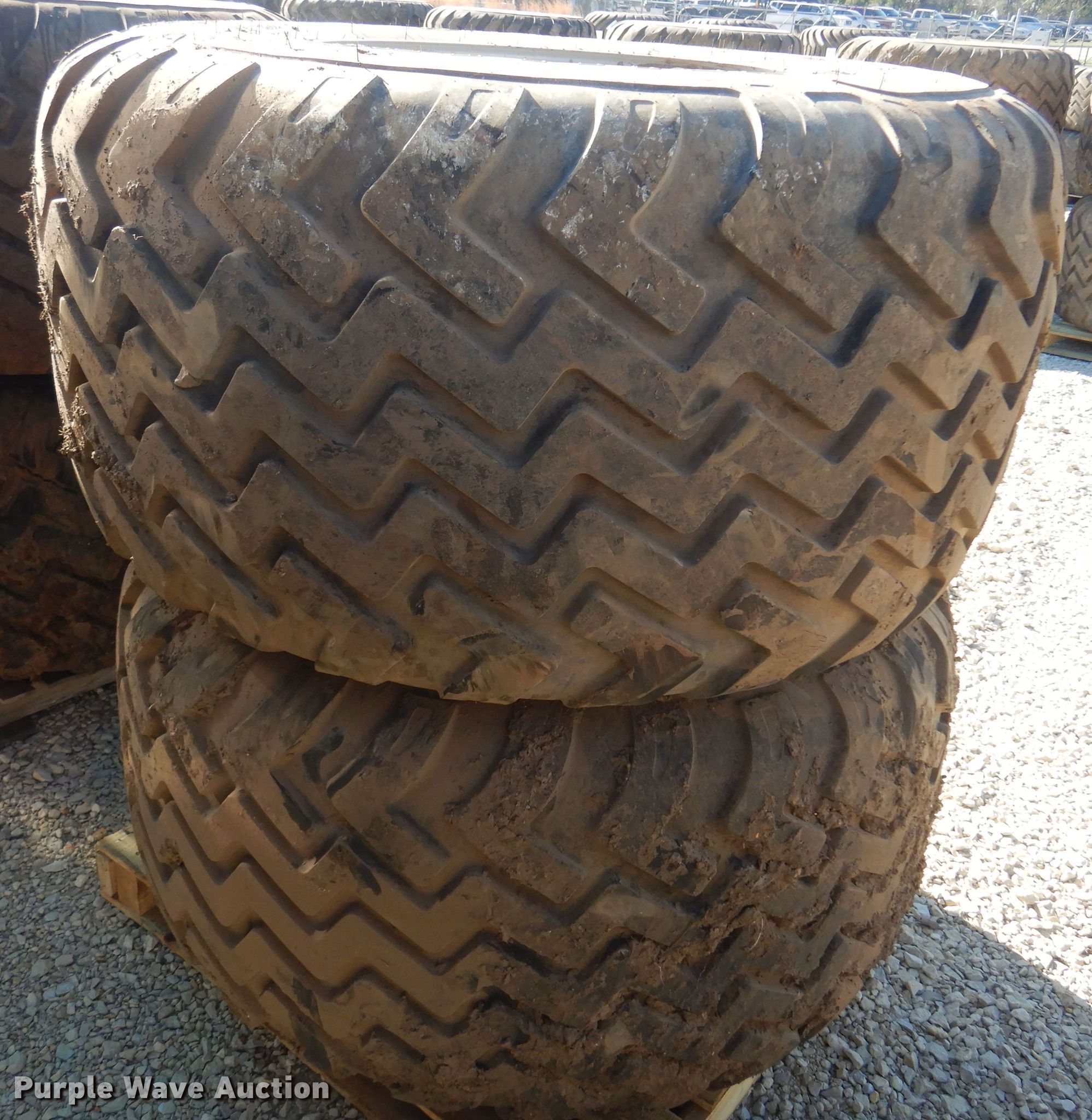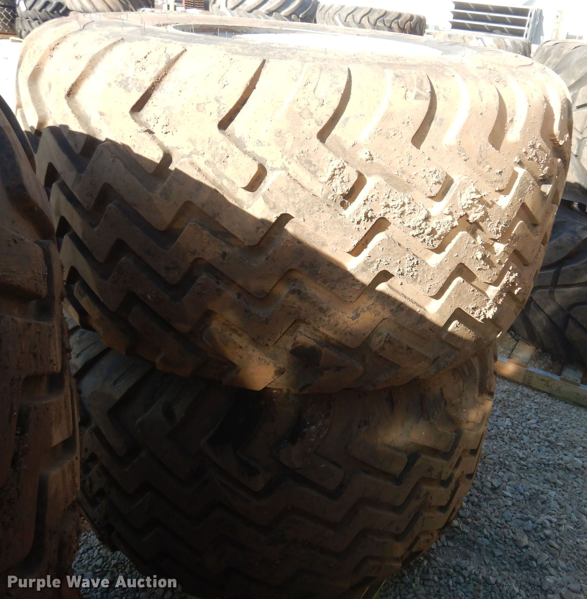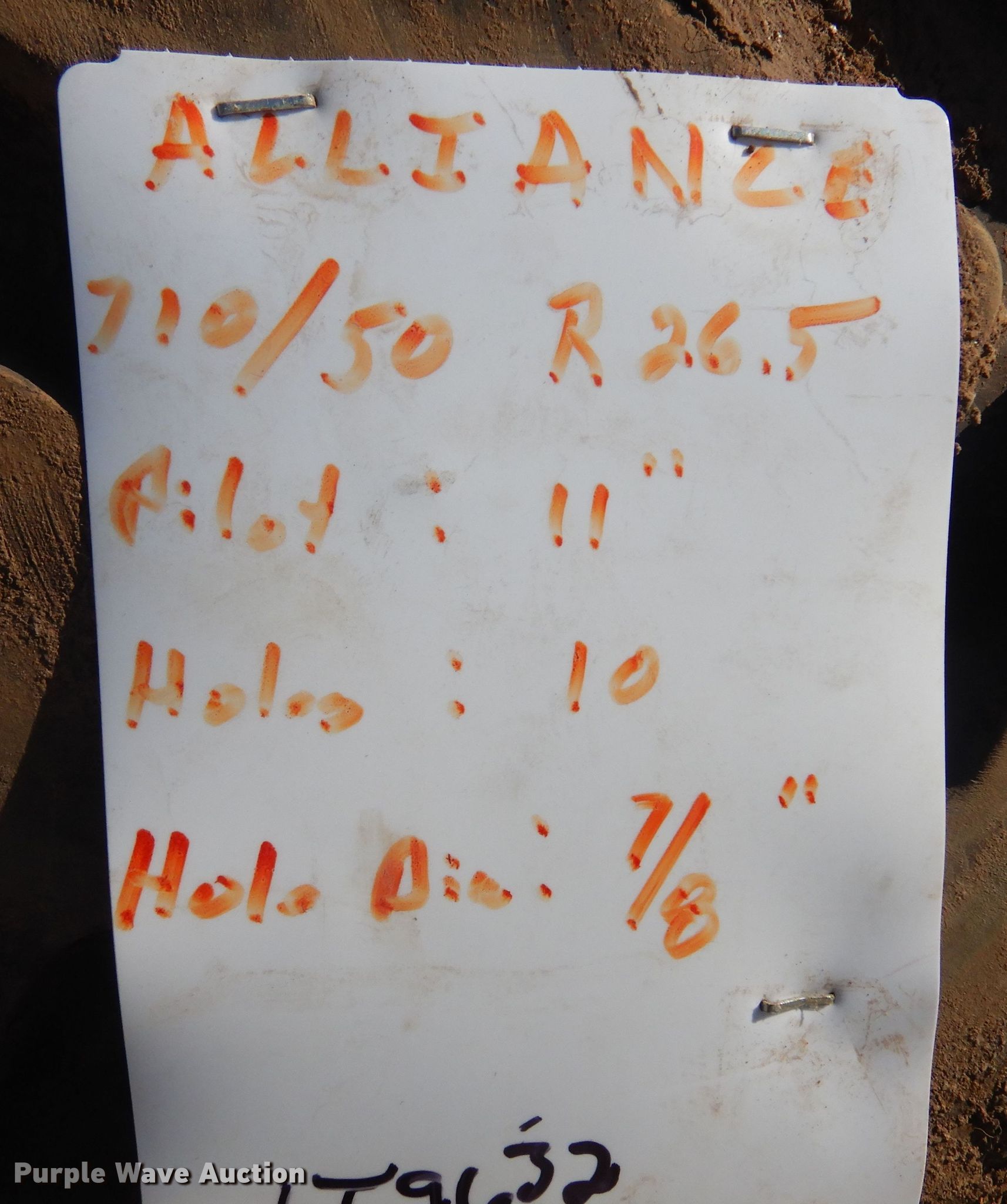 Purple Wave is selling a used Industrial Tires or Tracks in Kansas. This item is a (2) Alliance 710/50R26.5 tires and wheels with the following: 11" pilot hole, 10 bolt wheels