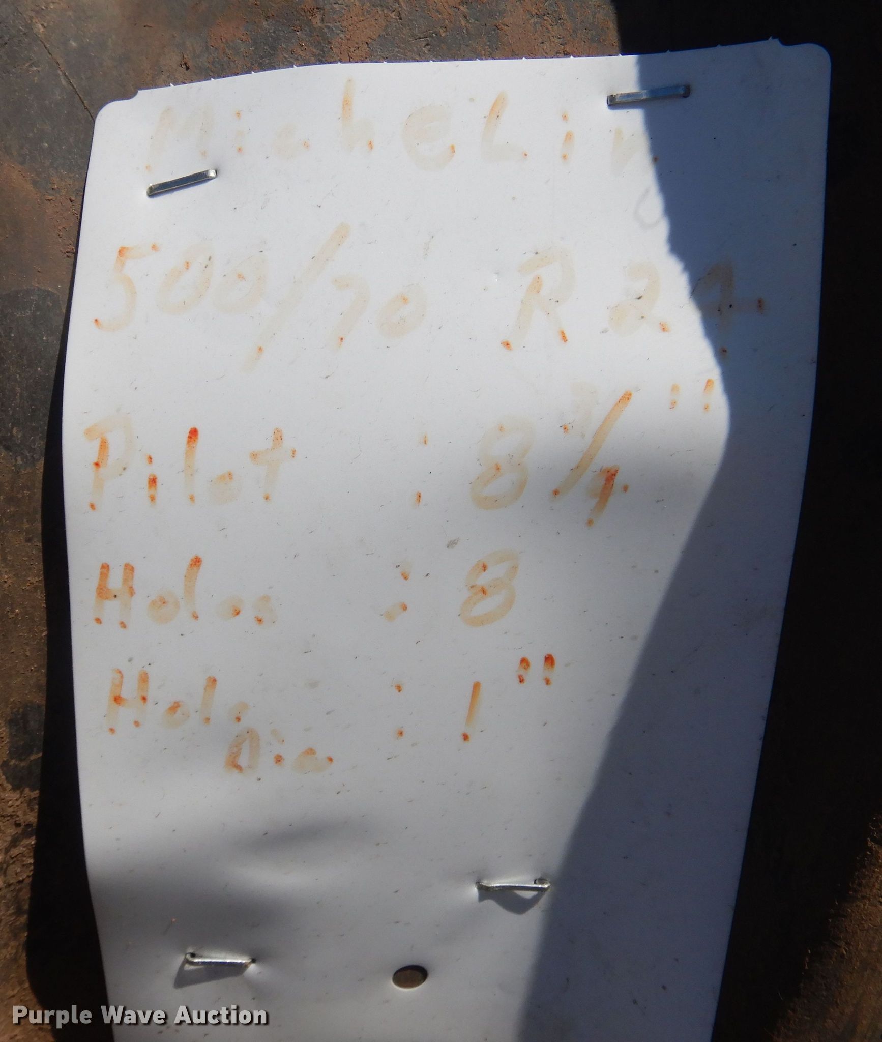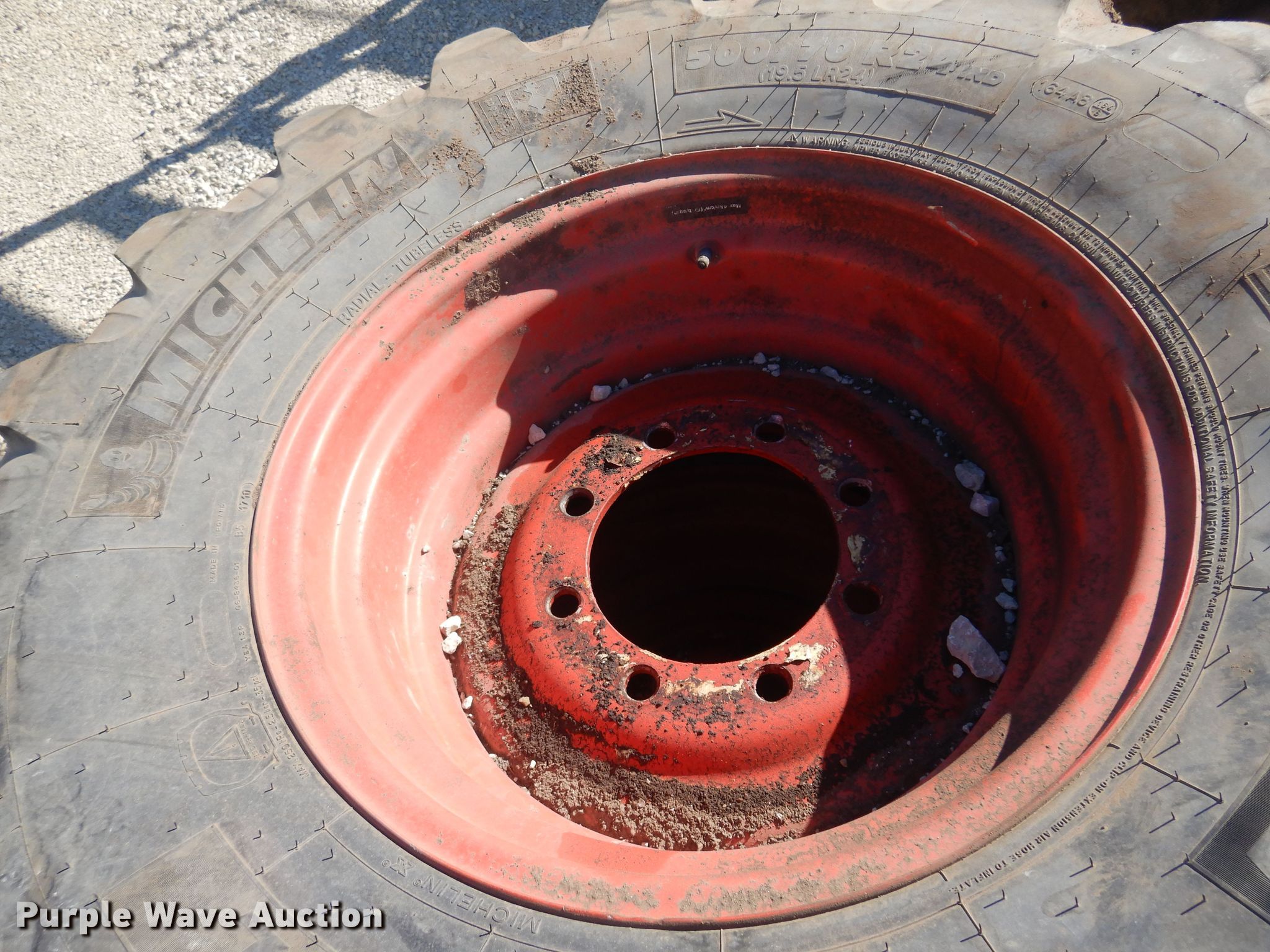 (2) Michelin 500/R70R24 tires and wheels. 8 3/4" pilot hole, 8 bolt wheels. AGCO Corp. 420 W Lincoln Blvd. Hesston, KS 67062