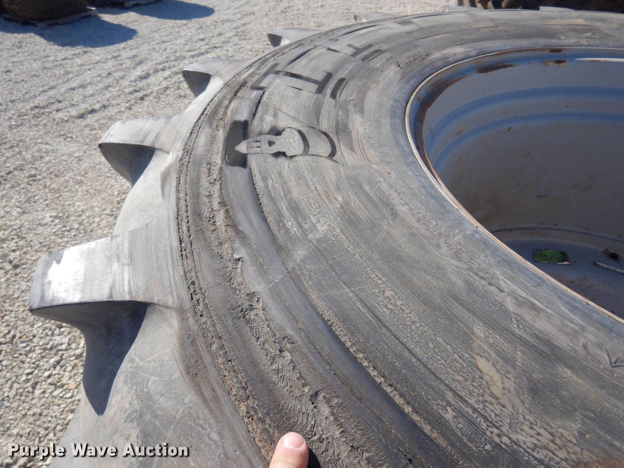Purple Wave is selling a used Industrial Tires or Tracks in Kansas. This item is a (2) Michelin 800/70R38 tires and wheels with the following: 11" pilot hole, 10 bolt wheels, Sidewalls damaged