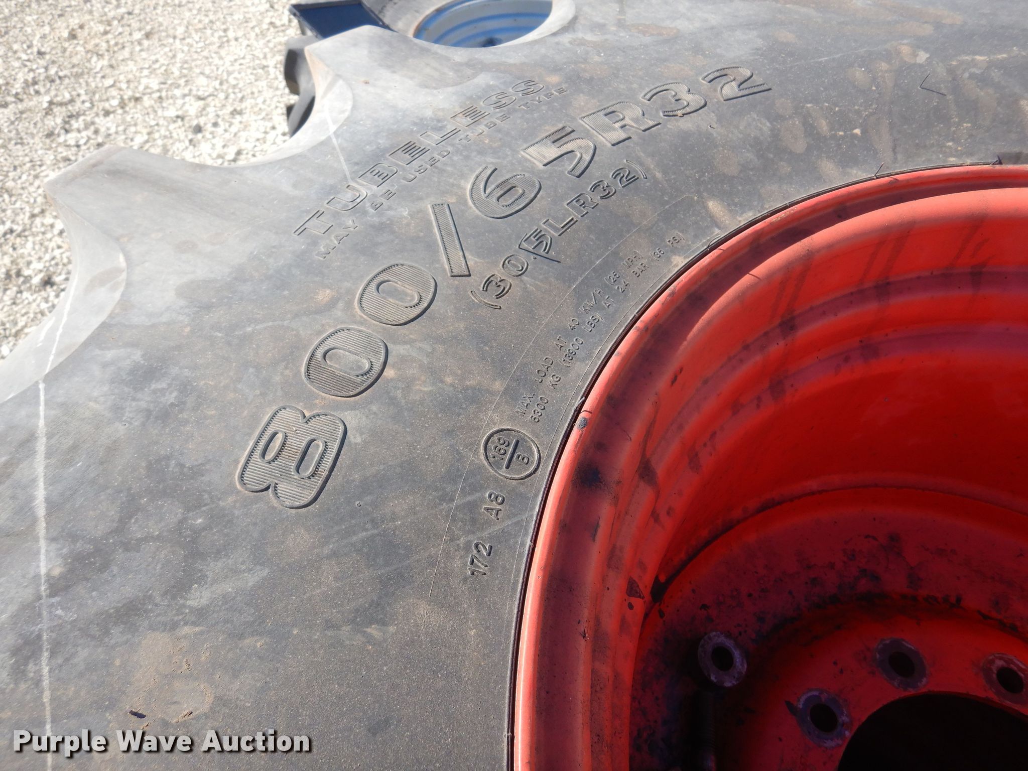 (2) Goodyear 800/65R32 tires and wheels. 11" pilot hole, 10 bolt wheels. AGCO Corp. 420 W Lincoln Blvd. Hesston, KS 67062
