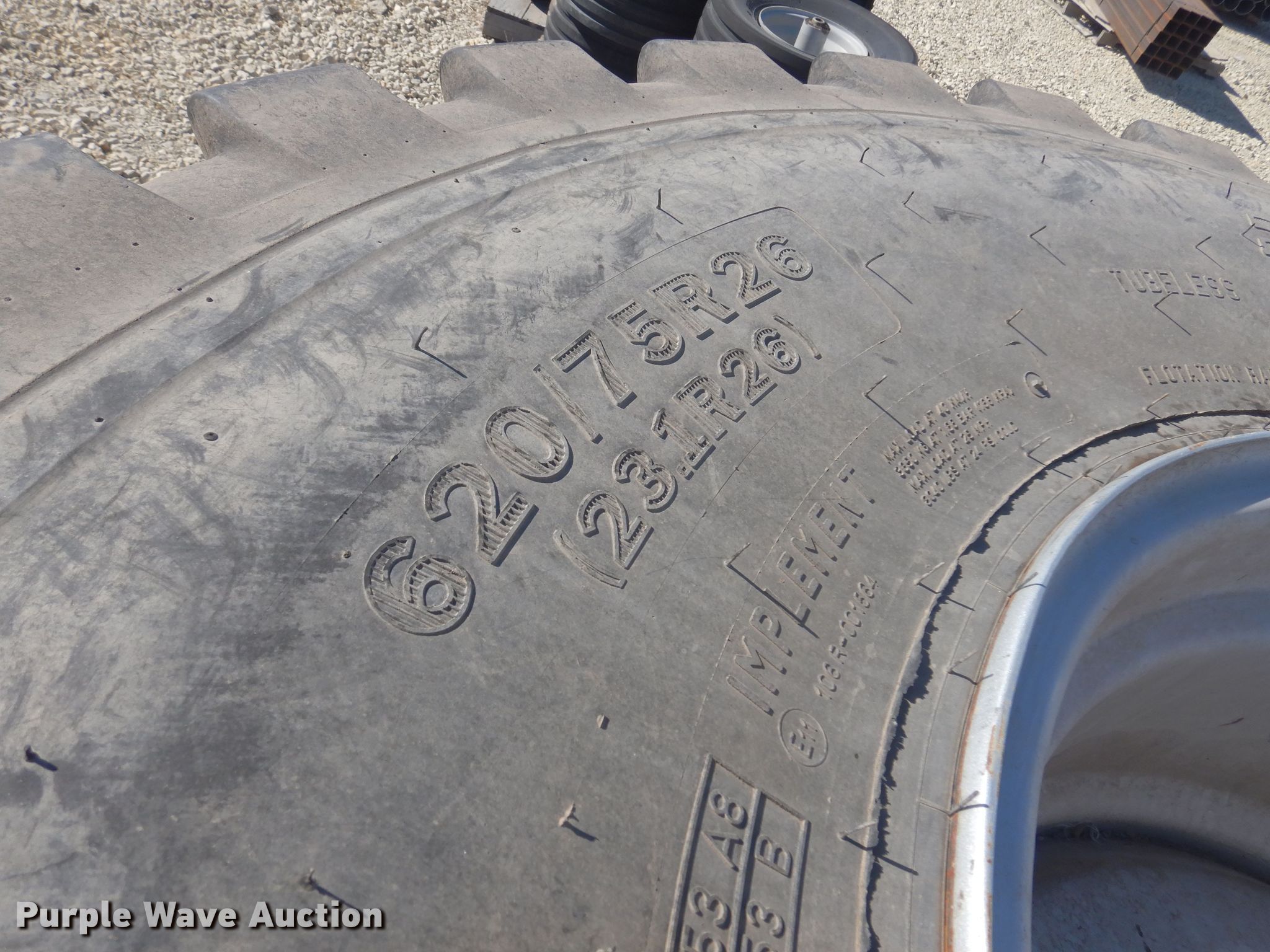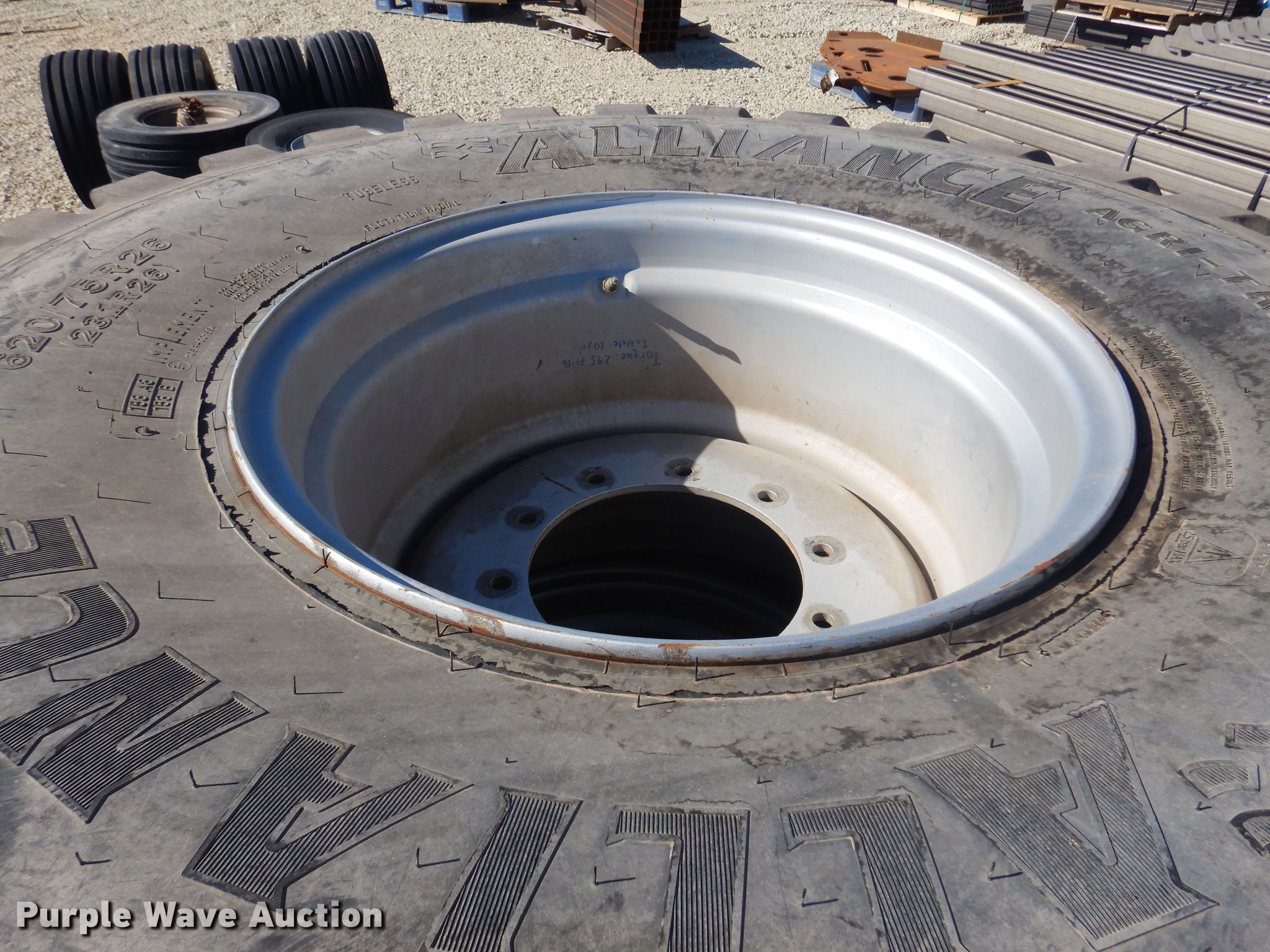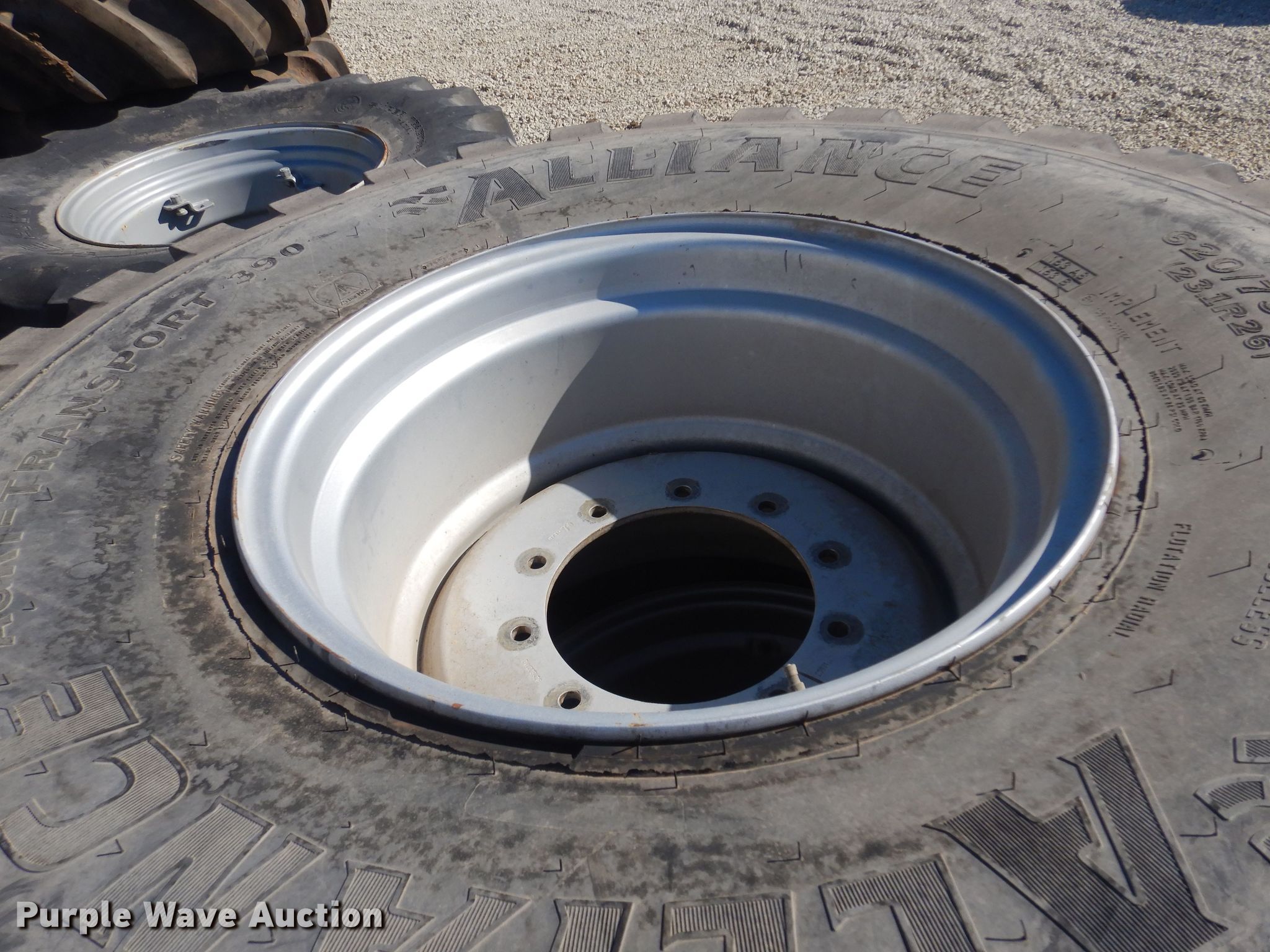 Purple Wave is selling a used Industrial Tires or Tracks in Kansas. This item is a (2) Alliance 620/75R26 tires and wheels with the following: 11" pilot hole, 10 bolt wheels