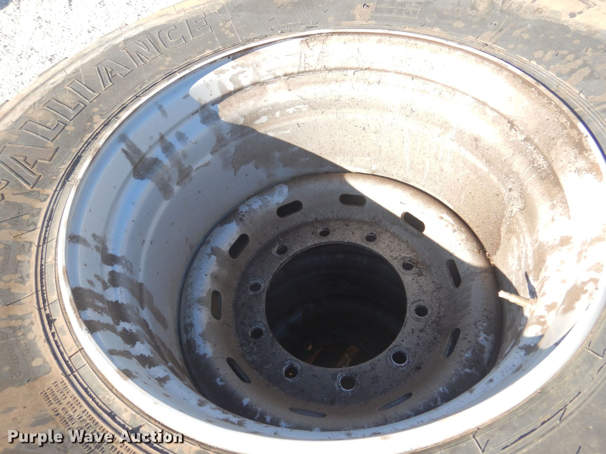 Purple Wave is selling a used Industrial Tires or Tracks in Kansas. This item is a (2) Alliance 710/50R26.5 tires and wheels with the following: 11" pilot hole, 10 bolt wheels