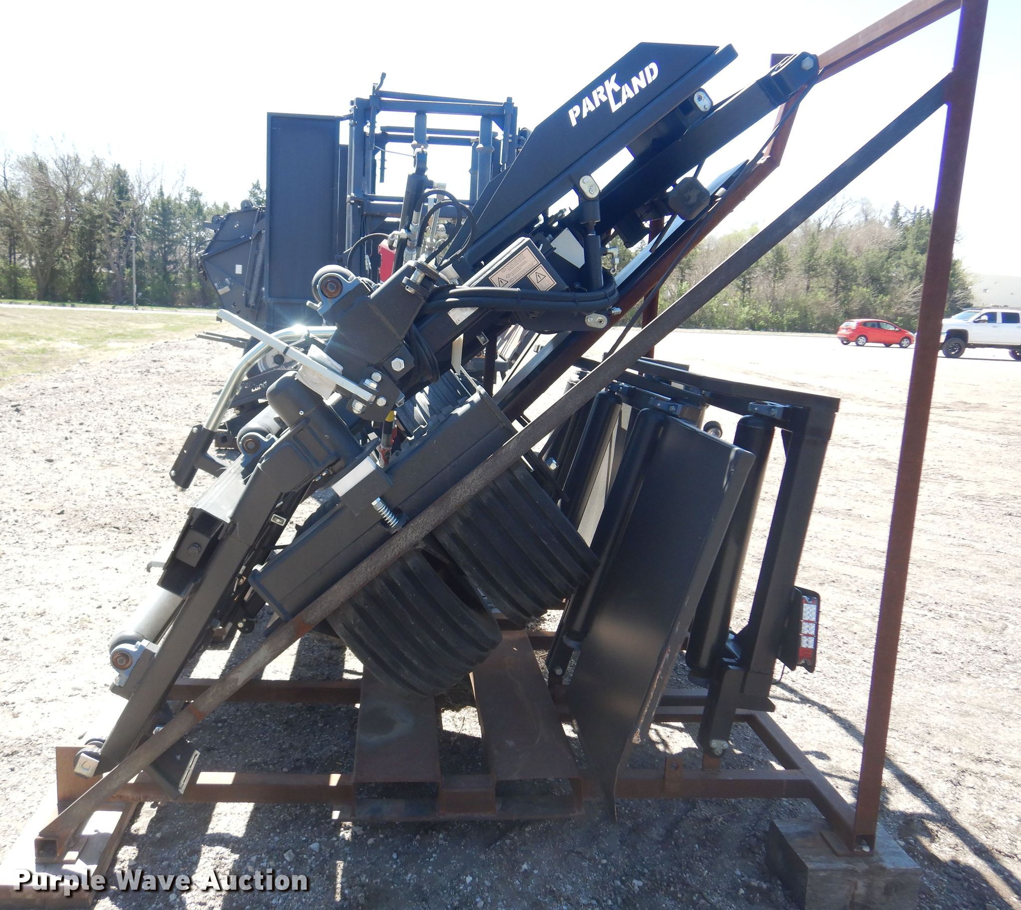Purple Wave is selling a used Hay Handling in Kansas. This item is a Parkland 453 hay bale accumulator with the following: Capacity: Three bales, 3' x 4' and 4' x 4' bale capacity