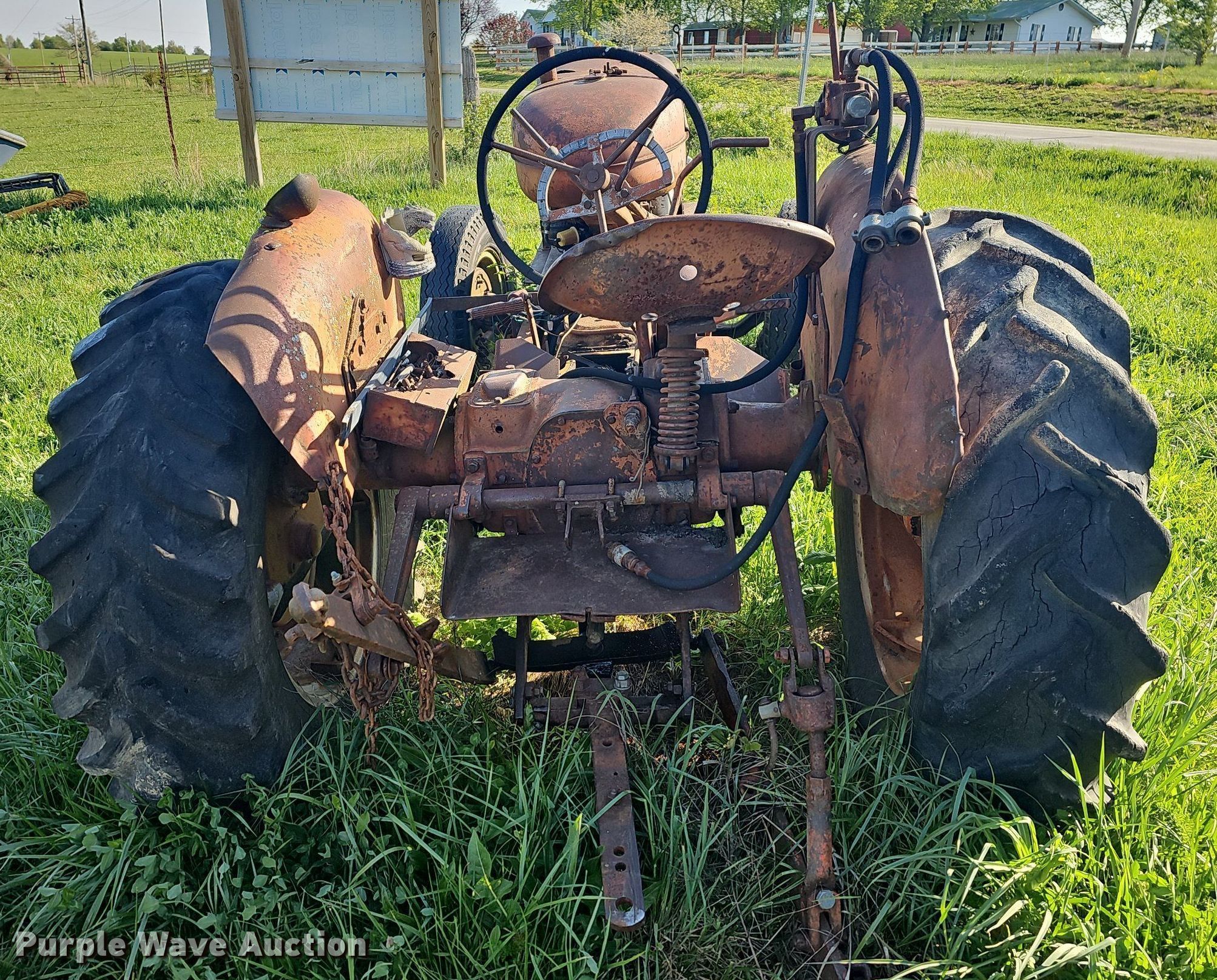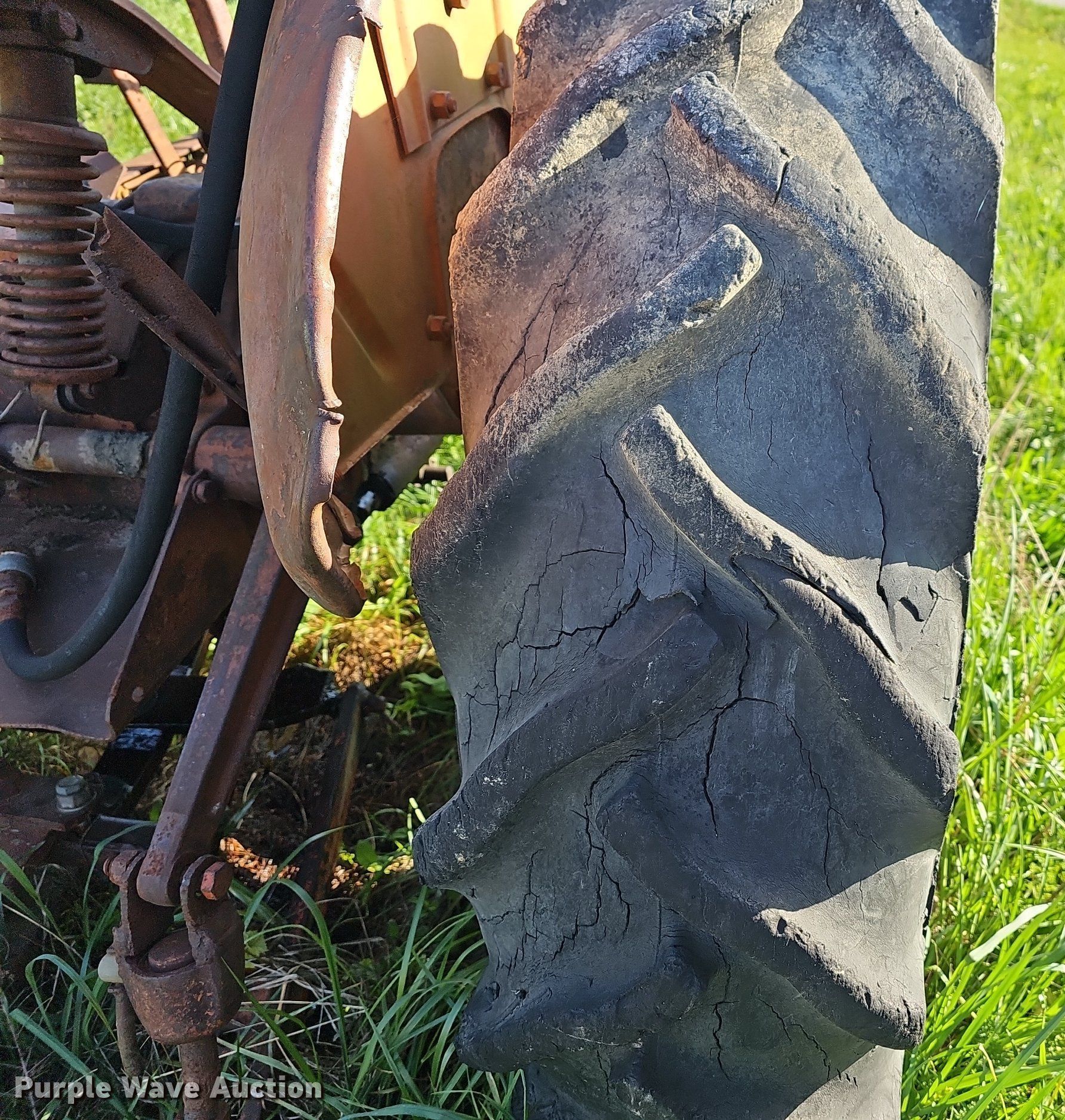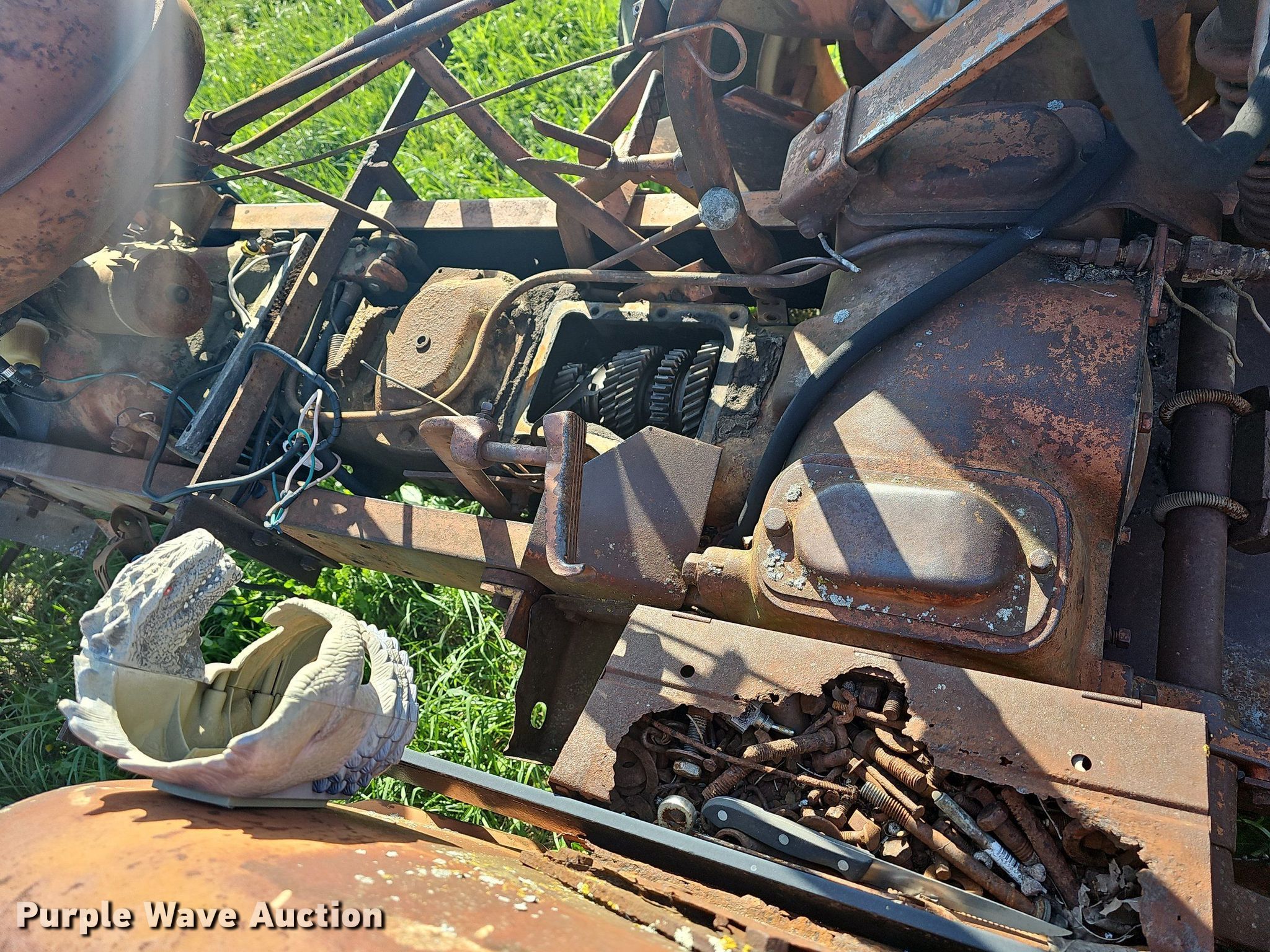 Allis Chalmers tractor. Serial: 3019-40. Engine Cylinders: 4, Fuel type: Gas. Transmission Manual. Features PTO: 540, Three point, Hydraulic remote sets Rear: 1. Tires Front: 8.25-20, Rear: 14.9-28. Notes Non-operational unit. 1484 State Highway Bb. Seymour, MO 65746