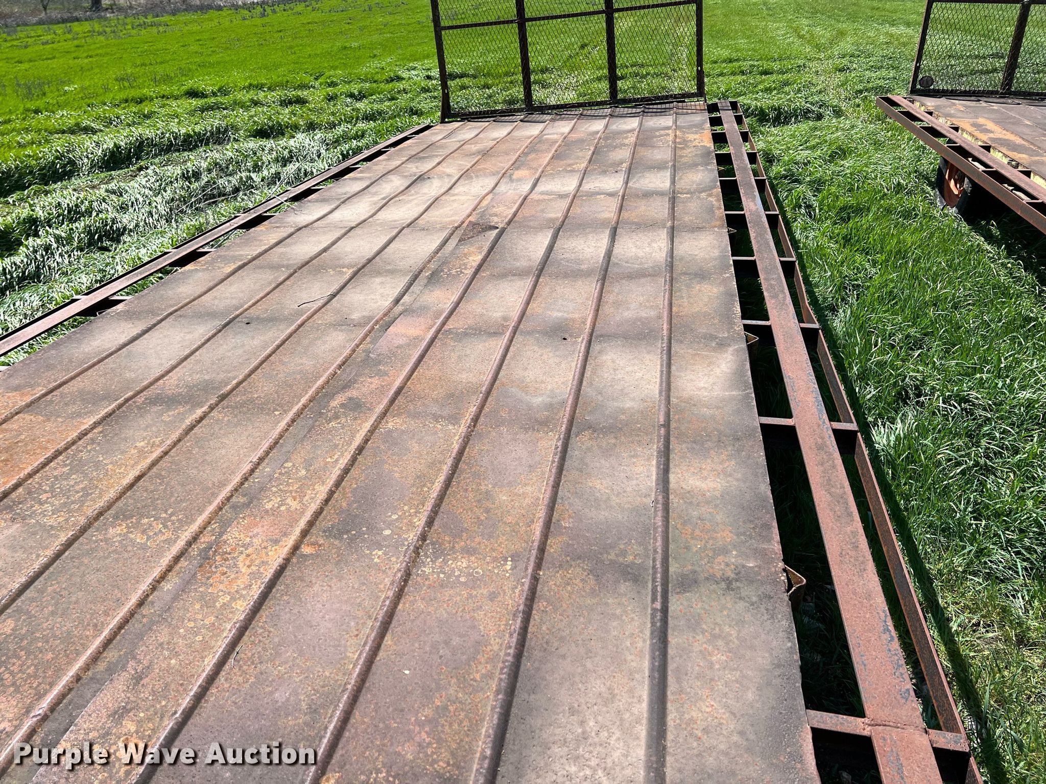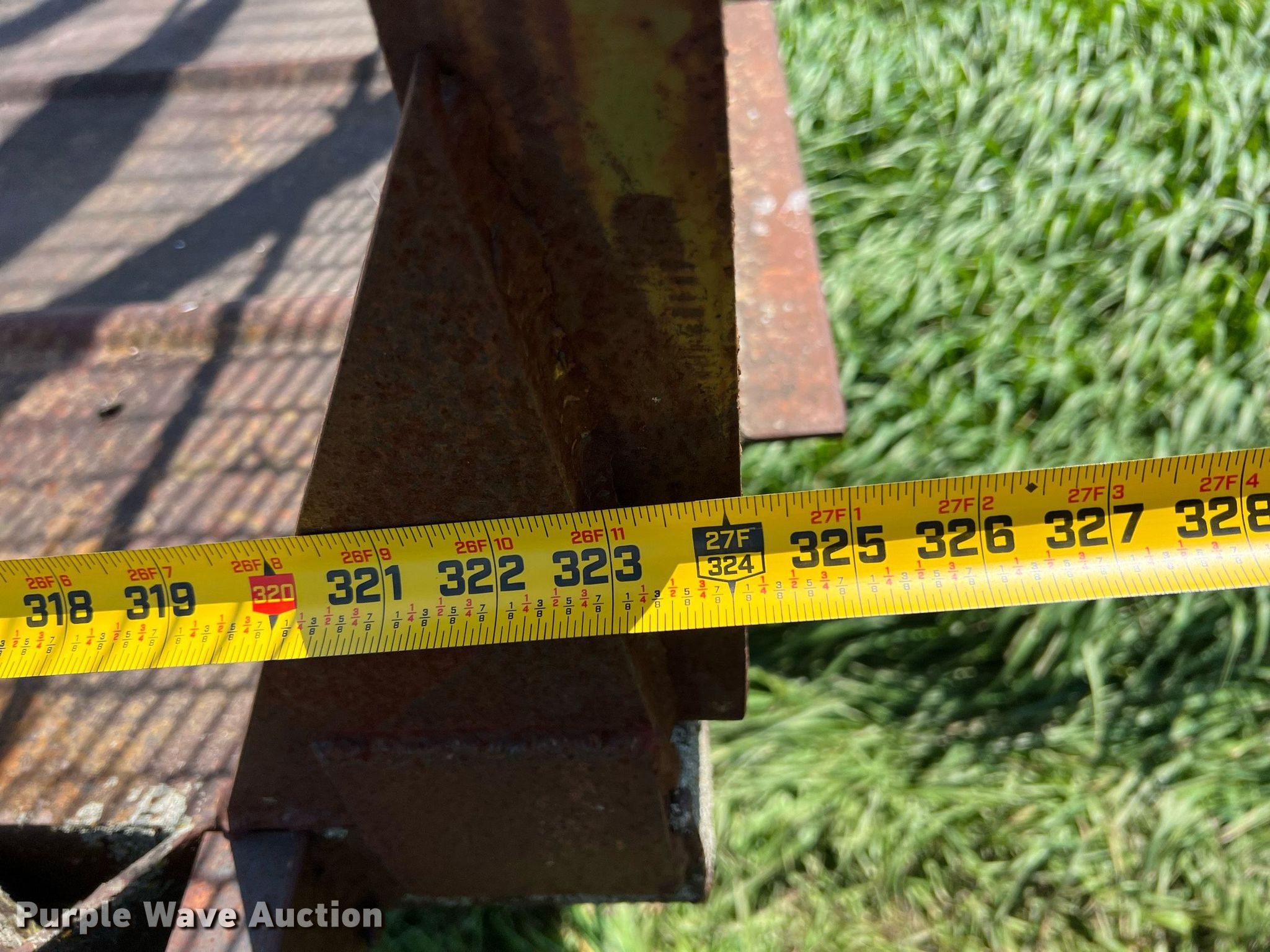 Purple Wave is selling a used Hay Handling in Kansas. This item is a Hay trailer with the following: Overall: 27' x 9' W x 2" W, Ramps: Manual, Length: 7'