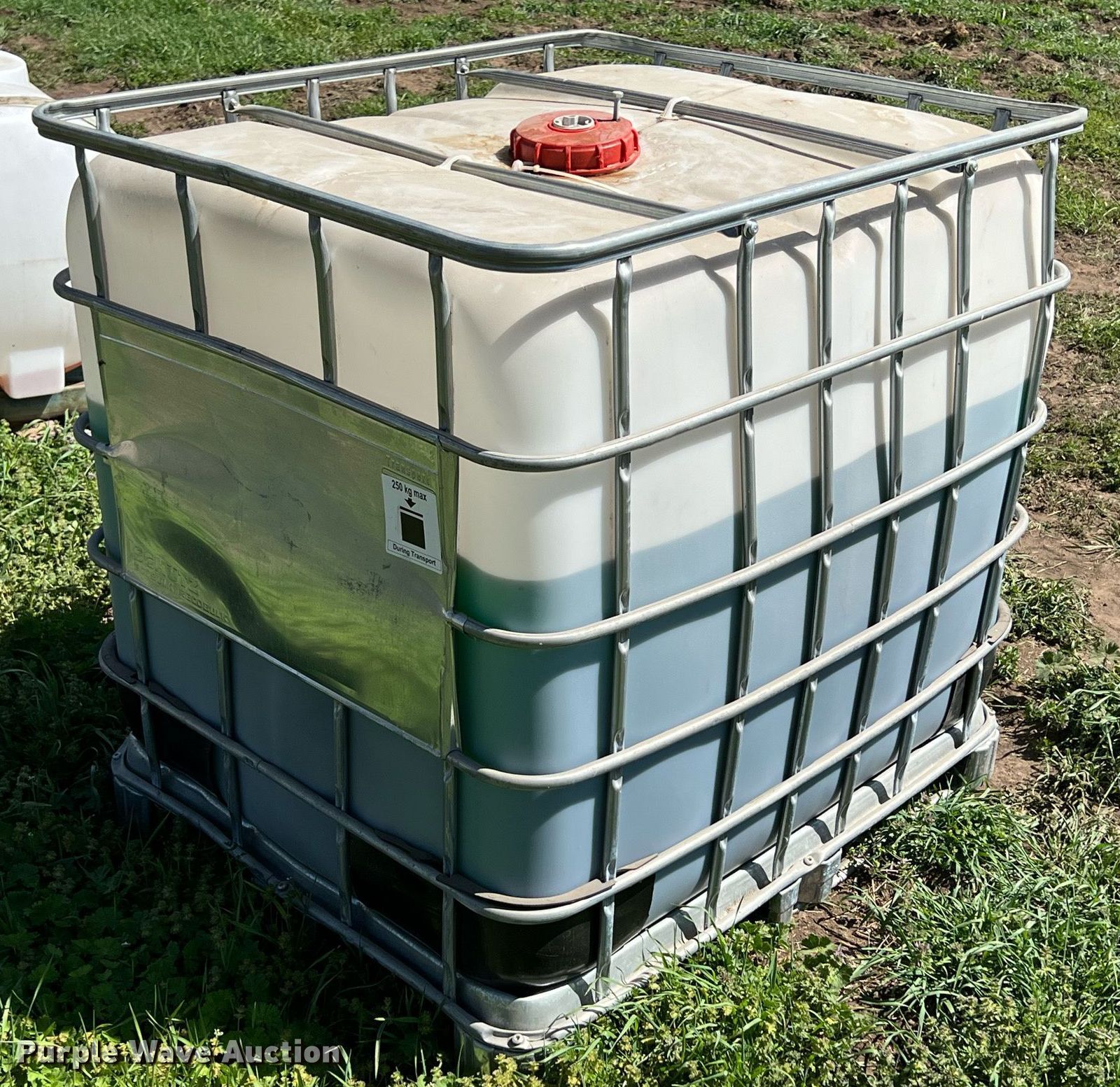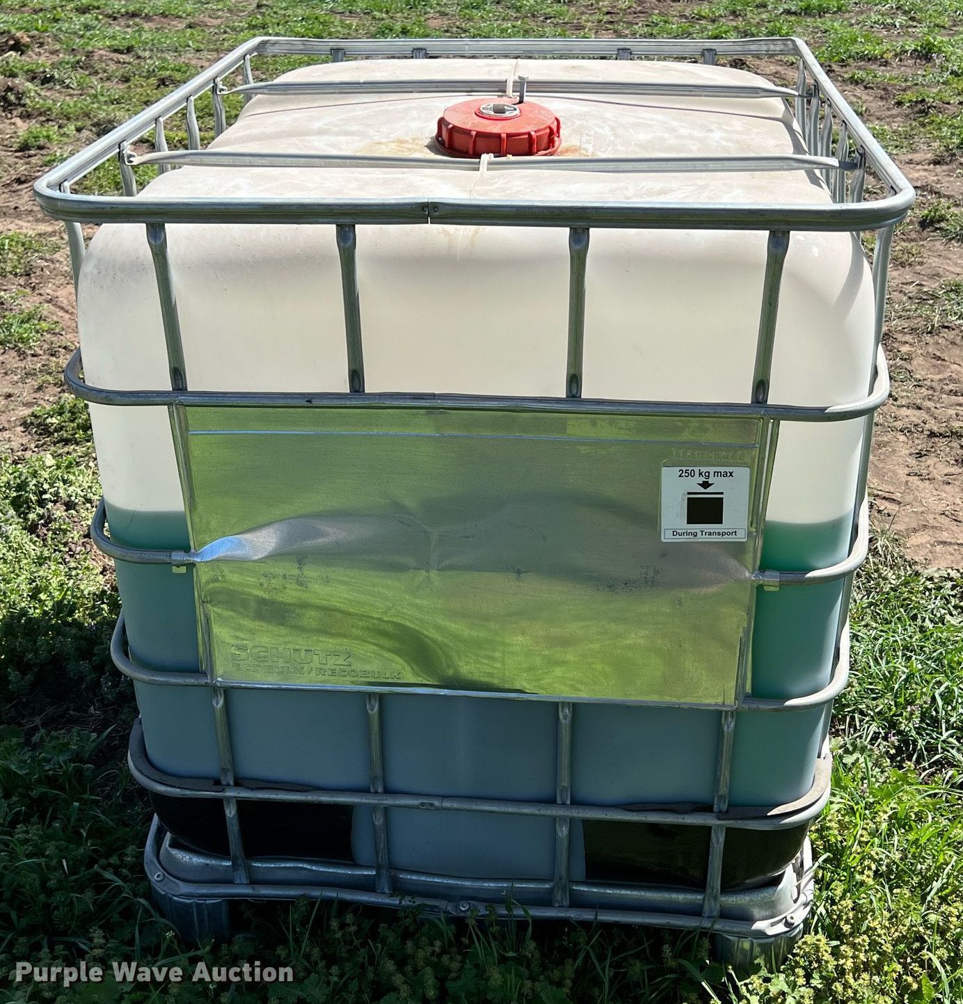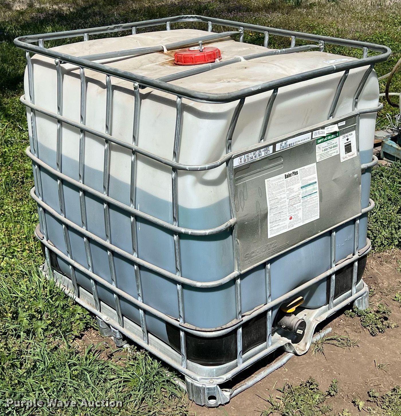 Baler Plus hay bale preserver. Poly tank 1,000 gallon capacity, Top fill. 634 24000 Rd. Dennis, KS 67341