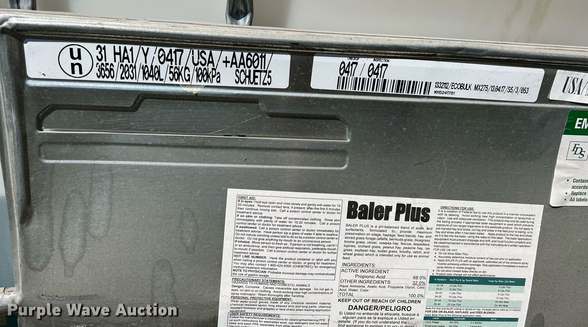 Purple Wave is selling a used Ag Equip. Other in Kansas. This item is a Baler Plus hay bale preserver with the following: Poly tank, 1,000 gallon capacity, Top fill