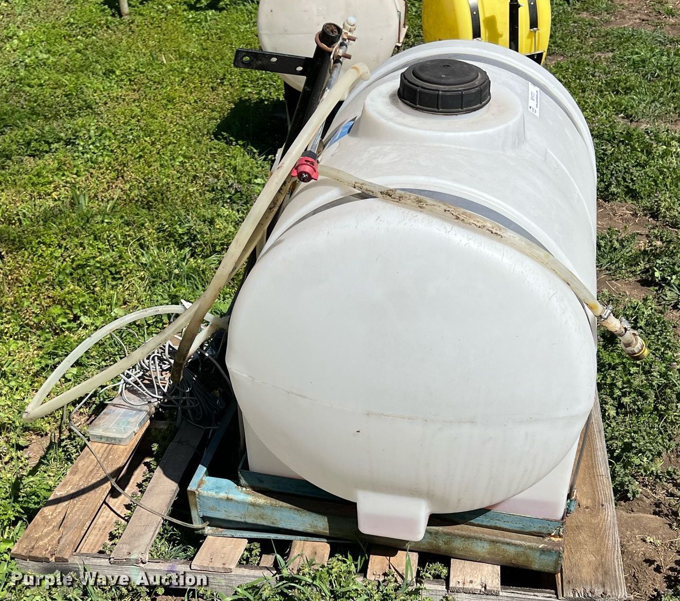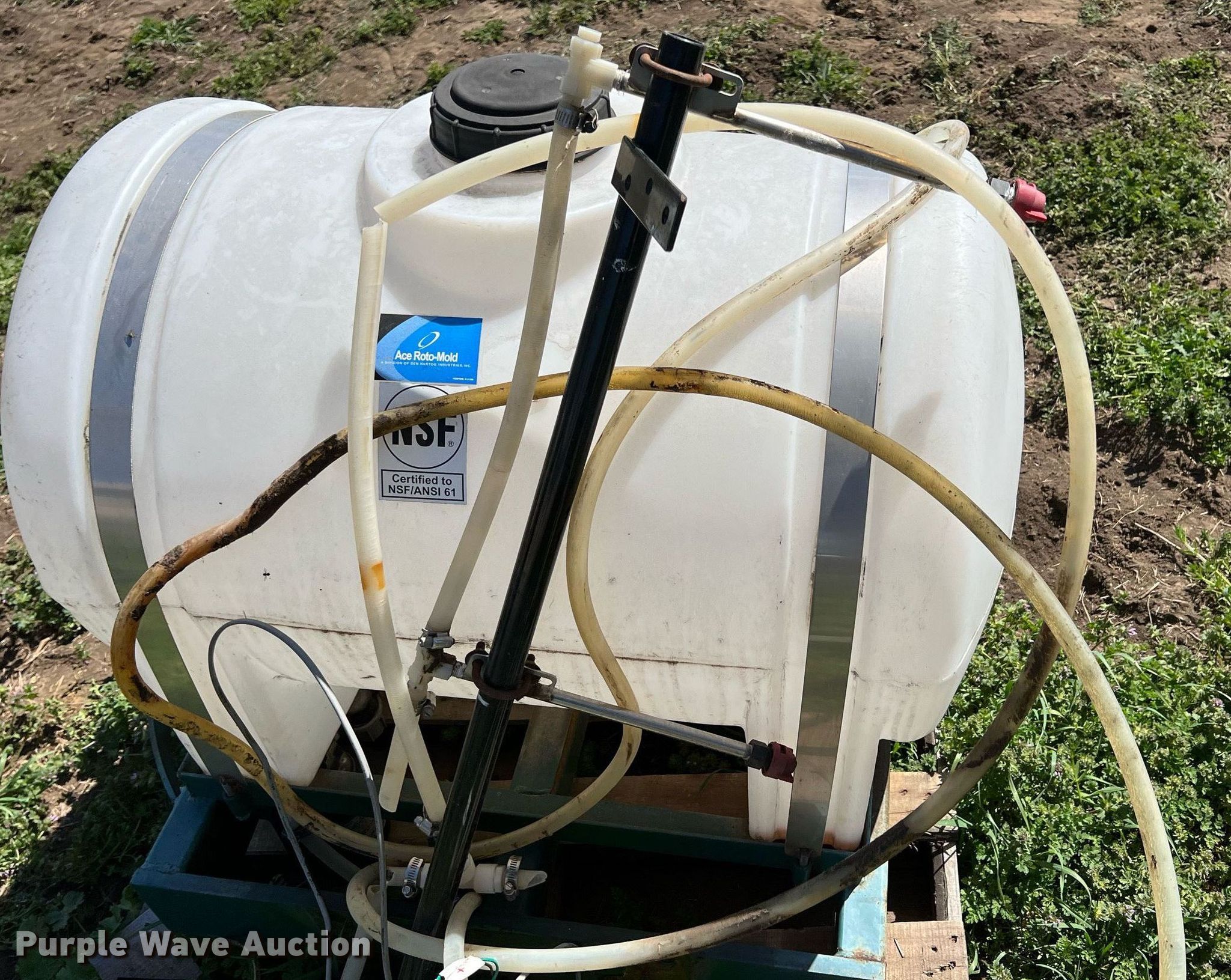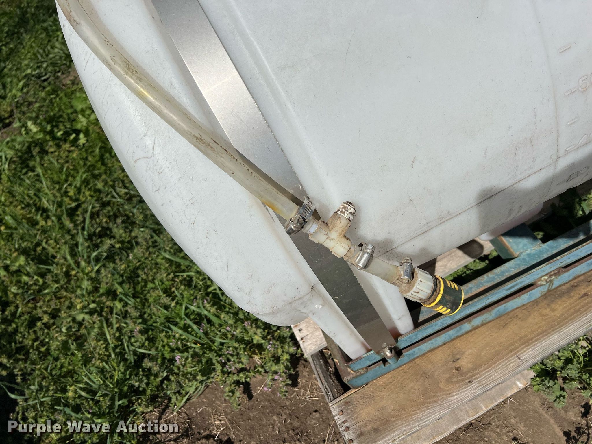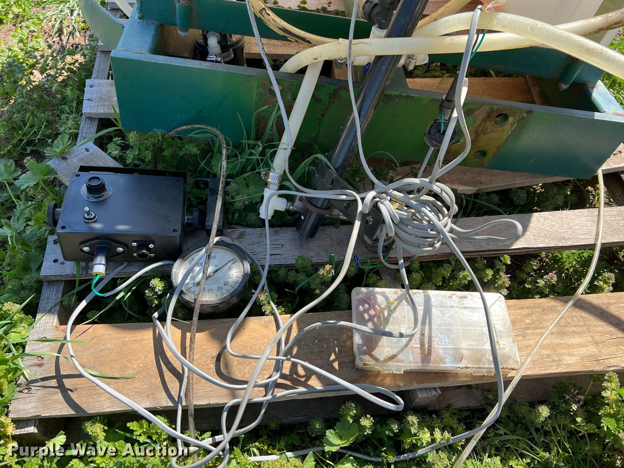 Purple Wave is selling a used Applicator Attach. in Kansas. This item is a Harvest Tec 457 applicator with the following: Serial: 01553, 70 gallon poly tank, Top fill