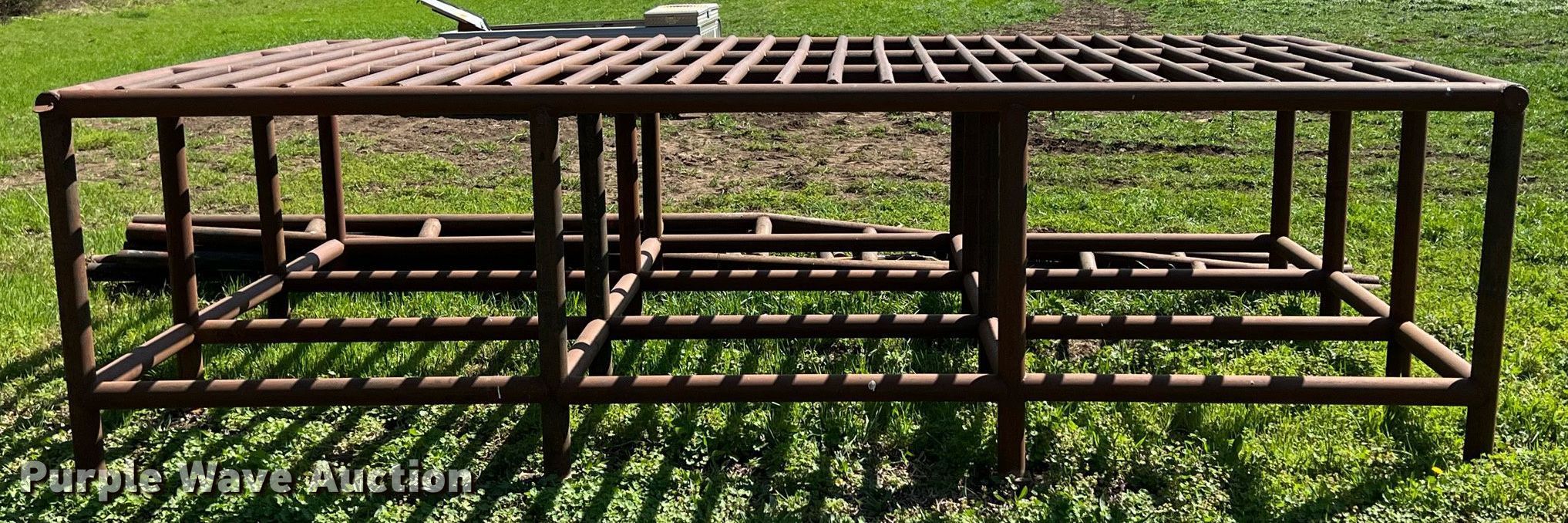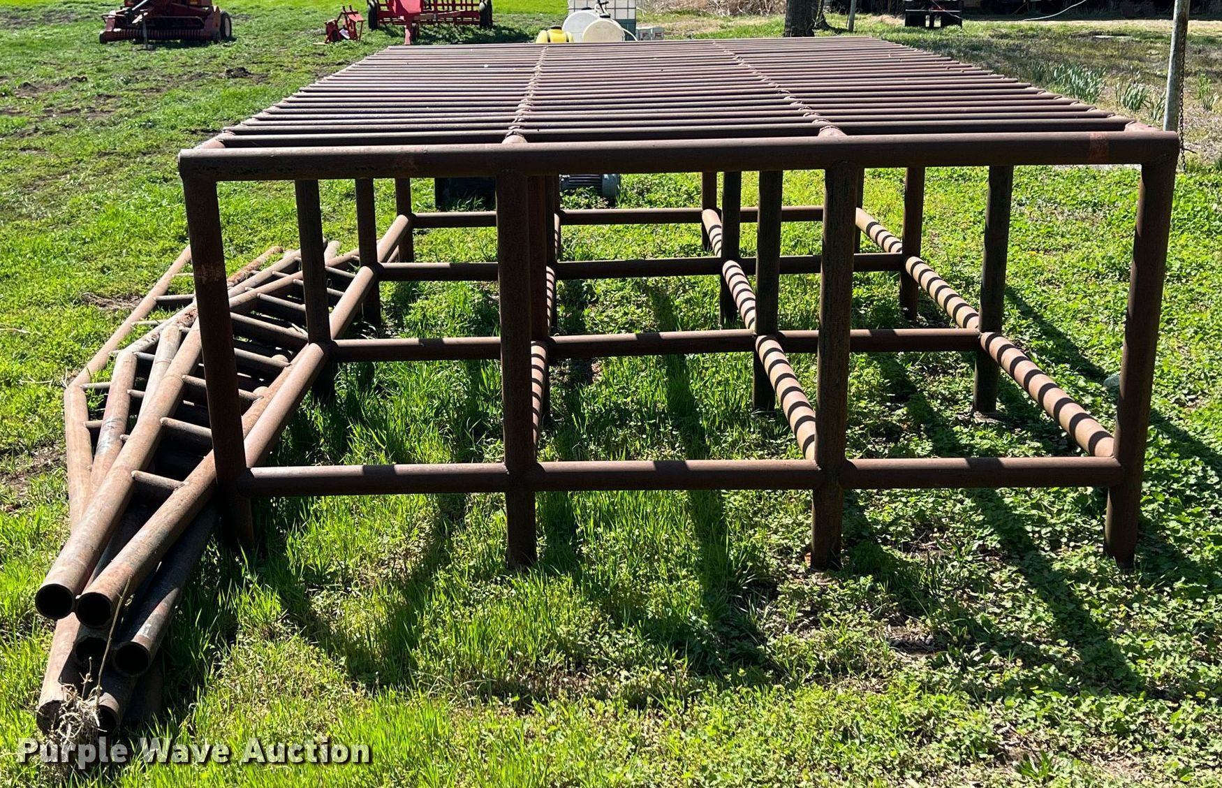 Purple Wave is selling a used Building Materials in Kansas. This item is a Steel pipe frame with the following: 15' L x 9' W x 50" H, Ramps