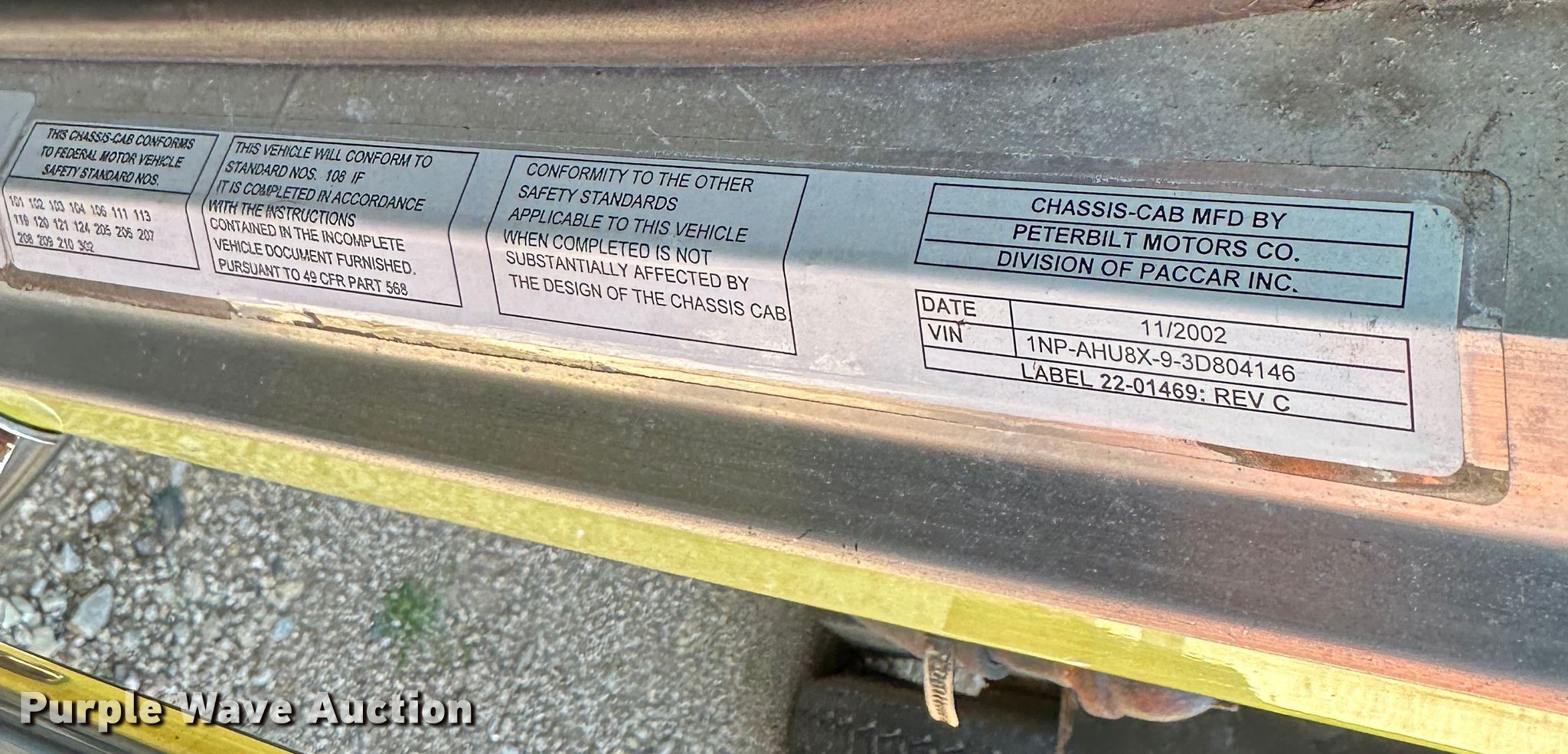 Purple Wave is selling a used Construction Dump Truck in Kansas. This item is a 2003 Peterbilt 357 dump truck with the following: Miles: 55,784 on odometer, Hours: 4,186 on meter, VIN: 1NPAHU8X93D804146