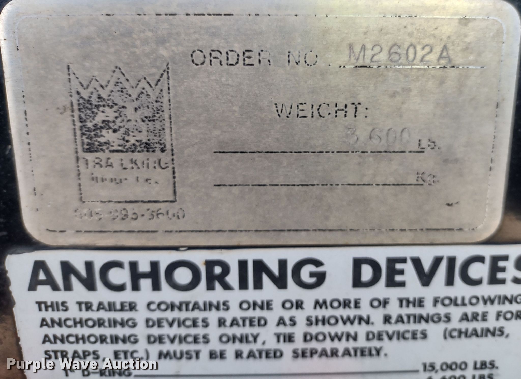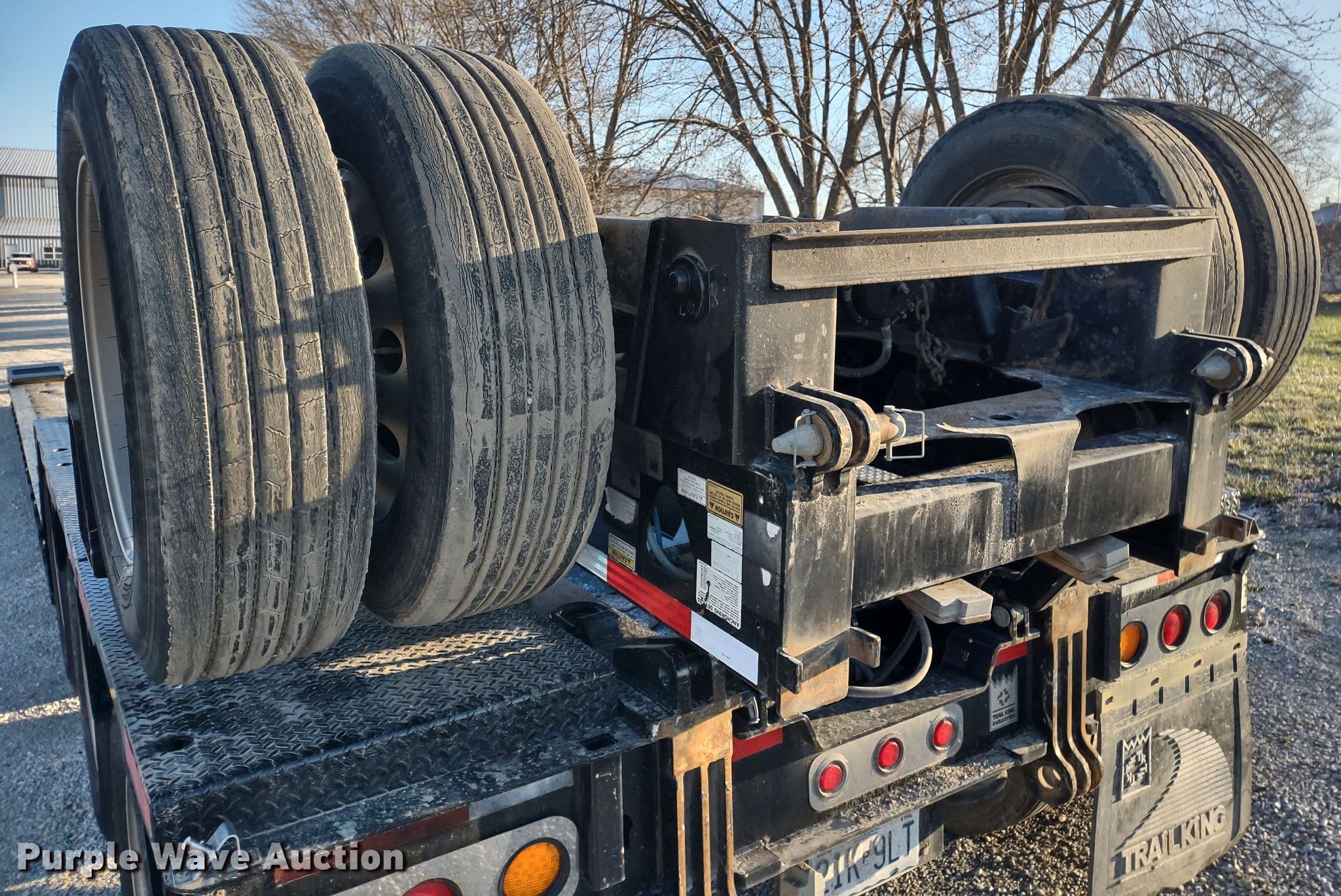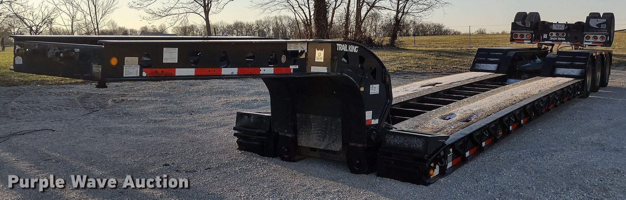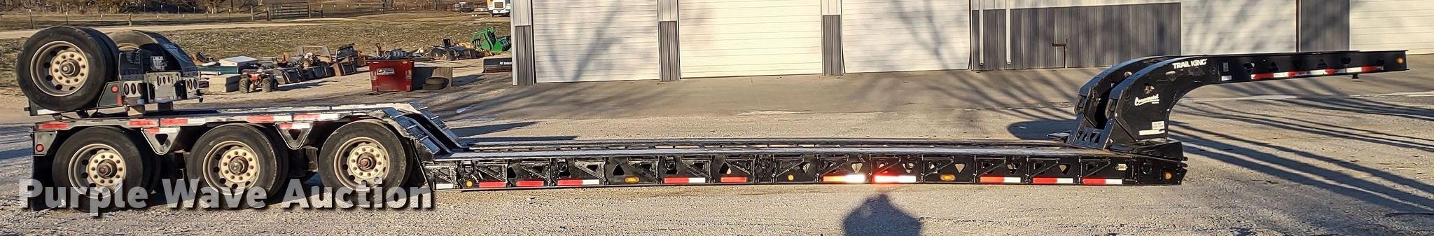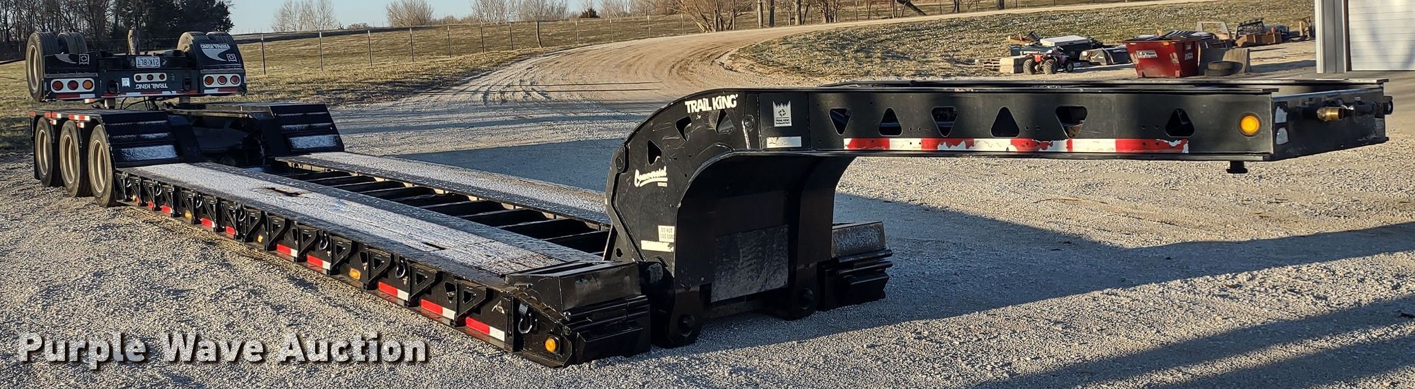 2014 Trail King TK110HDG-533 lowboy equipment trailer. VIN: 1TKJ05331EM072602. Dimensions Overall: 54' L x 8' 6" W, Deck: 26' L x 8' W x 6" W, Tail length: 12', Ramps: Manual Length: 2'. Features Deck type: Steel, Wood, Outriggers: Swing-out Board size: 12", Neck type: Detachable. Chassis Hitch: Gooseneck, Suspension: Air, Brakes: Air, Axles: Triple, Detachable tag, GVWR: 135,400 lbs, GAWR: 21,511 lbs. Tires Aluminum wheels, Size: 275/70R22.5. 2013 Trail King TKFA1 detachable tag axle VIN: 1TKR00512DM108992. Features Neck type: Folding. Tires Aluminum wheels, Size: 275/70R22.5. Missouri titles. 19209 E 231st St. Harrisonville, MO 64701