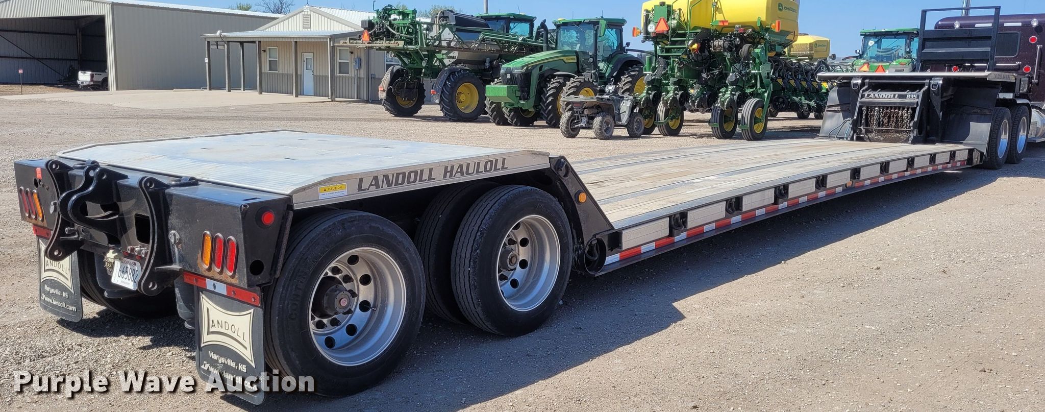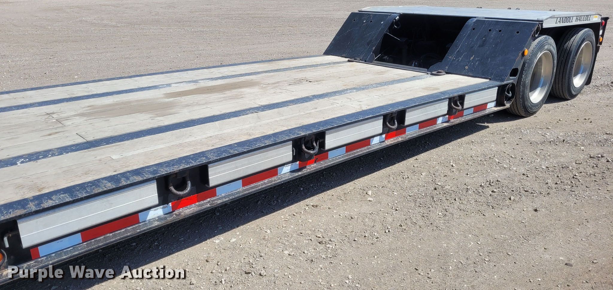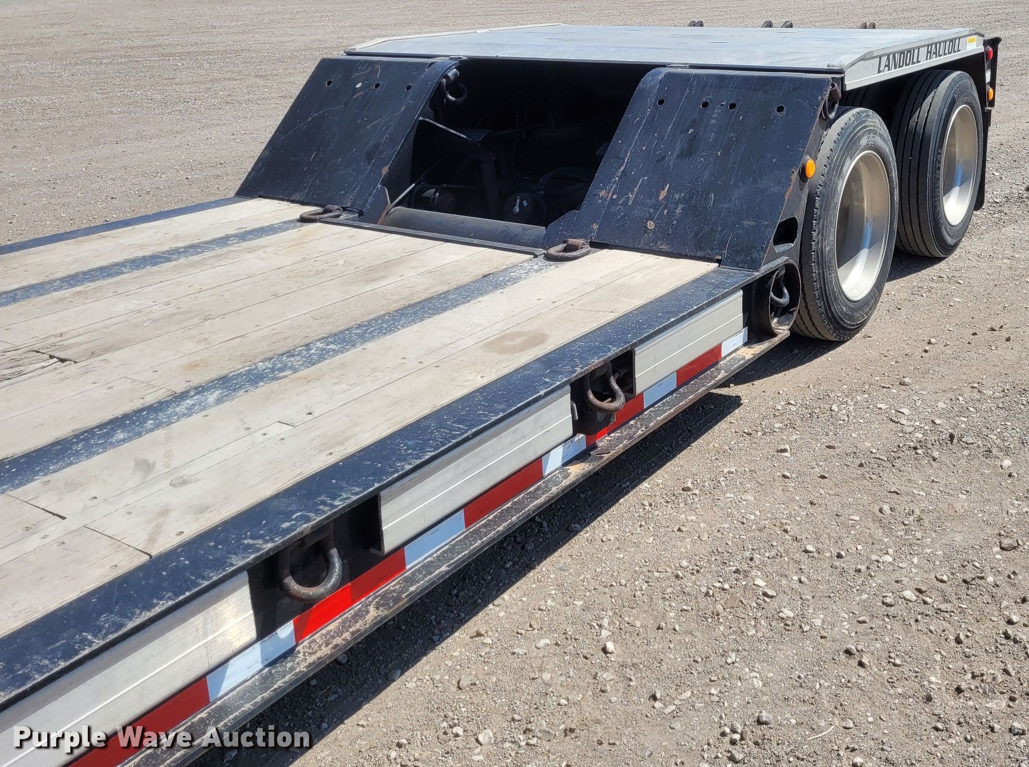 2011 Landoll Hauloll 835 lowboy equipment trailer. VIN: 1LH835VH4B1C18219. Dimensions Overall: 48' L x 102" W, Top deck length: 10', Deck height: 29' 5", Tail length: 8'. Features Deck type: Aluminum, Wood, Outriggers: Pull-out, Self-contained hydraulics. Chassis Suspension: Air, Brakes: Air, Axles: Tandem, GVWR: 88,000 lbs. Tires Aluminum wheels, Size: 255/70R22.5. Notes Chains and binders not included. Kansas title. Title distribution may be delayed up to 14 days from verification of funds. McClure Bros. Farm. Douglass, KS 67039