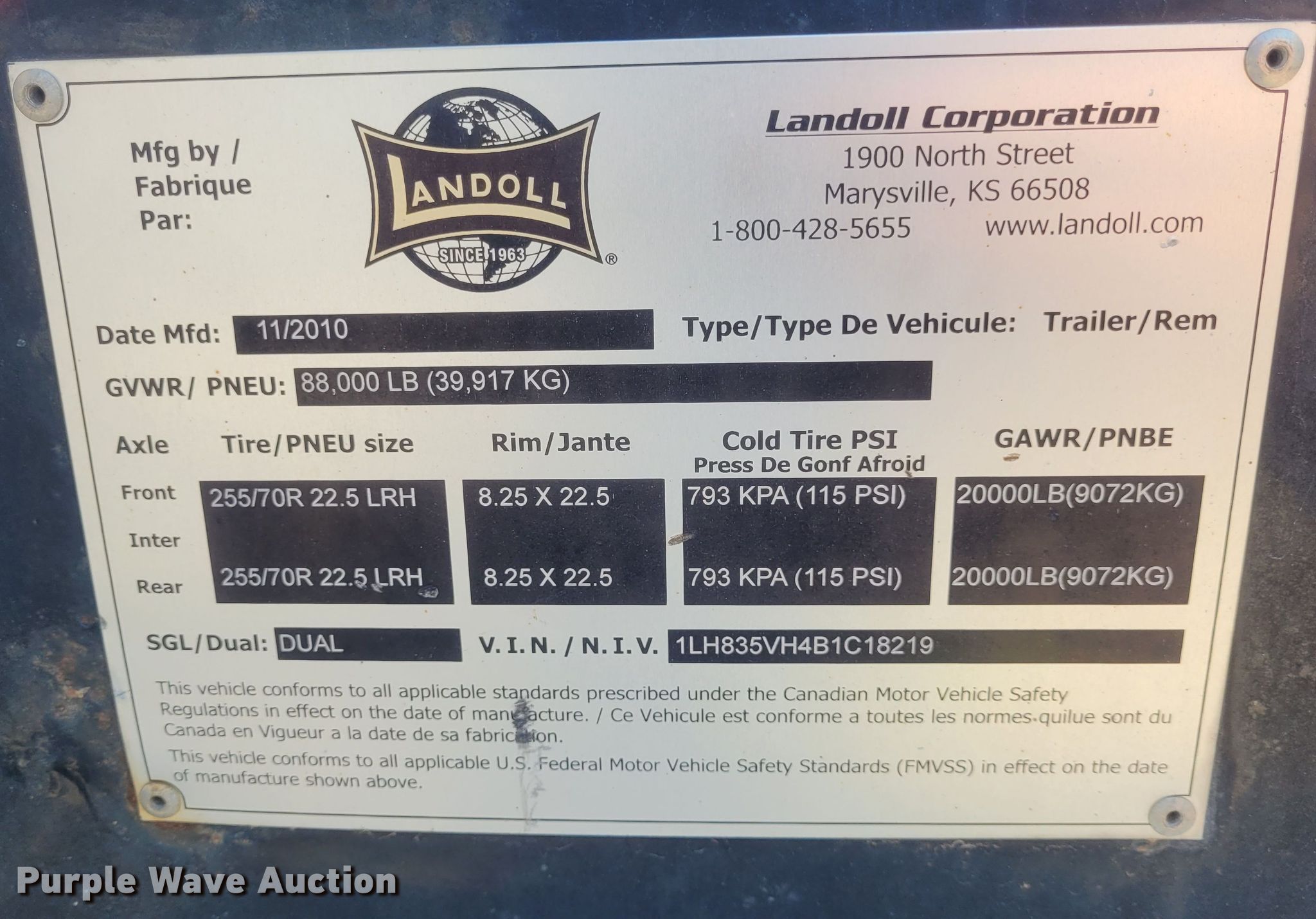 Purple Wave is selling a used Equip. Trailer in Kansas. This item is a 2011 Landoll Hauloll 835 lowboy equipment trailer with the following: VIN: 1LH835VH4B1C18219