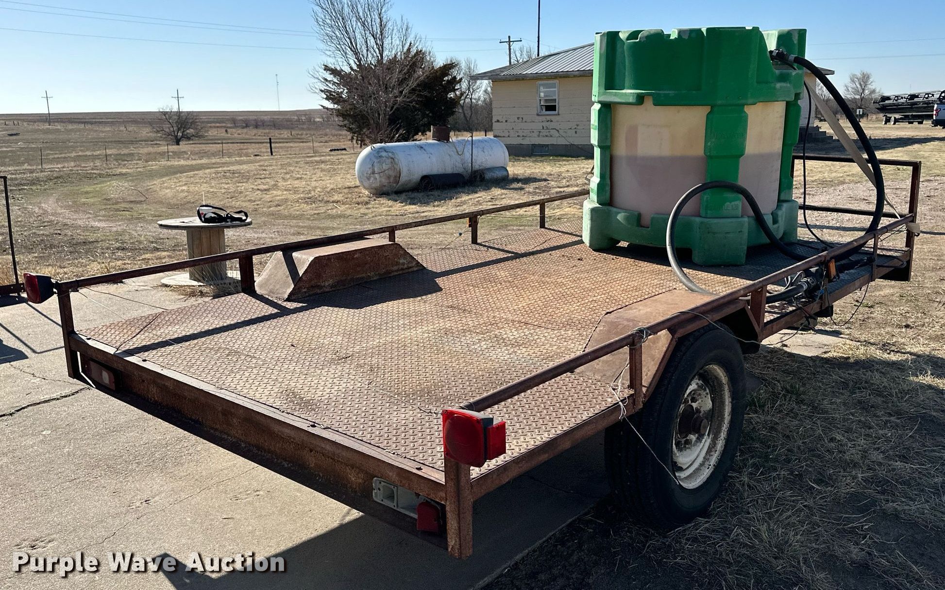 Purple Wave is selling a used Car or Utility Trailer in Kansas. This item is a Utility trailer with the following: Overall: 14' 6" L x 80" W, Deck: 12' L x 80" W