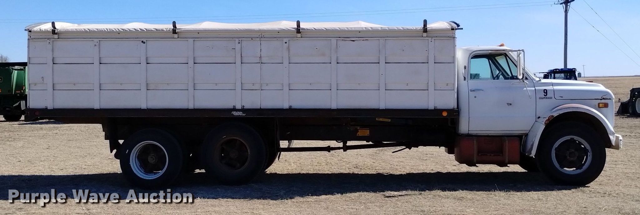 Purple Wave is selling a used Grain Truck in Kansas. This item is a 1972 Chevrolet C60 grain truck with the following: Miles: 49,000 on odometer, VIN: CCE632V140585