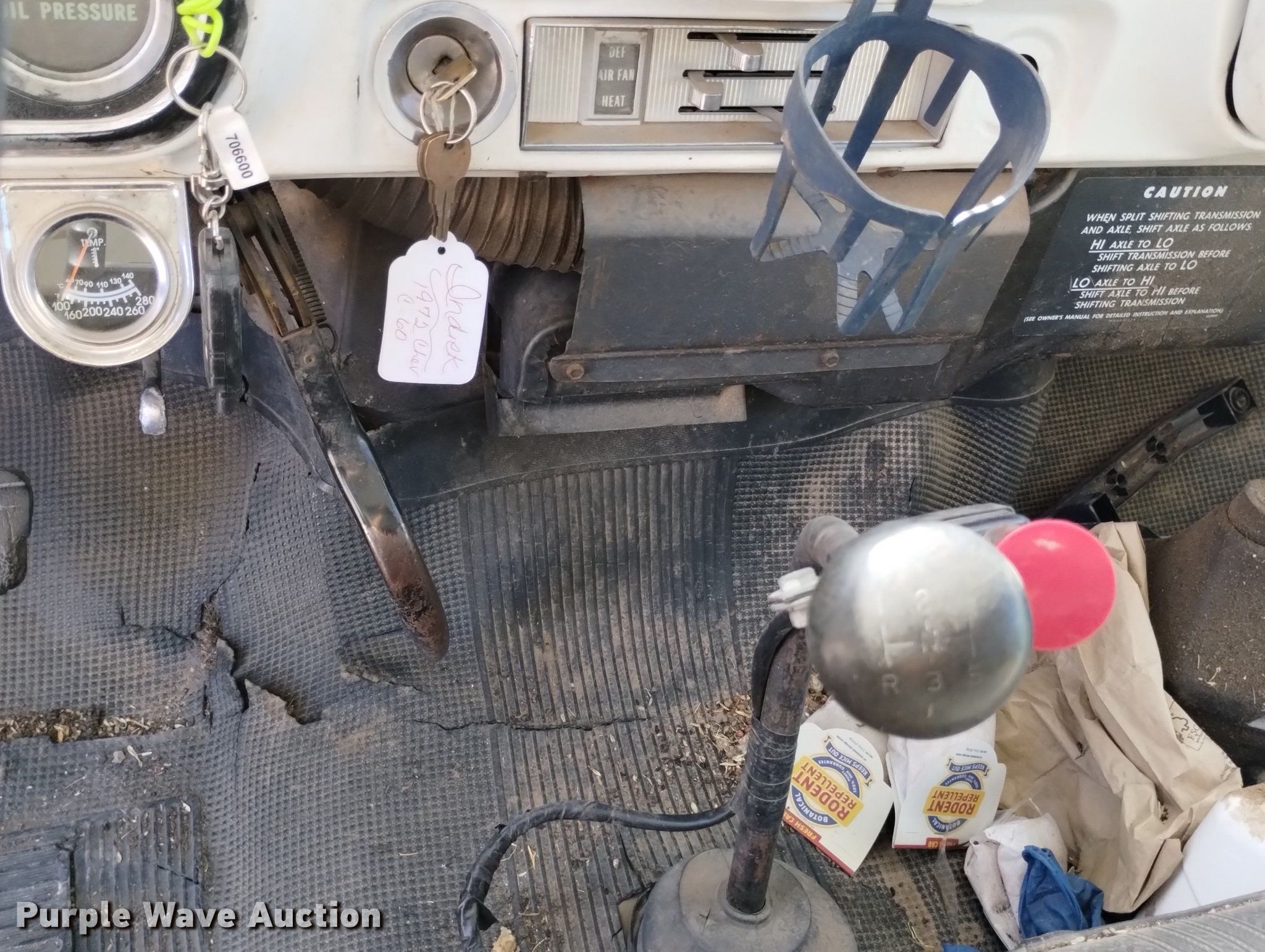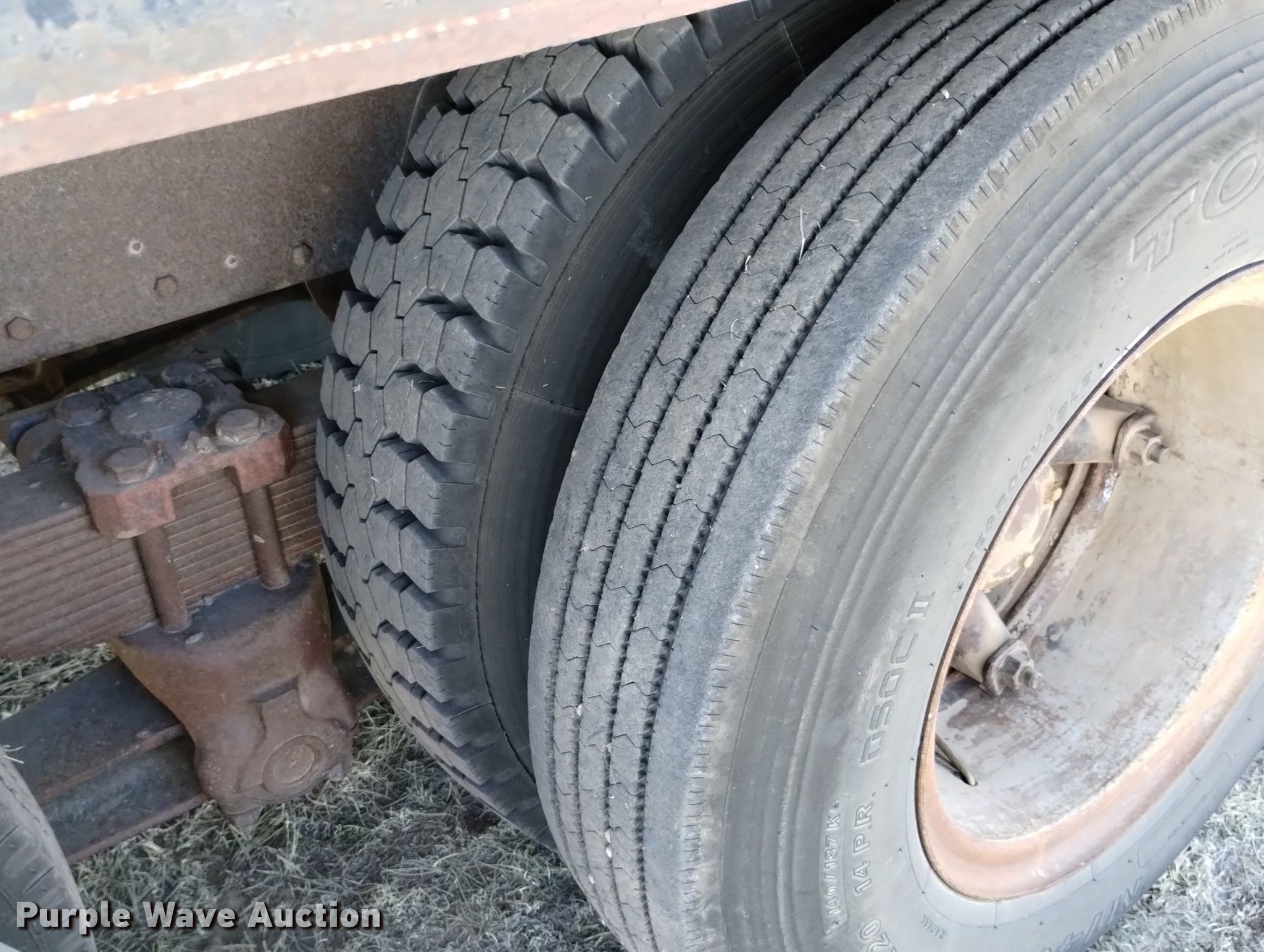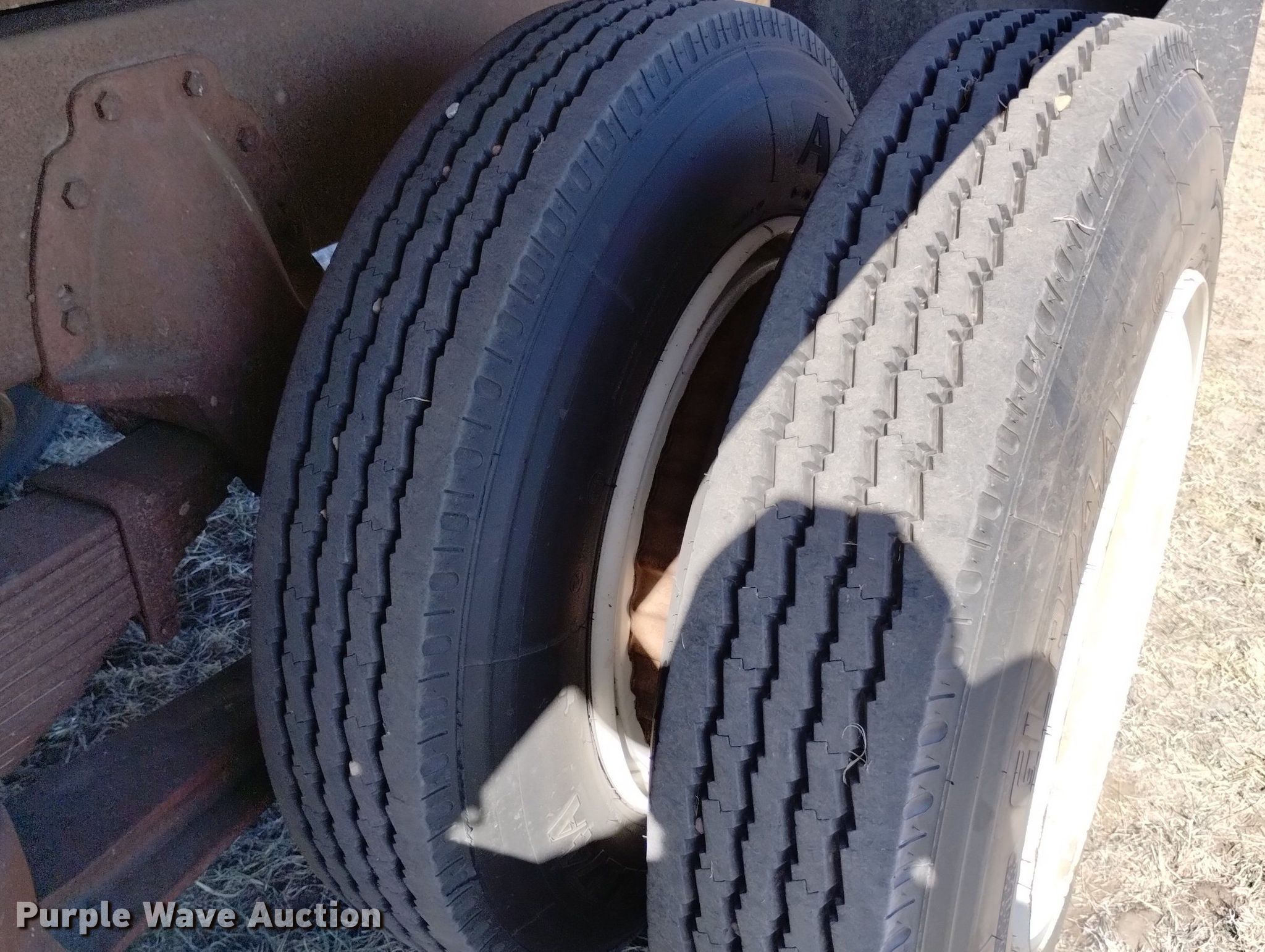 1972 Chevrolet C60 grain truck. Miles: 49,000 on odometer, VIN: CCE632V140585. Engine Cylinders: 8, Fuel type: Gas. Transmission Manual, Speed: 5, plus 2. Chassis Axles: Tandem, Suspension: Spring over walking beam, Brakes: Hydraulic, PTO, GVWR: 31,500 lbs. Interior Heat. Features Dump bed 22' L x 96" W, Side height: 49", Bed type: Steel, Electric roll tarp, Ram: Single , End gate: Manual. Tires Front: 9.00R20, Rear: 9R22.5. Kansas antique title. Title distribution may be delayed up to 14 days from verification of funds. Rick Indiek Estate - Open inspection May 22. 27806 Northwest O Road. Jetmore, KS 67854